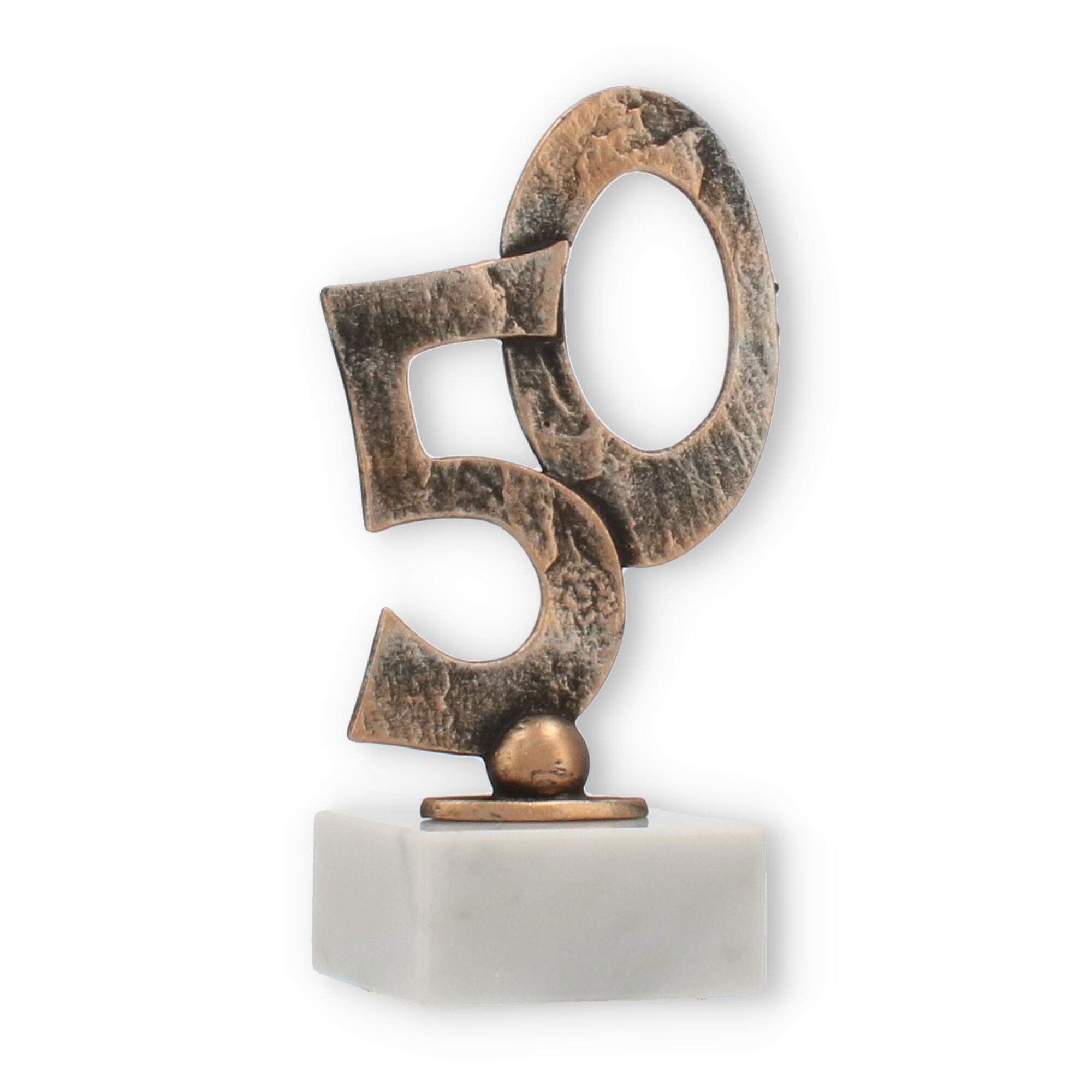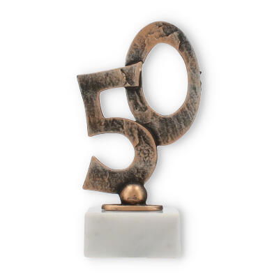 Der Pokal Konturfigur Goldene Hochzeit vereint handwerkliche Kunst und zeitlose Eleganz. Diese 16,4 cm hohe Figur besteht aus altgoldfarbenem Zamak, das durch seine feine Bearbeitung und Patinierung einen besonderen antiken Charme ausstrahlt. Die Zahl 50, die die beiden Hauptkomponenten des Oberteils darstellt, symbolisiert diesen besonderen Meilenstein auf eine stilvolle und einzigartige Weise.