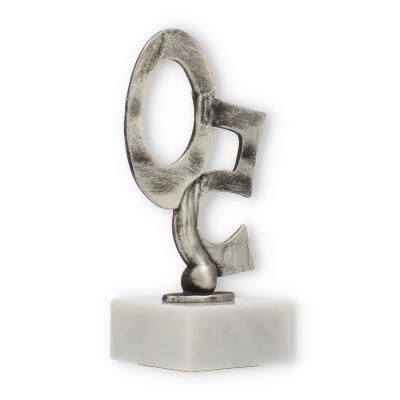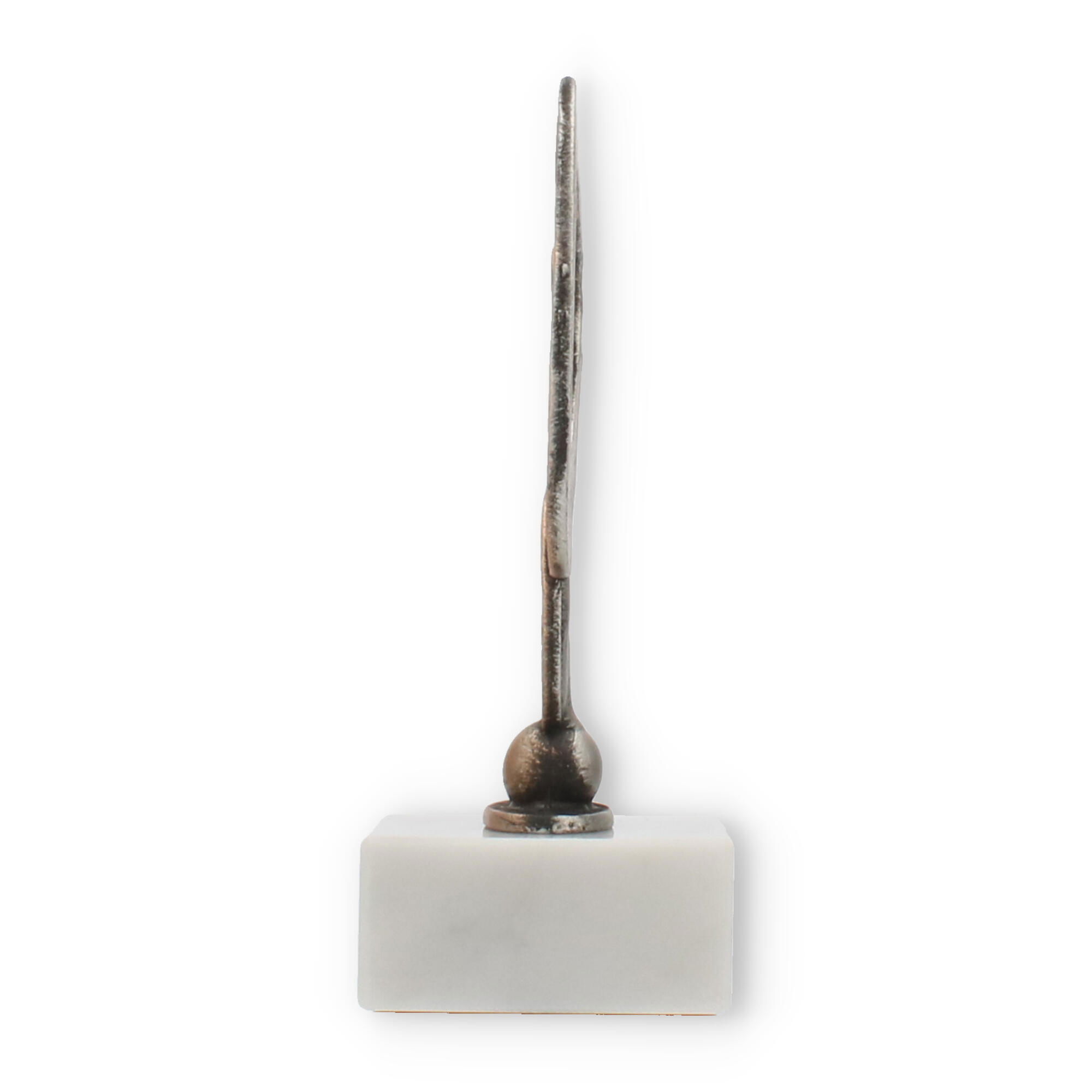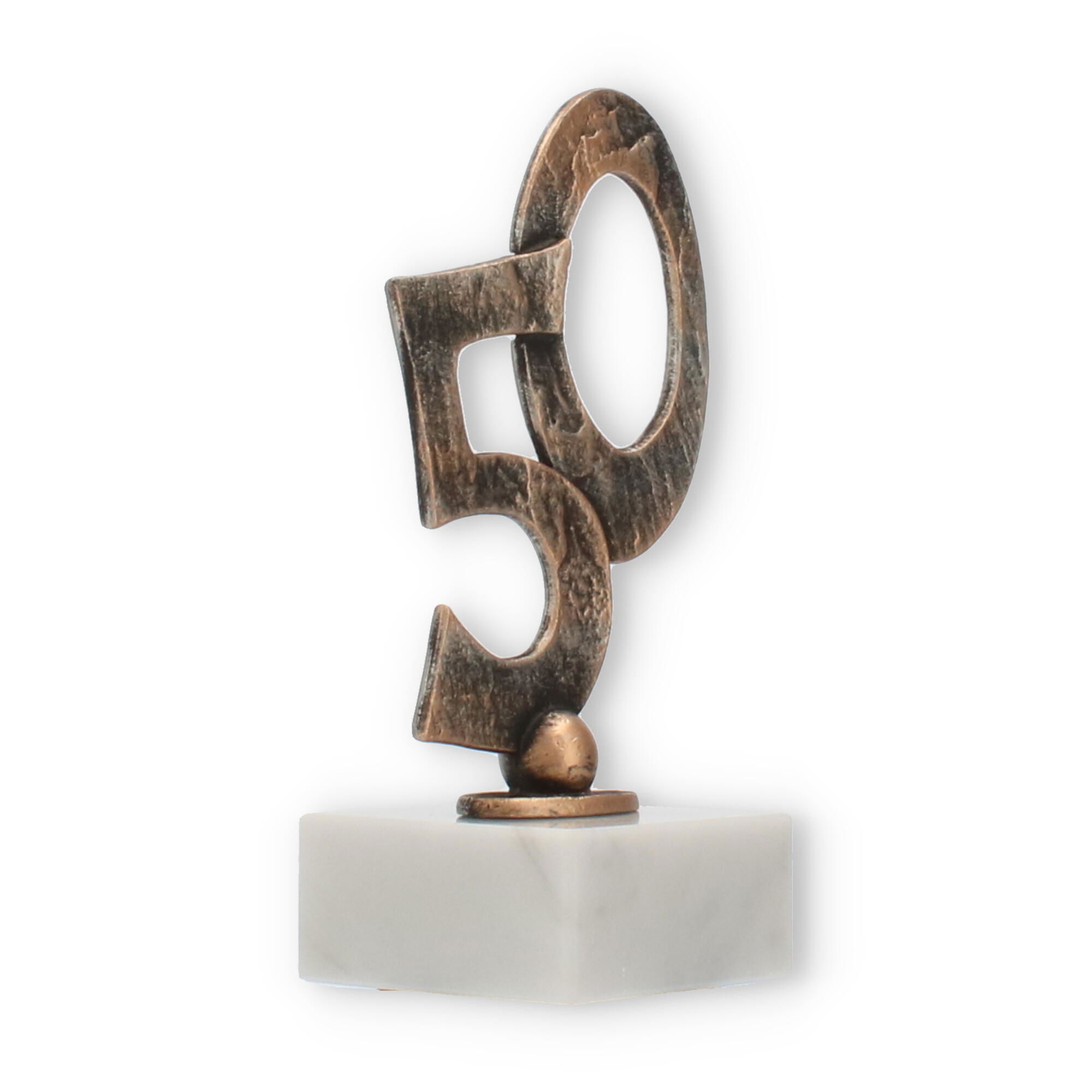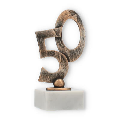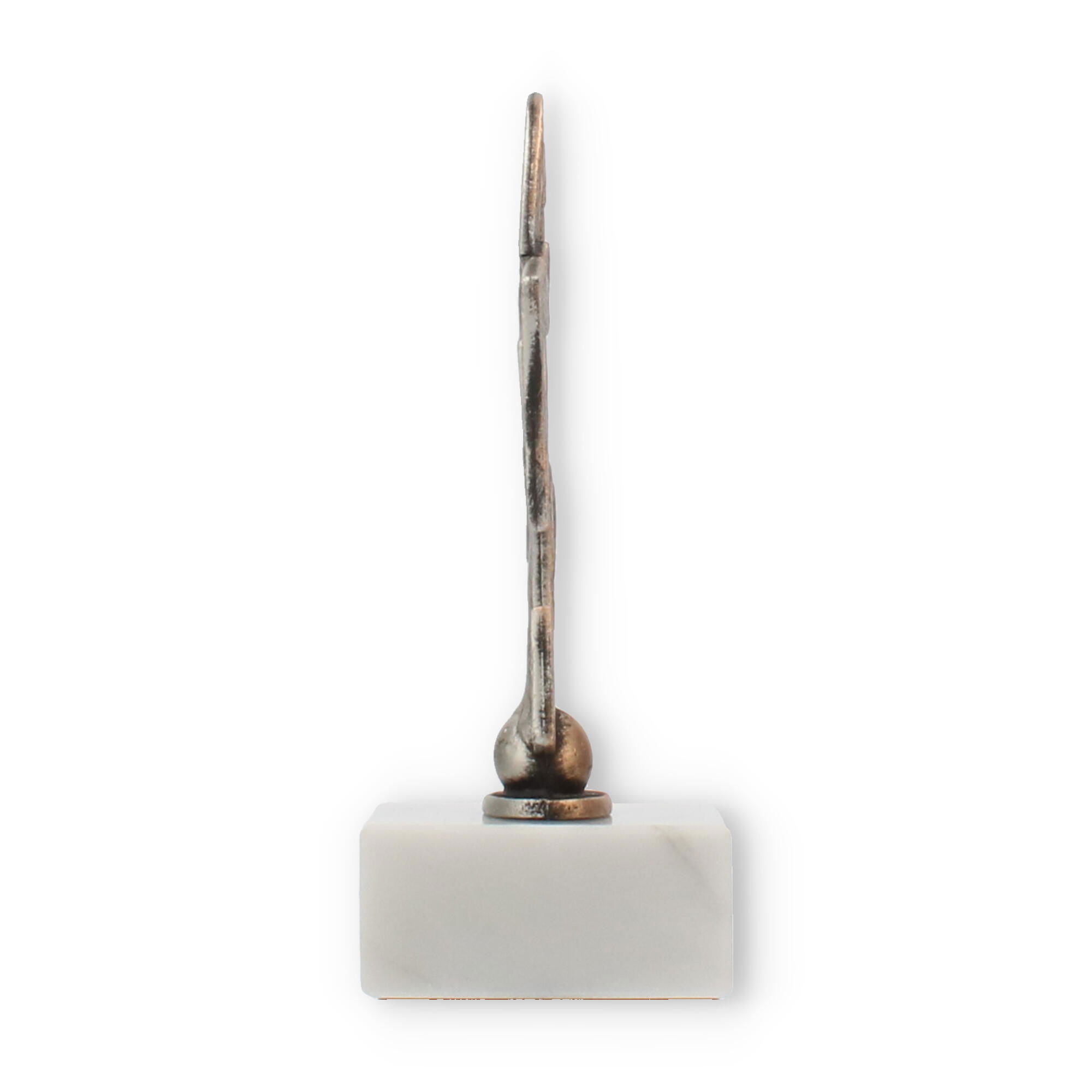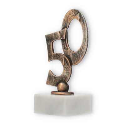 Der Sockel aus poliertem weißem Marmor verleiht dem Pokal eine solide Basis und schafft einen eleganten Kontrast zur altgoldfarbenen Skulptur. Mit den Maßen 65 x 65 x 30 mm bietet die Basis genau die richtige Größe, um die Skulptur sicher zu tragen, ohne die Aufmerksamkeit von der kunstvollen Zahl abzulenken.