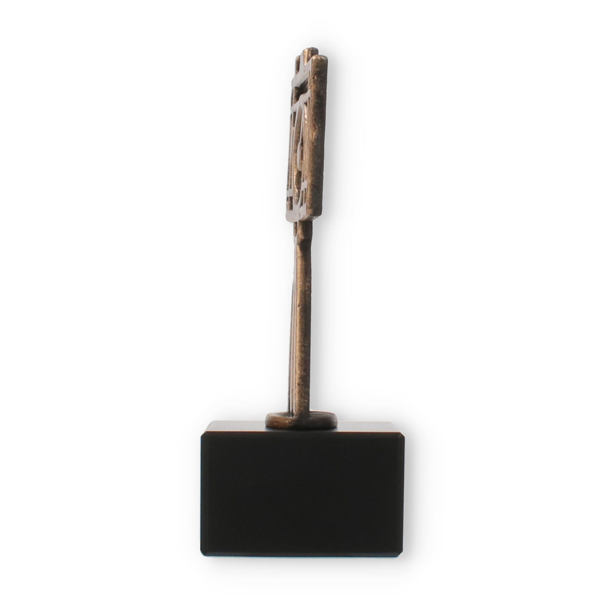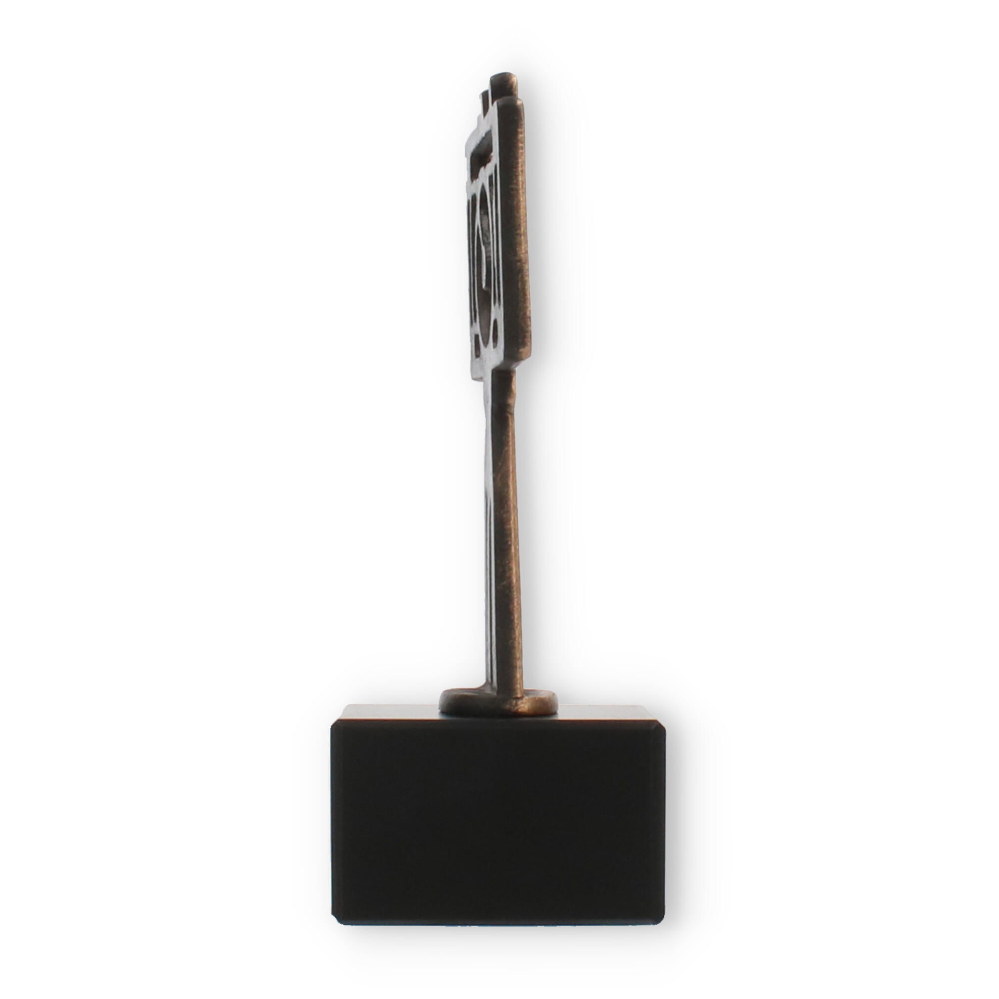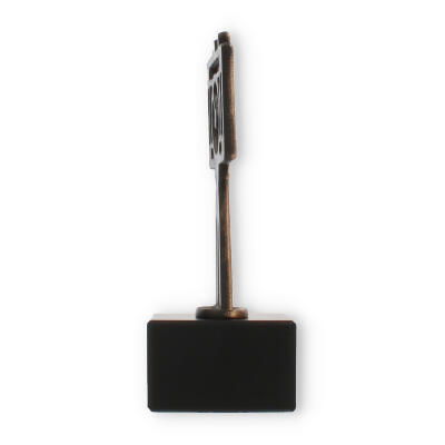 Siyah mermer kaide, ürüne dayanıklılık ve prestij katar. Mermer taban, mükemmel bir denge sağlayarak bu göz kamaştırıcı tasarımın ağırlığını taşır. Tabanın yüksek kaliteli malzemesi, ödülü dikkat çekici kılar. Bu eşsiz kombinasyon, kazananın başarısının simgesi olarak parlıyor.