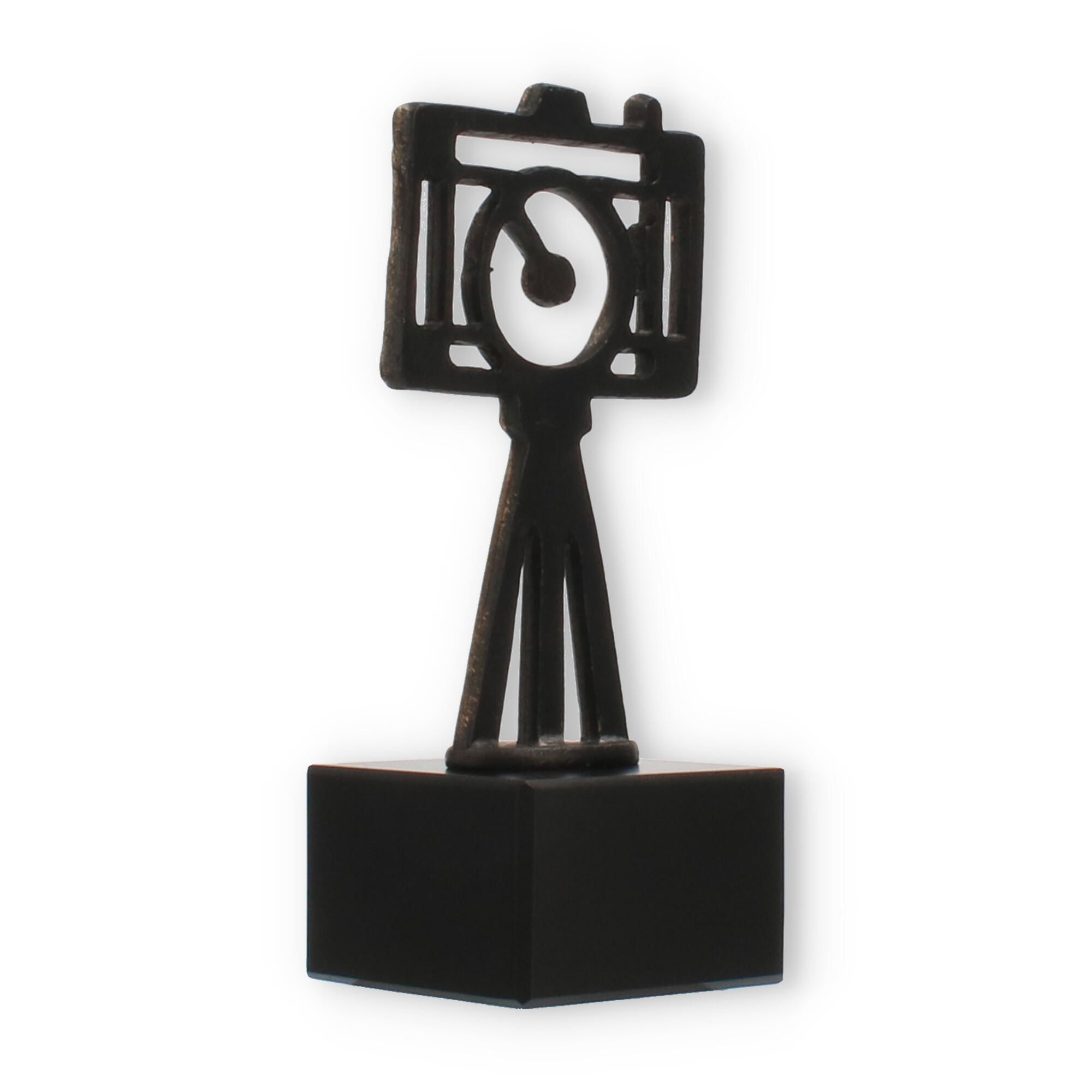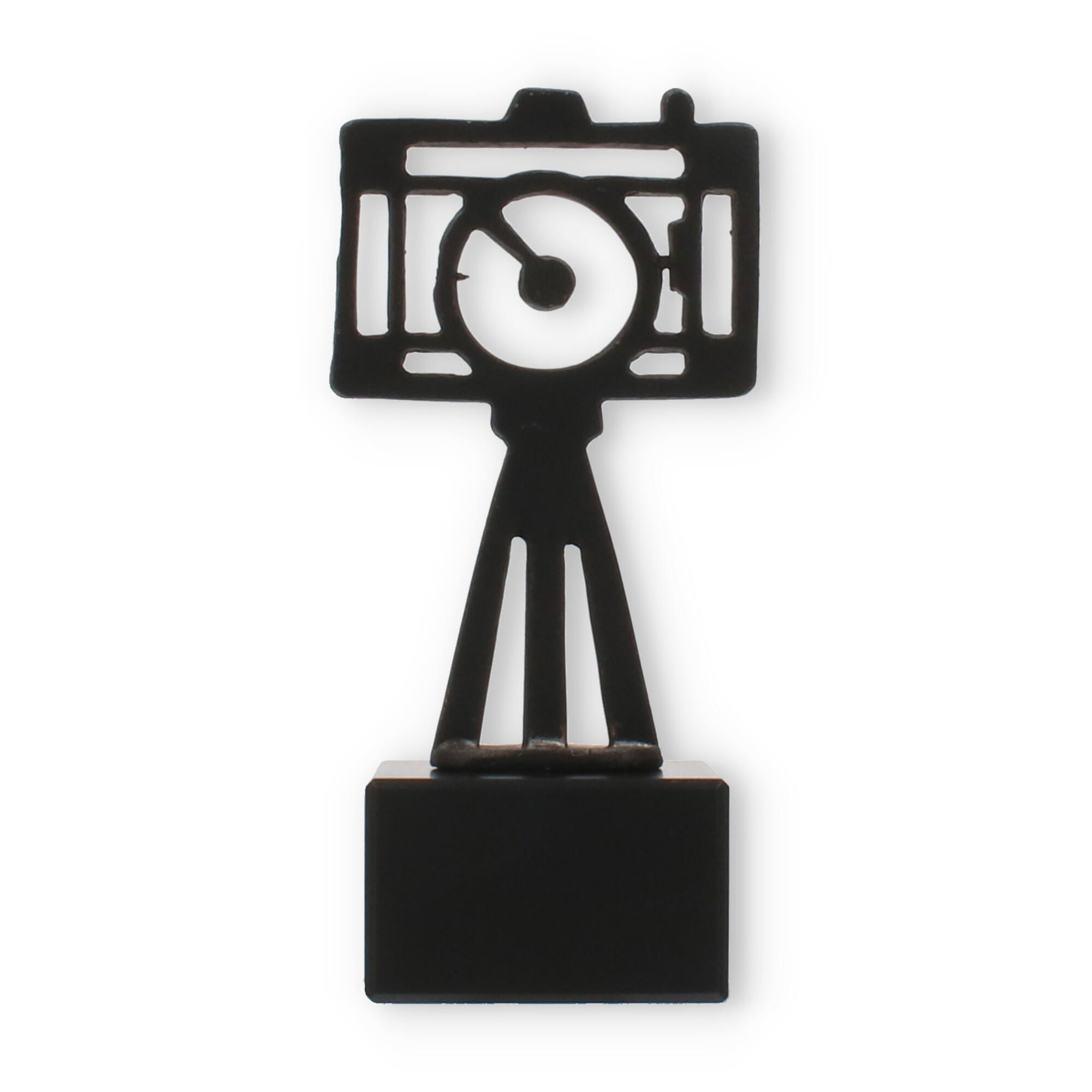 Kamera Trophiesi, görsel açıdan çarpıcı ve anlam dolu bir ödüldür. 16,5 cm boyutlarındaki bu ödül, eski altın görünümlü zamak figüre sahiptir. Kamera ve tripod temalı tasarımı, sanatsal bir dokunuşla minimalizmi kutlar. Her ayrıntıda özenle işlenmiş olan figür, yenilikçi bir tarza sahiptir.