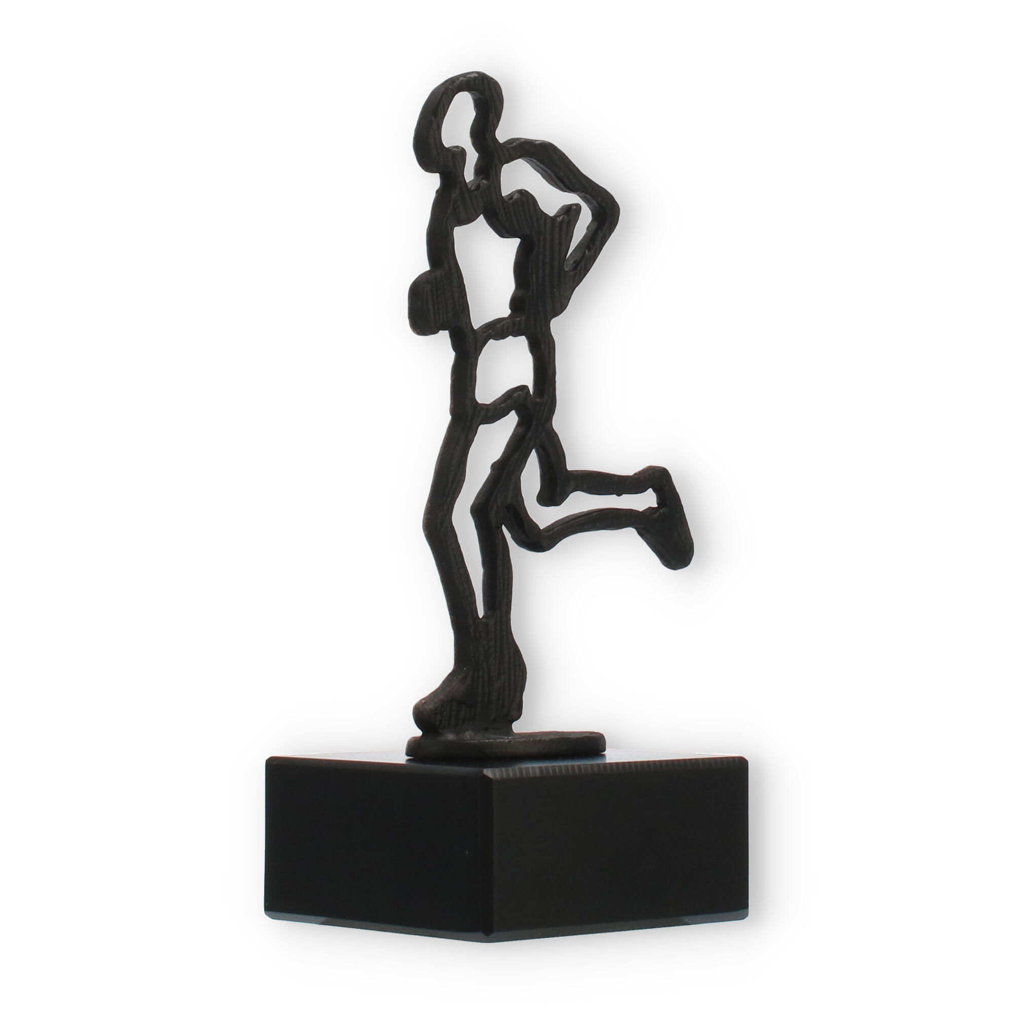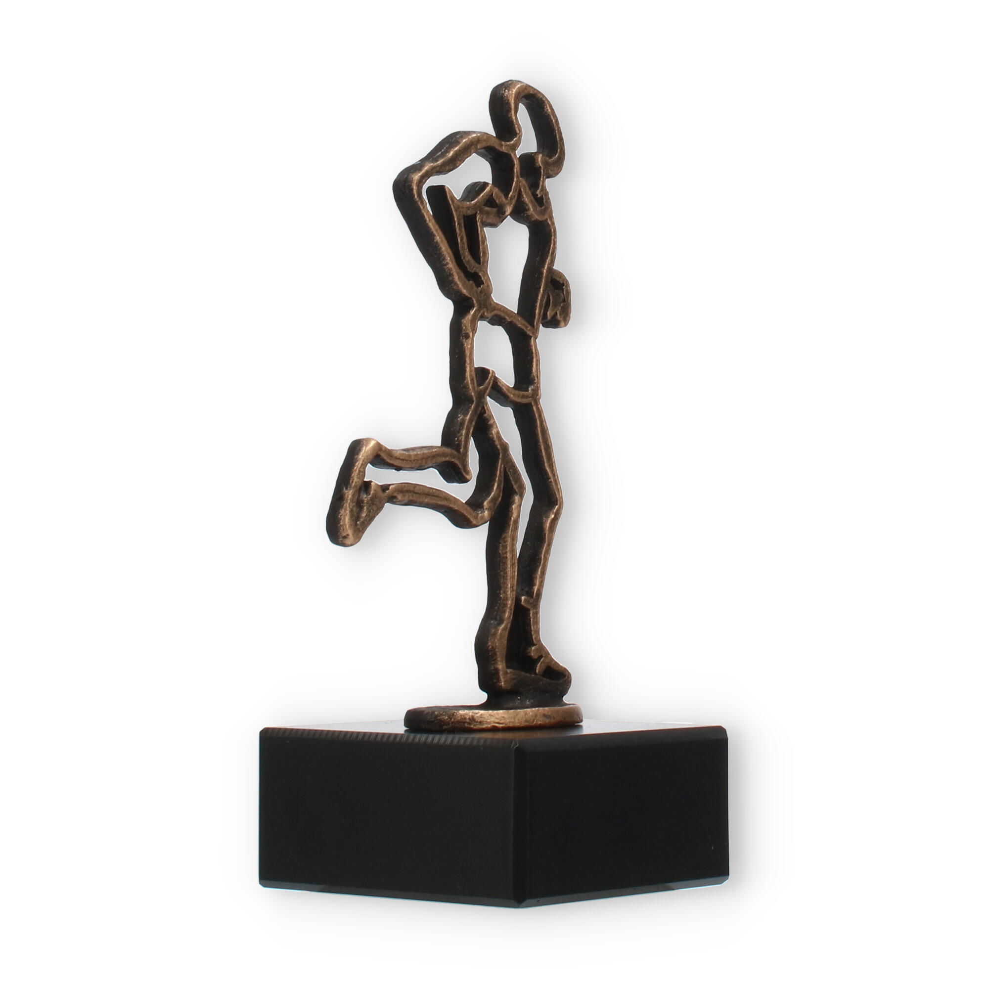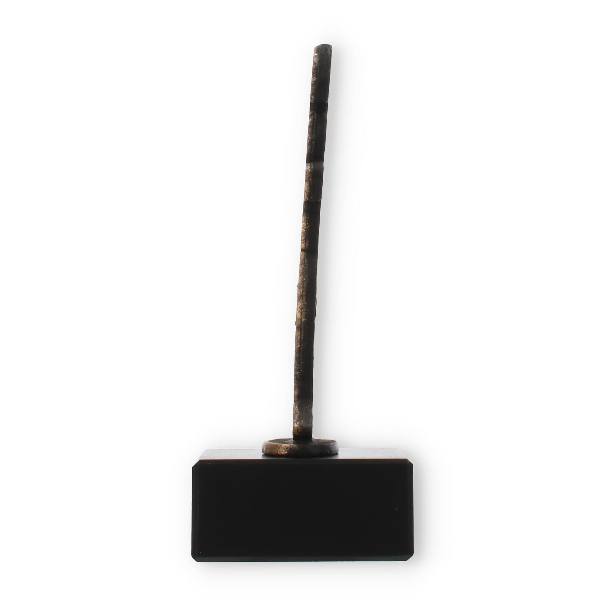 Ce trophée arbore une figurine de métal couleur or ancien, parfaitement montée sur un socle en marbre noir. Son style minimaliste et expressif en fait une pièce unique qui est à la fois élégante et distinctive. La plaque de gravure, réalisée en plastique doré résistant, permet une personnalisation complète, rendant chaque distinction encore plus spéciale.