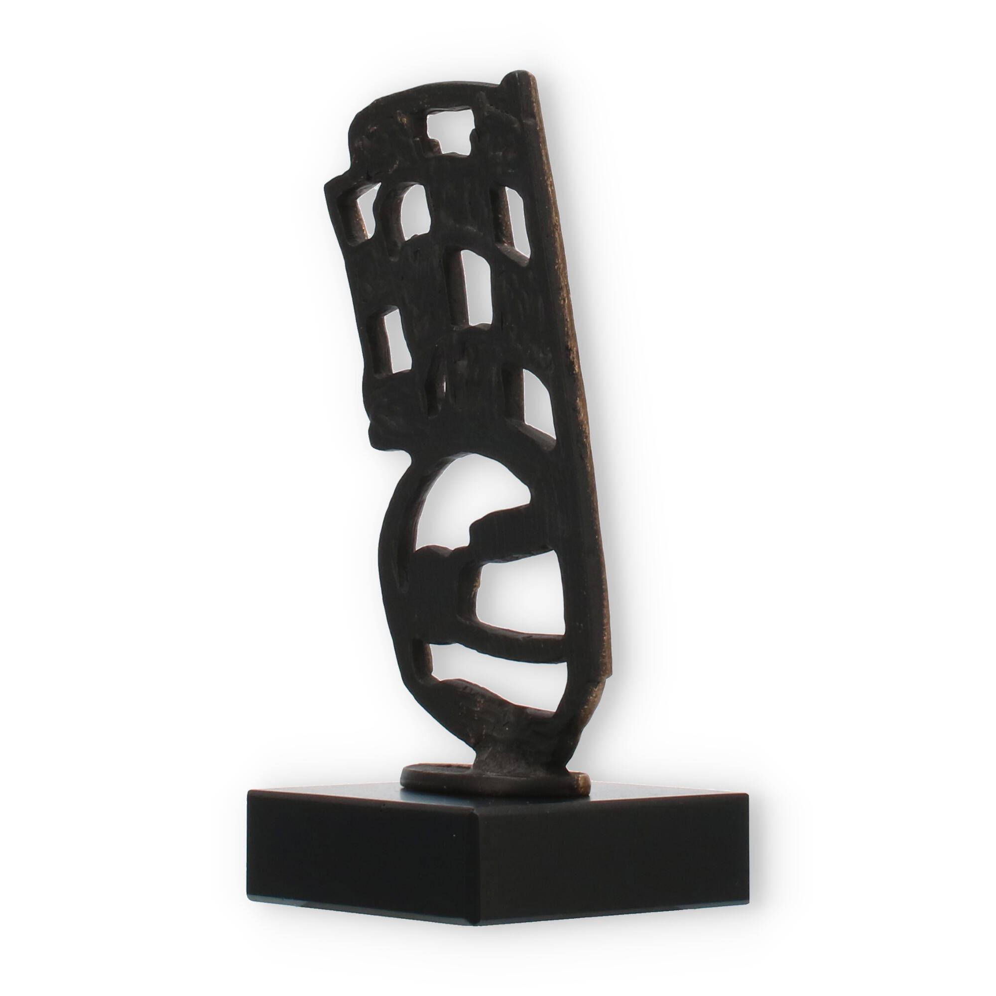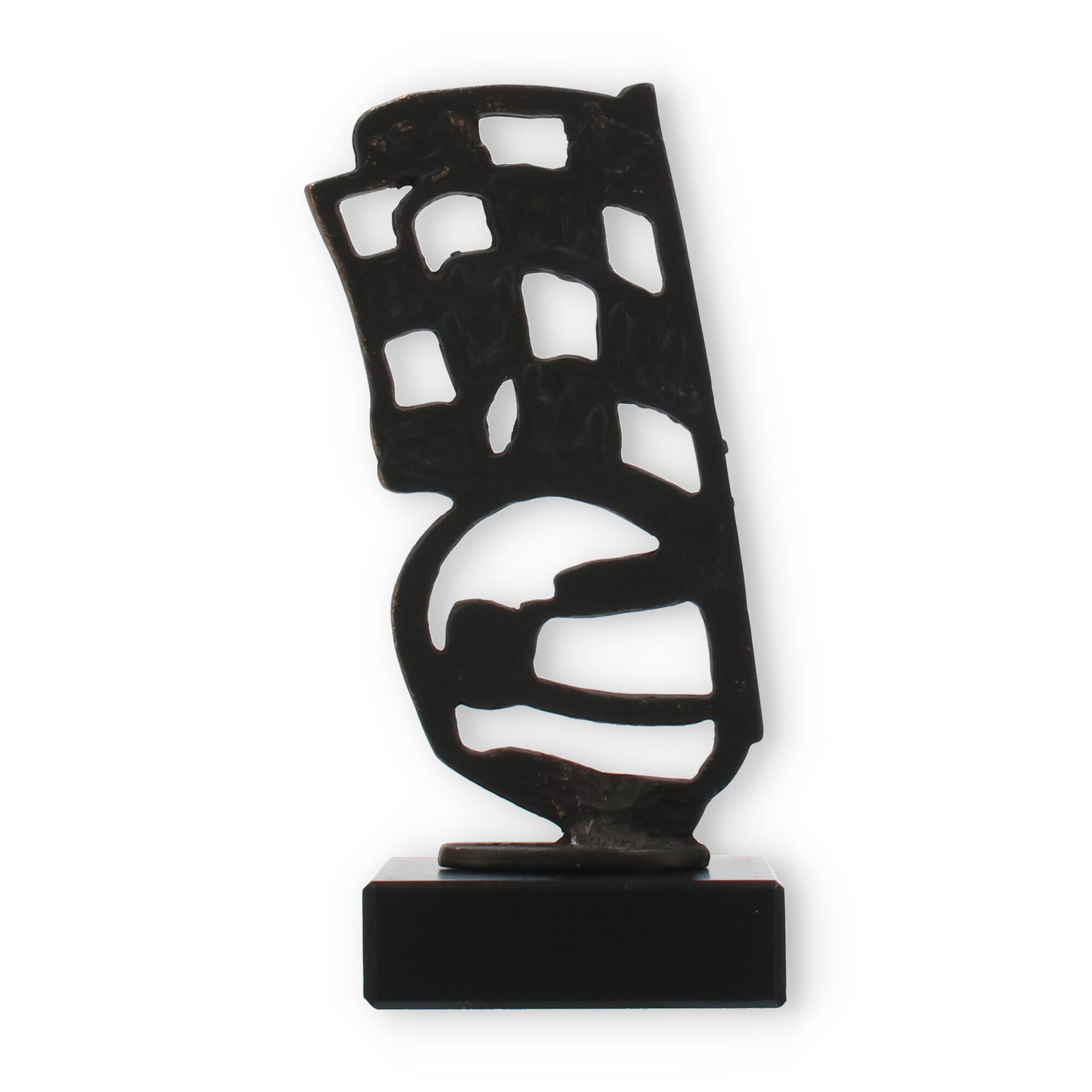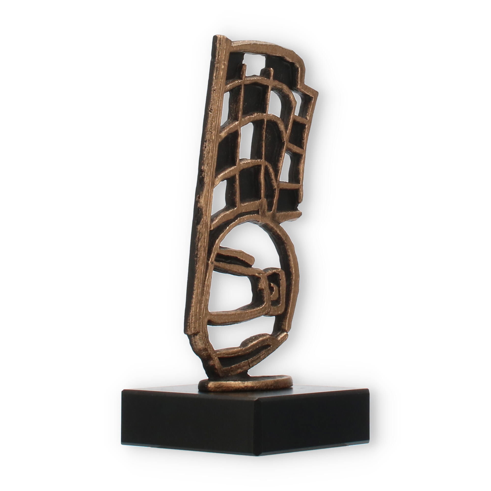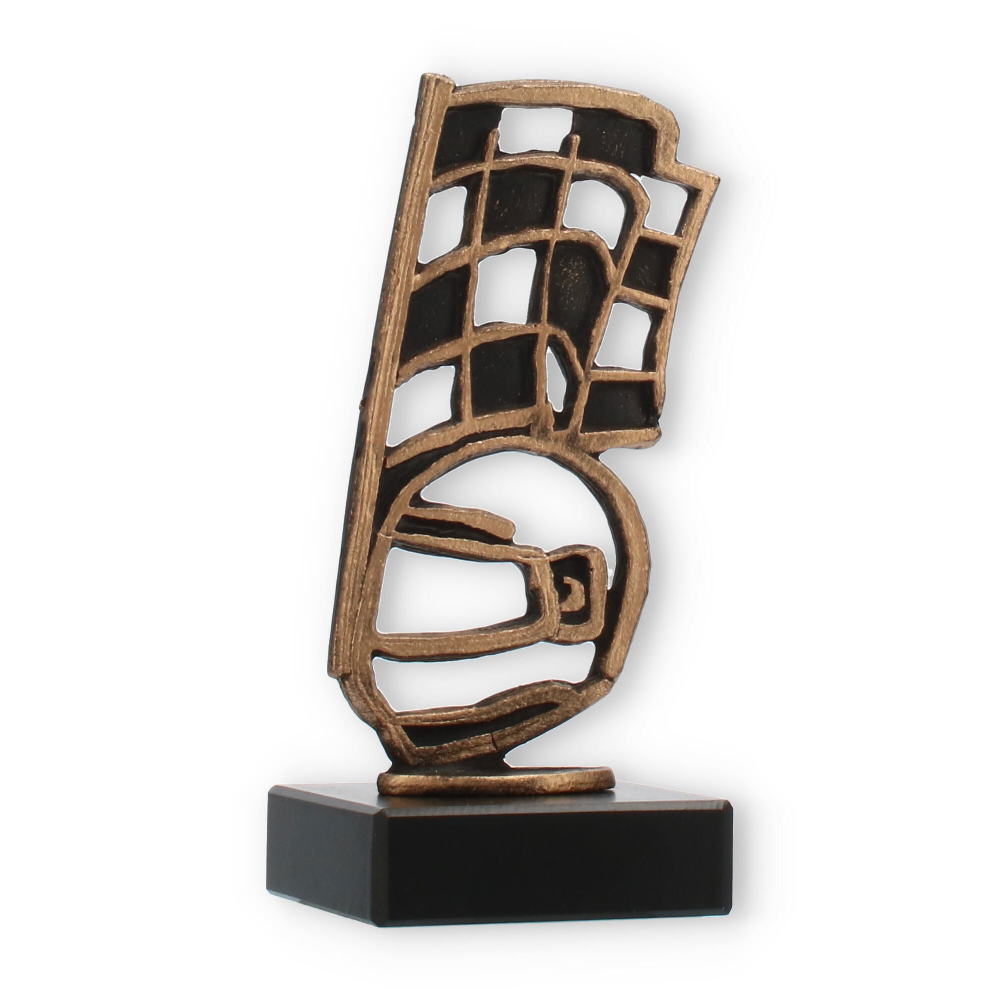 Der Pokal Motorsport vereint markantes Design und hochwertige Materialien, um jede Motorsportveranstaltung mit Stil zu krönen. Die altgoldfarbene Figur, die in einer abstrakt-geometrischen Form gestaltet ist, verleiht dem Pokal seinen einzigartigen Charakter. Die feine Patina der Figur hebt ihren exklusiven Charme hervor, und auf dem massiven schwarzen Marmorsockel stehend, wirkt sie besonders eindrucksvoll.