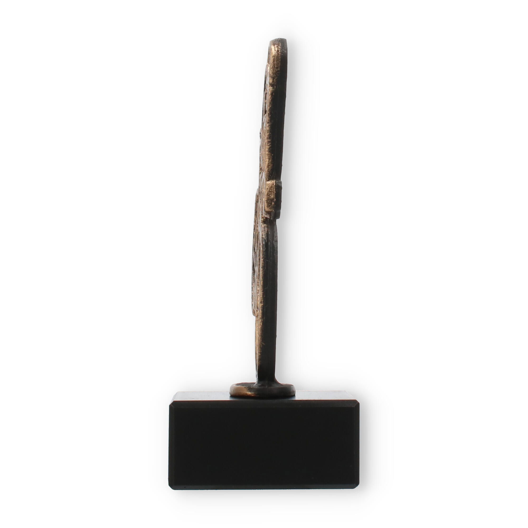 Dette cyklist trofæ er den perfekte hyldest til dine vindere, kombinerende kunstnerisk design og solid konstruktion. Den stiliserede cyklistfigur i gammelt guldfarvet metal står majestætisk på en poleret sort marmorsokkel. Dens kompakte form med en højde på 15,5 cm gør den både let at opbevare og bemærkelsesværdig ved enhver præmieoverrækkelse.