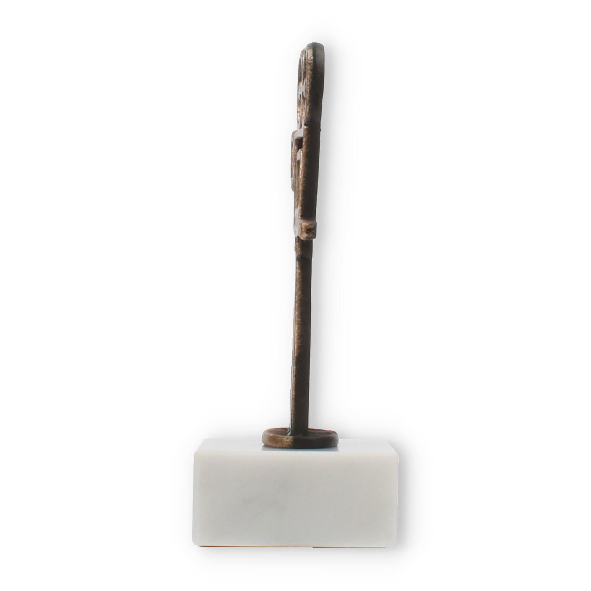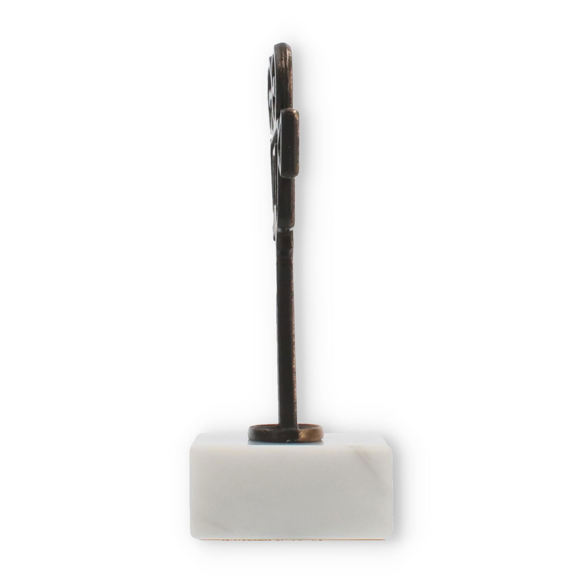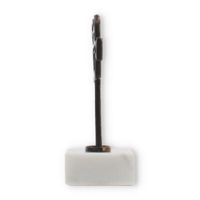 A base em mármore branco, polida e elegante, oferece o suporte ideal, destacando a escultura detalhada acima dela. Este contraste entre os materiais e cores adiciona um toque de classe e intemporalidade. A cada premiação, essa peça se torna uma recordação duradoura e significativa.