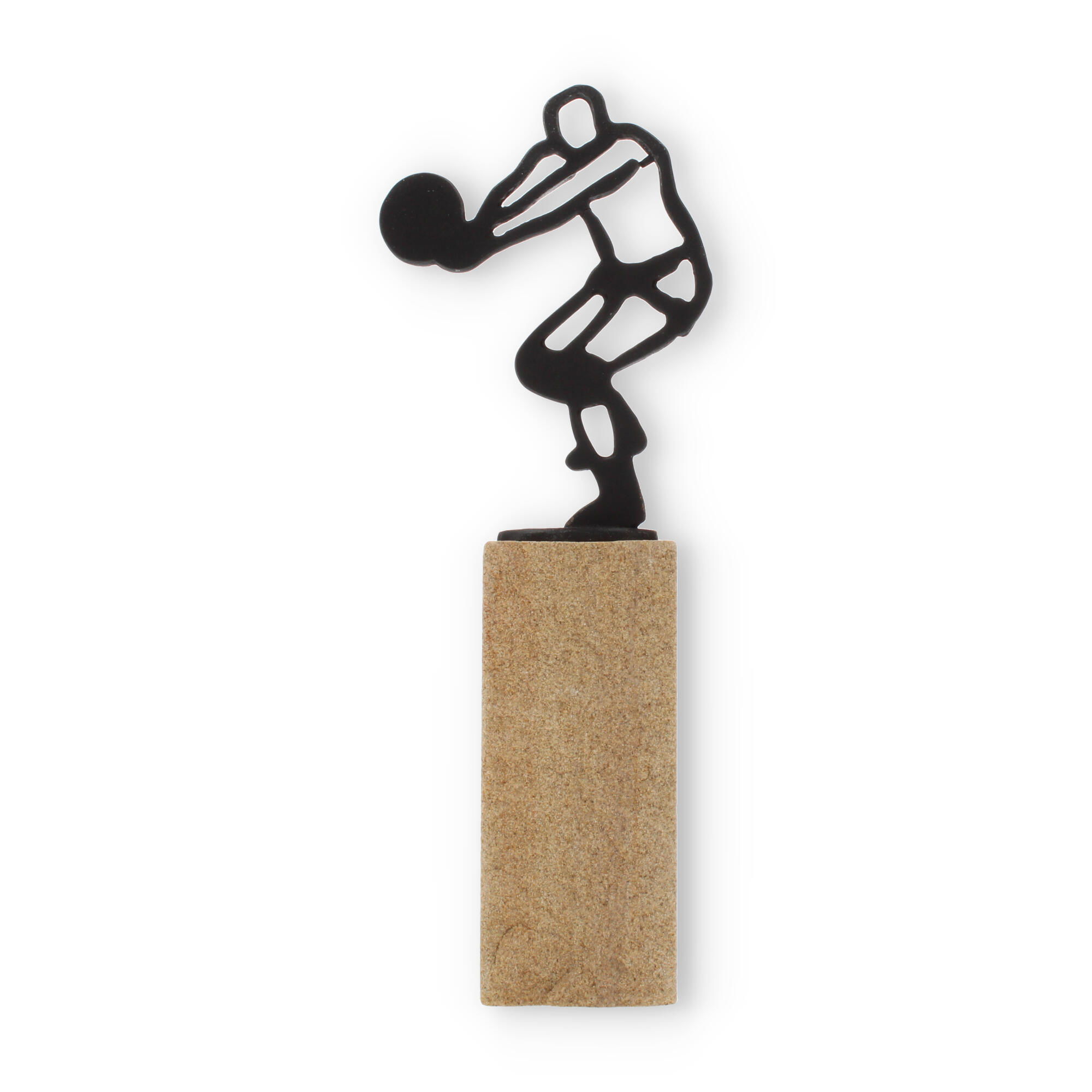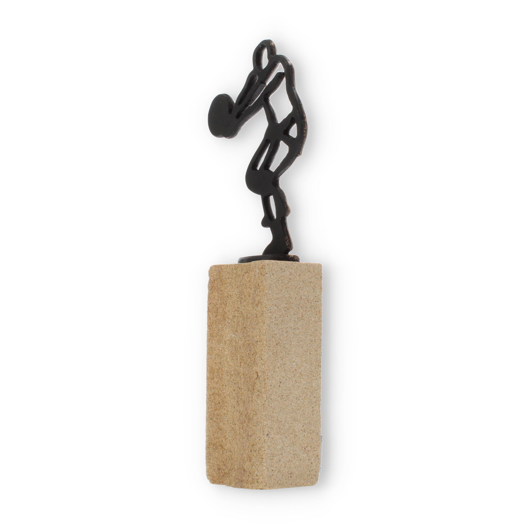 De combinatie van de rustieke zandsteen sokkel en het verfijnde metalen figuur zorgt voor een visuele balans die elke ruimte verrijkt. Het is niet alleen een trofee, maar ook een decoratief object dat bewondering opwekt bij iedere kijker.