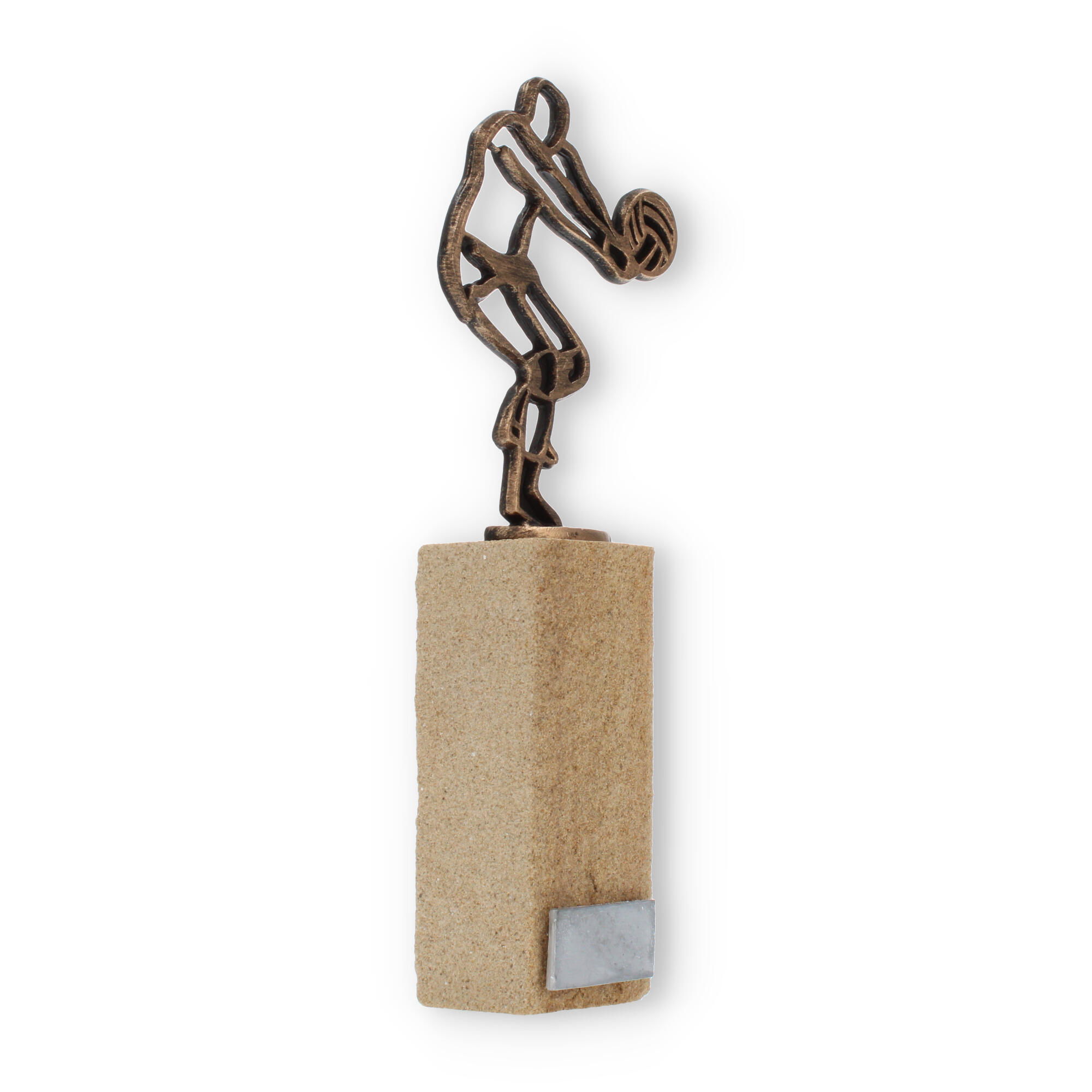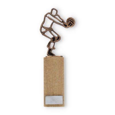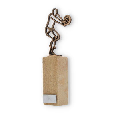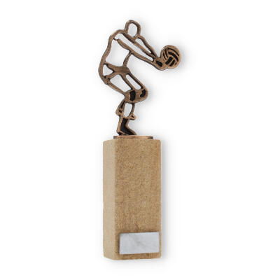 De Beker Volleyballer straalt met zijn trots goudkleurige figuur authentieke sportieve pracht uit. Het beeld stelt de dynamische pose van een volleyballer weer en is gemaakt van duurzaam zamac. De zandsteen sokkel, met zijn natuurlijke uitstraling, biedt een stabiele en stijlvolle basis. Een zilverkleurig schild op de sokkel maakt personalisatie eenvoudig mogelijk.