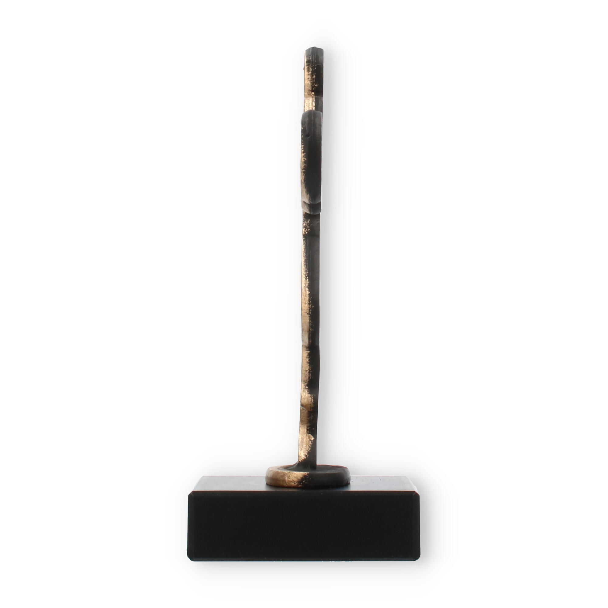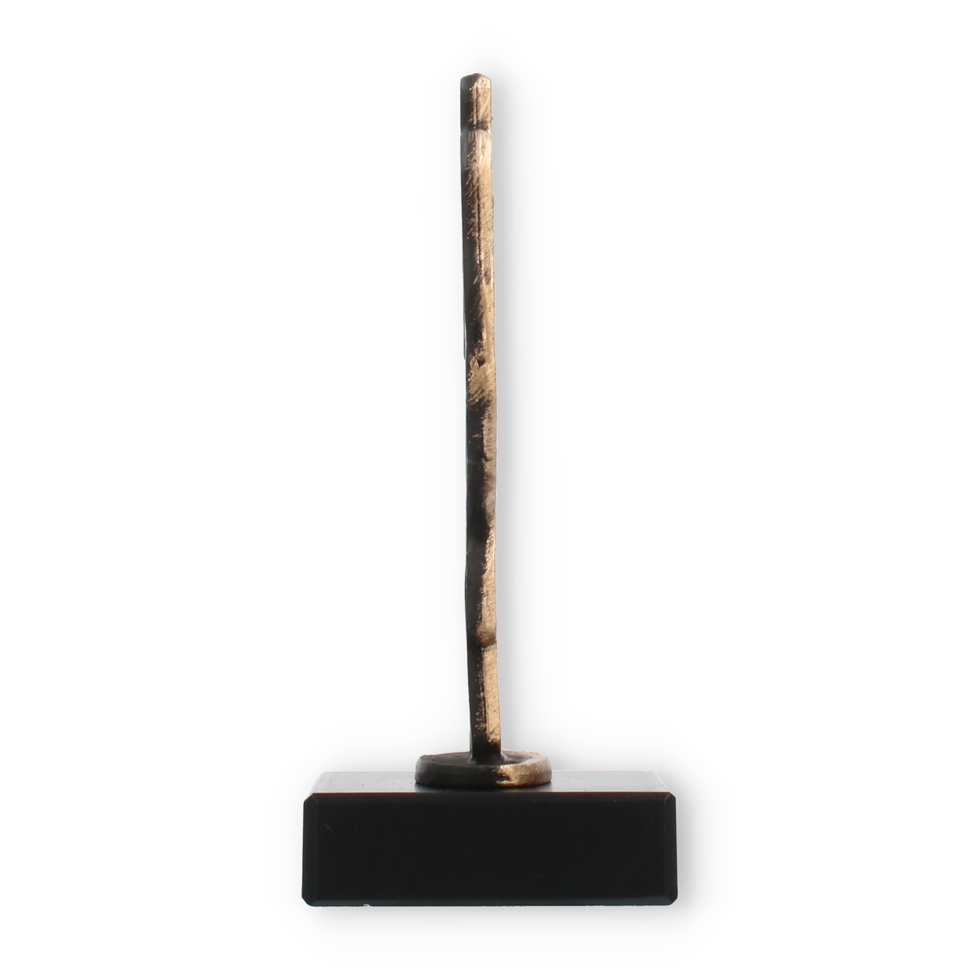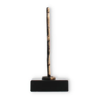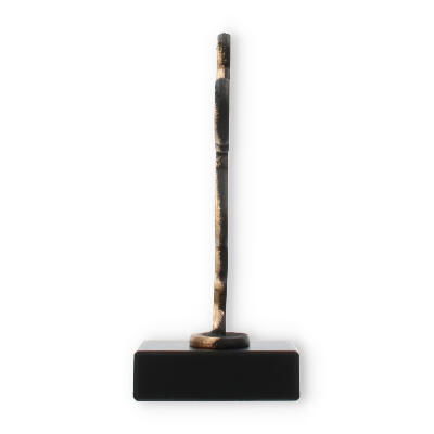 El trofeo contorno figura jugadora voleibol es una pieza magnífica que captura el espíritu del deporte. Confeccionado en Zamak con un tono de color oro viejo, muestra un estilo moderno y elegante que captura la esencia del voleibol en una forma minimalista. La base de mármol negro añade un contraste clásico, subrayando la figura con un toque de sofisticación.