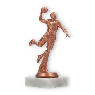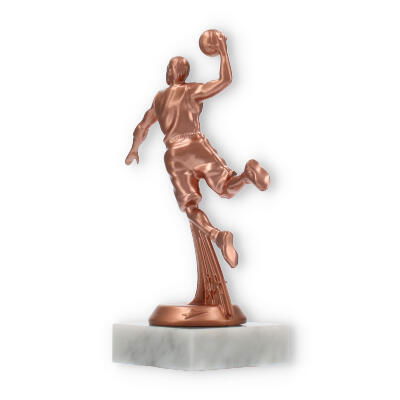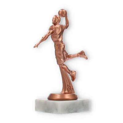 Der Pokal Basketballspieler auf einem weißen Marmorsockel ist eine beeindruckende Auszeichnung für jeden Basketball-Wettkampf. Die detailreiche Figur mit bronzefarbener Oberfläche überzeugt durch ihre Dynamik. Eine individuelle Gravur macht diese Trophäe zu einem einzigartigen Andenken.