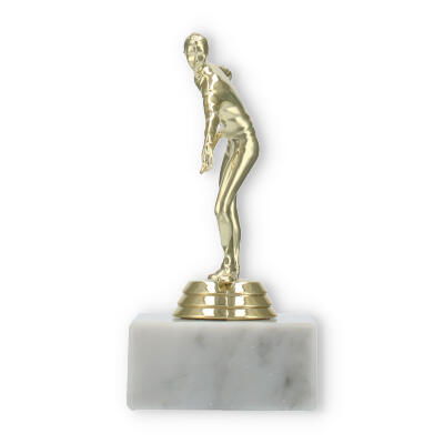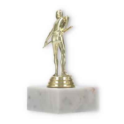 El acabado dorado de la figura, combinado con la base de mármol blanco, garantiza que el trofeo destaque. Es más que un simple premio; es un testimonio de habilidad, trabajo duro y dedicación.