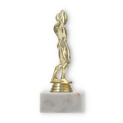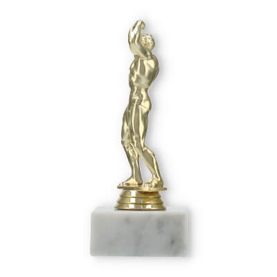 Le socle en marbre blanc avec ses veines grises ajoute une touche d'élégance, offrant une base stable et distinguée. C'est l'endroit idéal pour une plaque de gravure dorée, sur laquelle un message unique peut être inscrit. Cela rend chaque trophée distinct et hautement personnel, parfaitement adapté à chaque occasion spéciale.