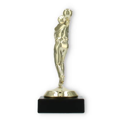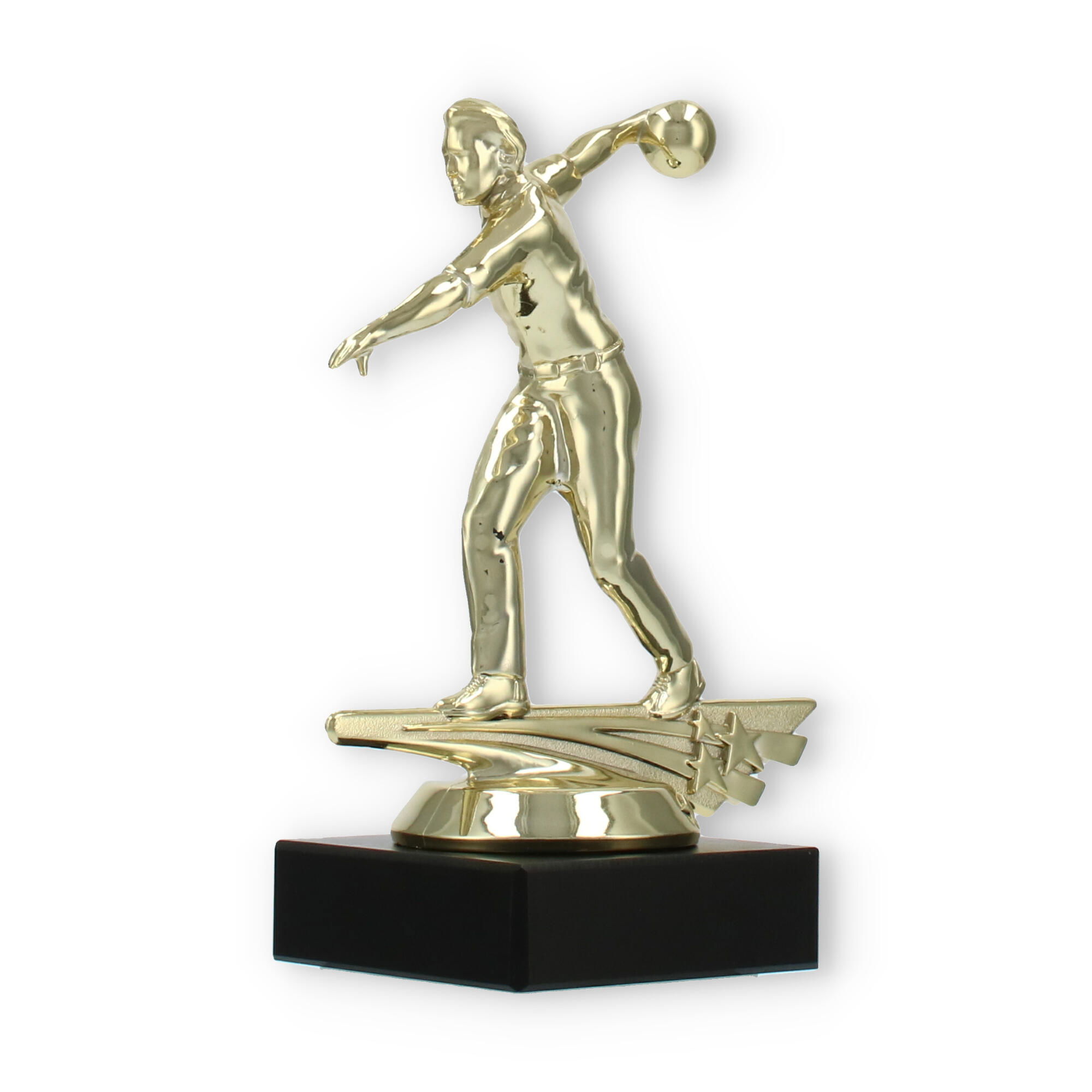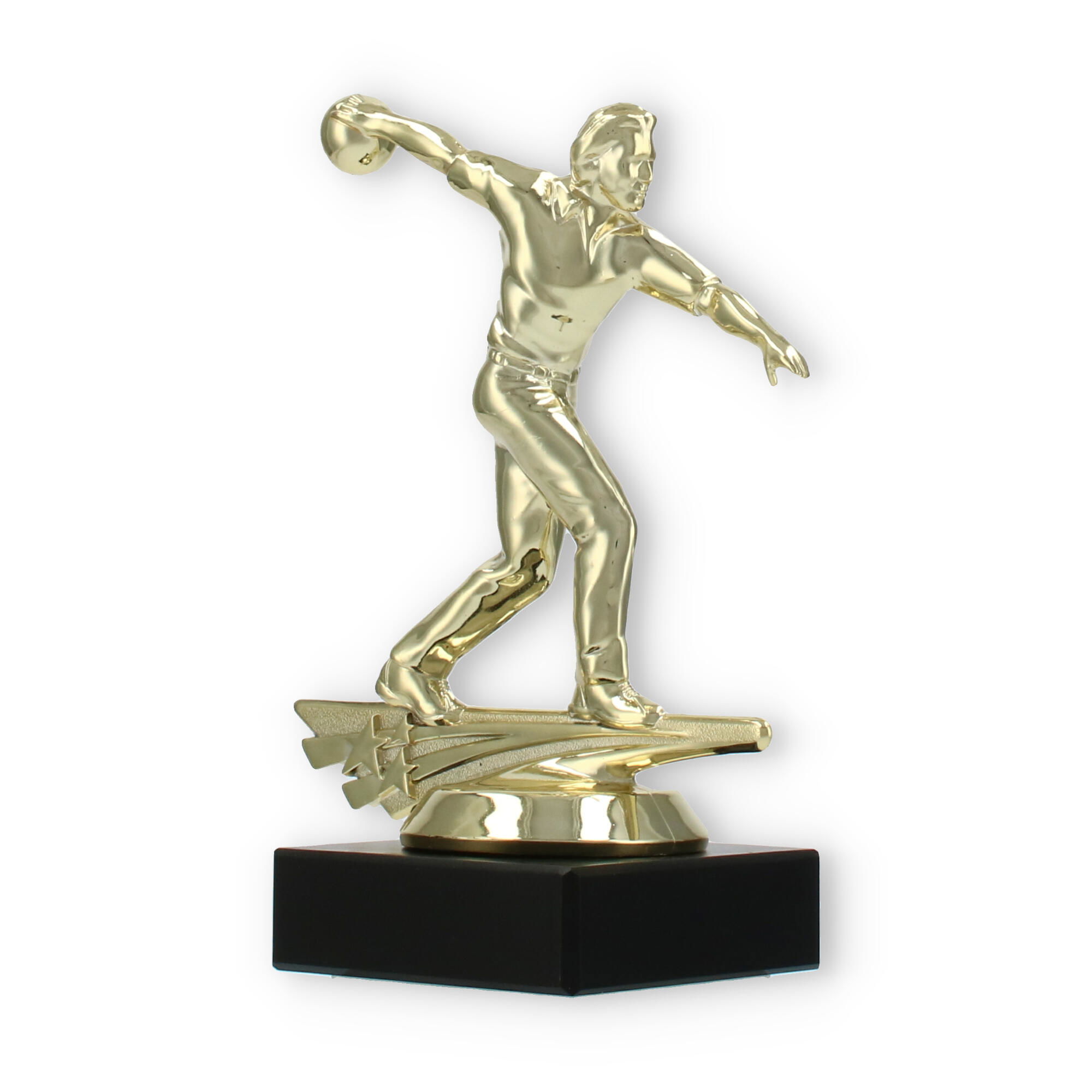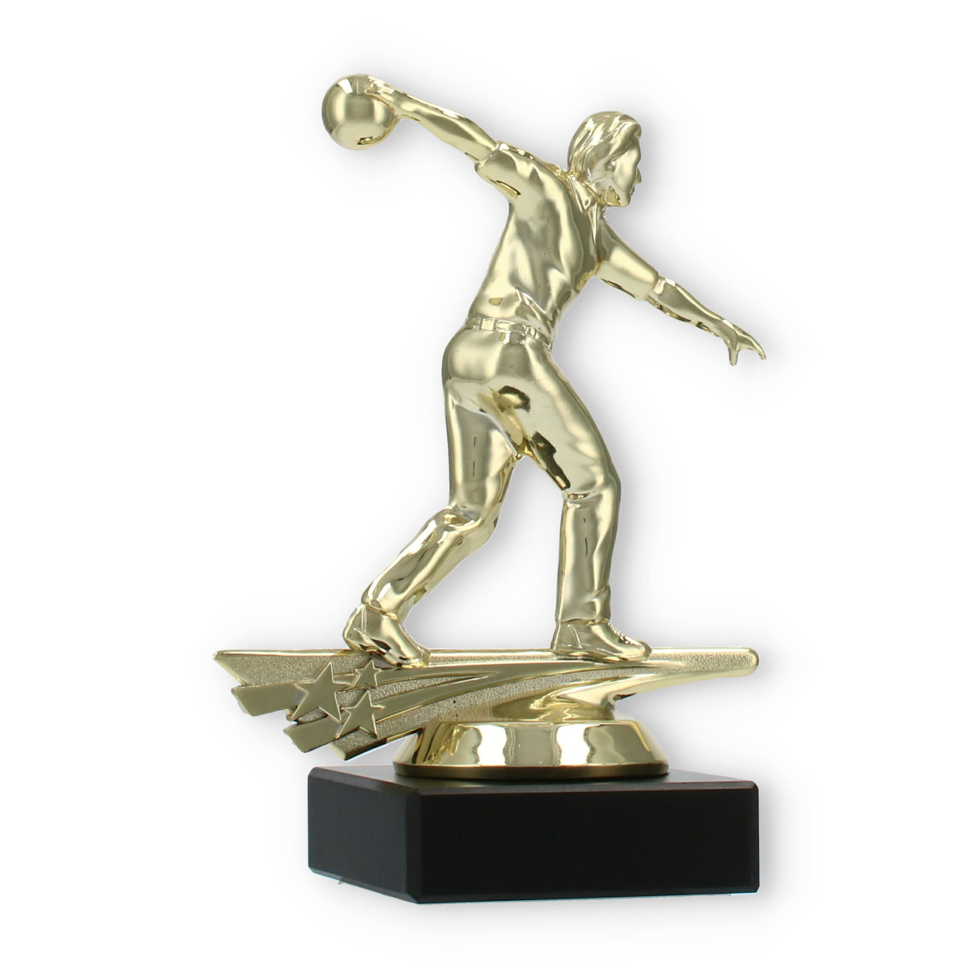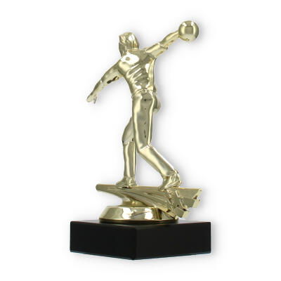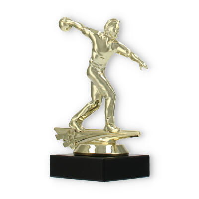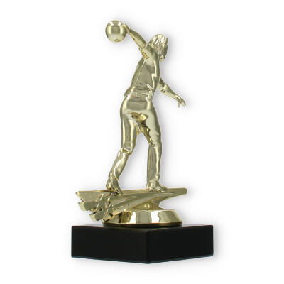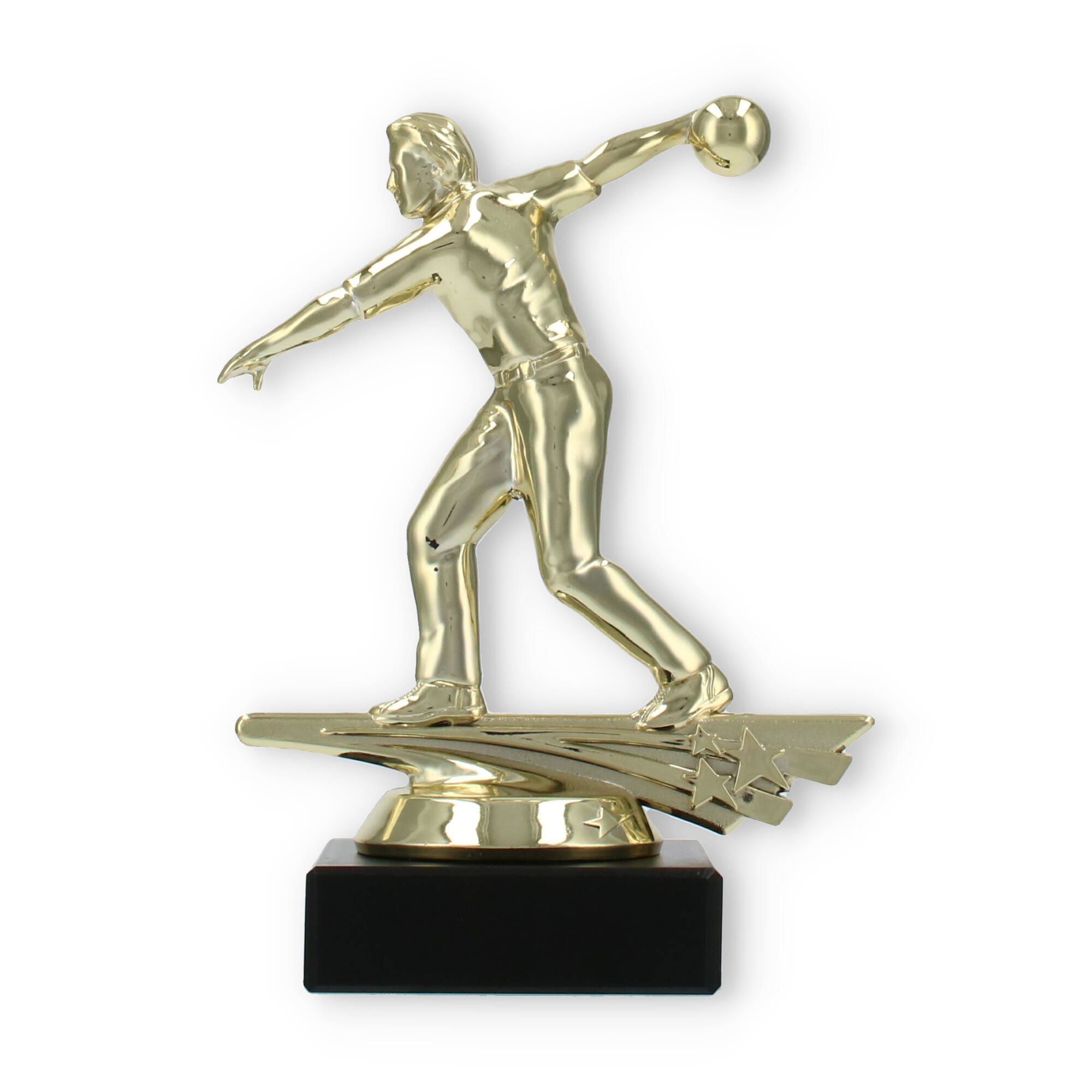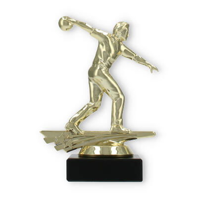 Die Pokalfigur Bowling Herren vereint sportliche Eleganz und widerstandsfähige Materialien und ist die perfekte Wahl, um herausragende Bowling-Leistungen zu würdigen. Die goldfarbene Bowling-Figur stellt einen dynamischen Spieler dar, der sich in einer kraftvollen Wurfbewegung befindet. Die fein detaillierte Gestaltung der Figur, von den Falten der Kleidung bis zur Bowlingkugel in der Hand, machen sie zu einem echten Blickfang auf jeder Veranstaltung.