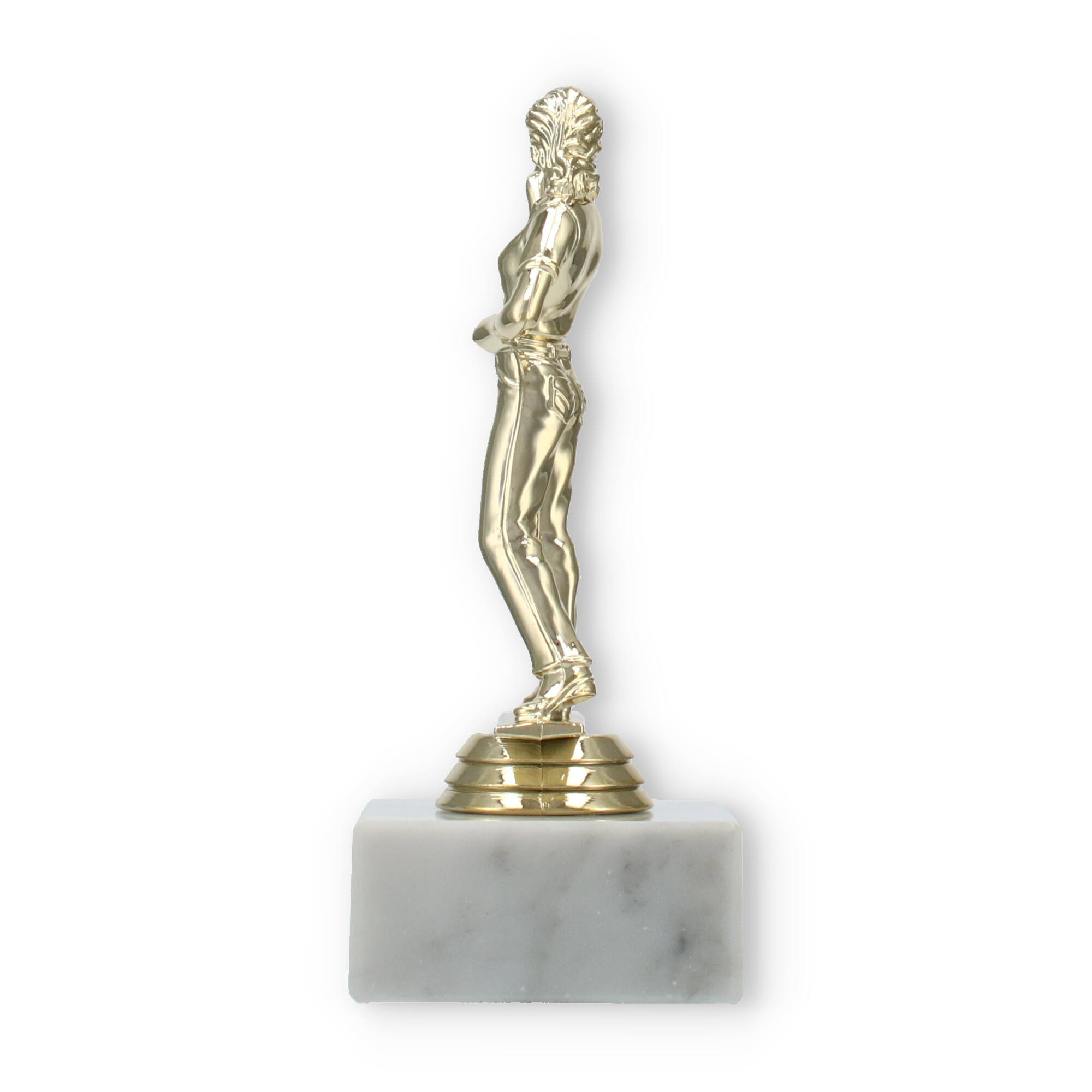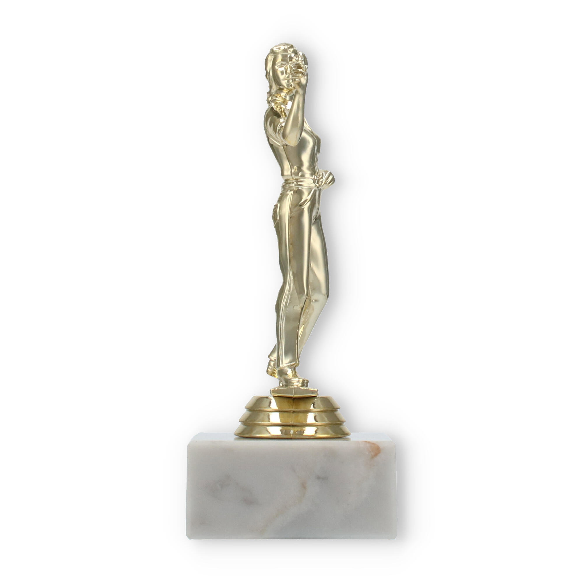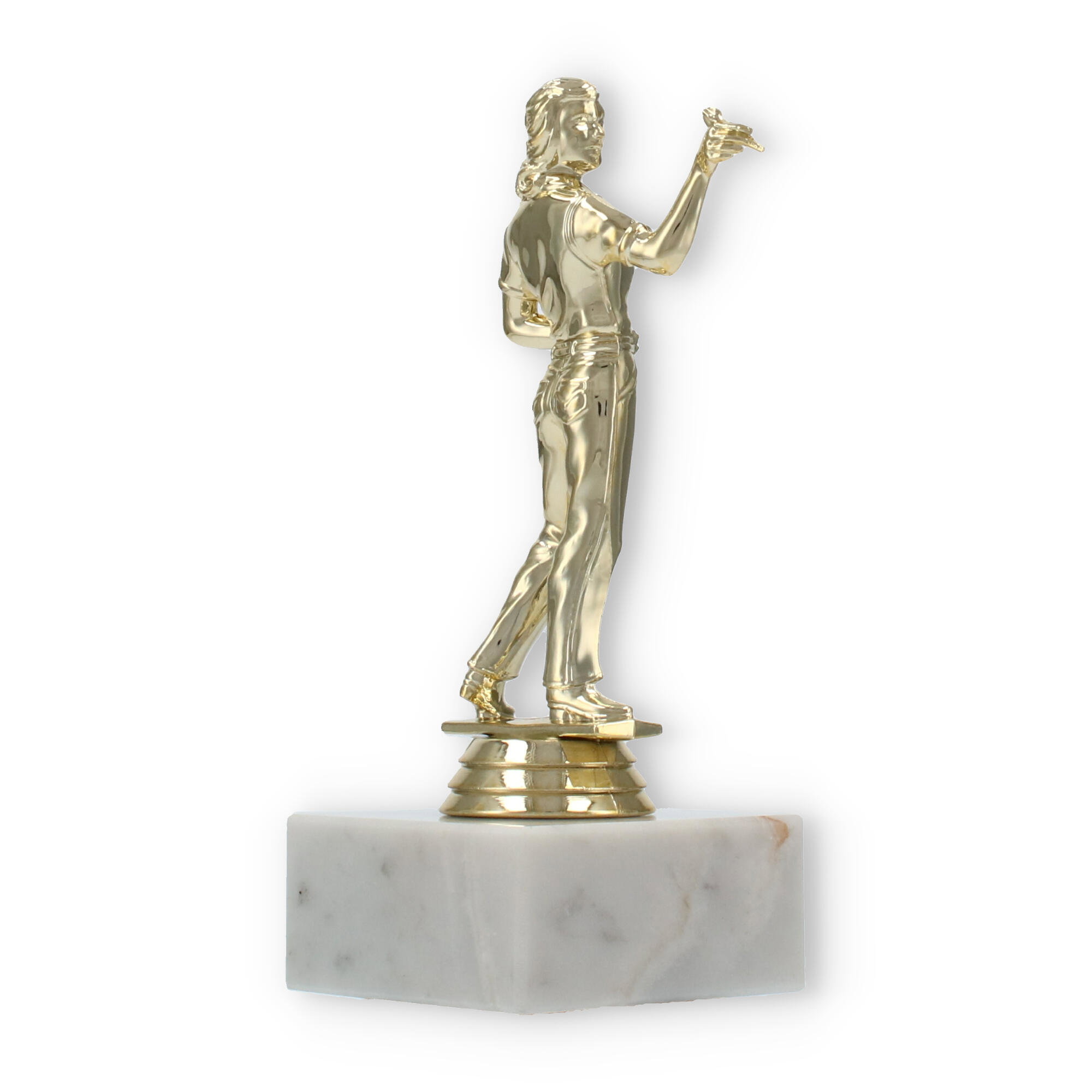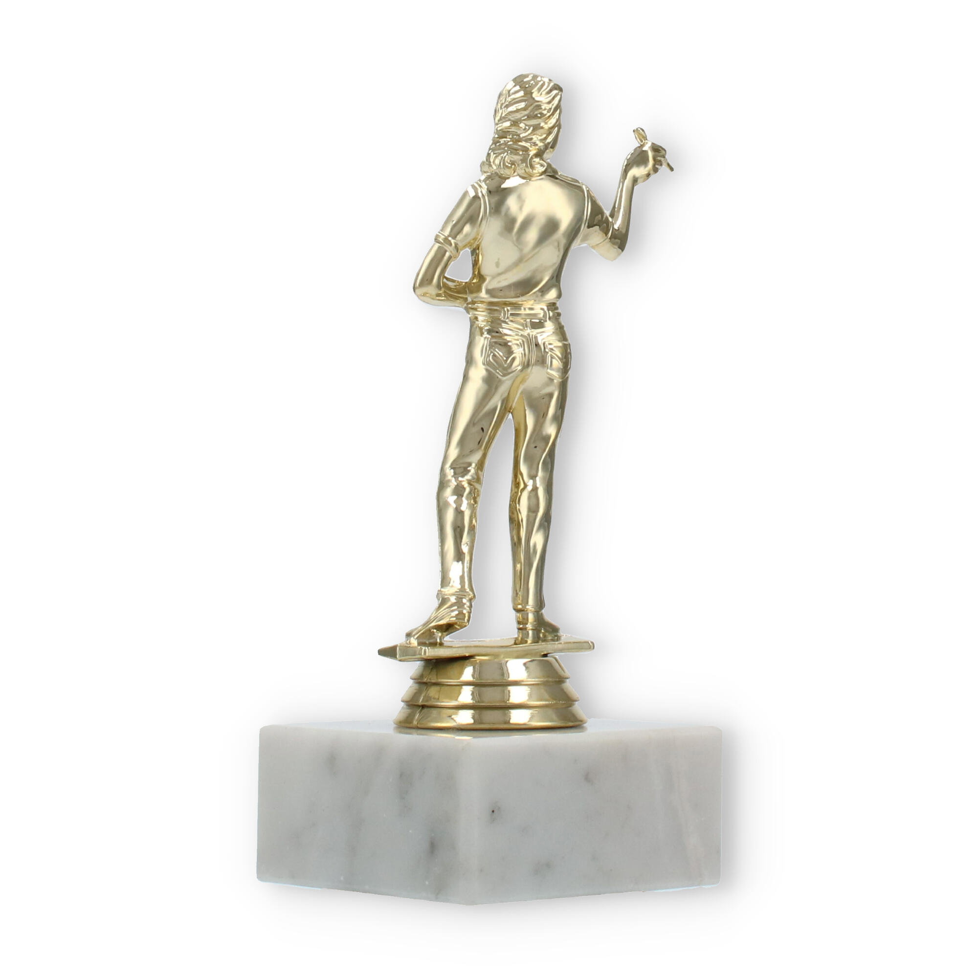 Unsere Pokalfigur Dartspielerin verewigt siegreiche Momente auf stilvolle Weise. Mit einer goldfarbenen Figur und einer Basis aus weißem Marmor wird jede Ehrung zu einem eindrucksvollen Ereignis. Personalisierbar und hochwertig – diese Trophäe ist die perfekte Wahl für Dart-Fans und Turniere.