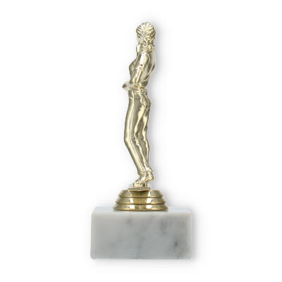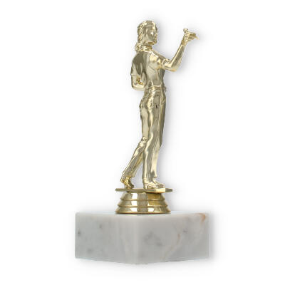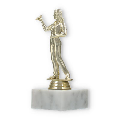 Die Kombination der unterschiedlichen Materialien macht diesen Pokal zu einem besonderen Hingucker. Die goldfarbene Figur auf der marmornen Basis wirkt harmonisch und exzellent verarbeitet. Diese Detailgenauigkeit sorgt dafür, dass die Pokalfigur Dartspielerin auch noch nach Jahren in perfektem Zustand bleibt.