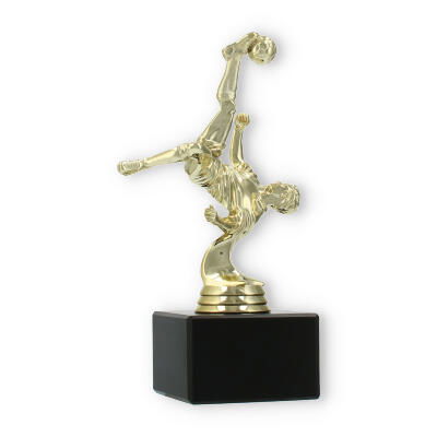 La coupe Figure coup de pied est une distinction remarquable pour les compétitions de football. Sa figurine en plastique de teinte or capture magnifiquement un moment énergique et dynamique : un joueur exécutant un coup de pied spectaculaire. Ce modèle attire immédiatement l'attention par son design détaillé et sa finition captivante.