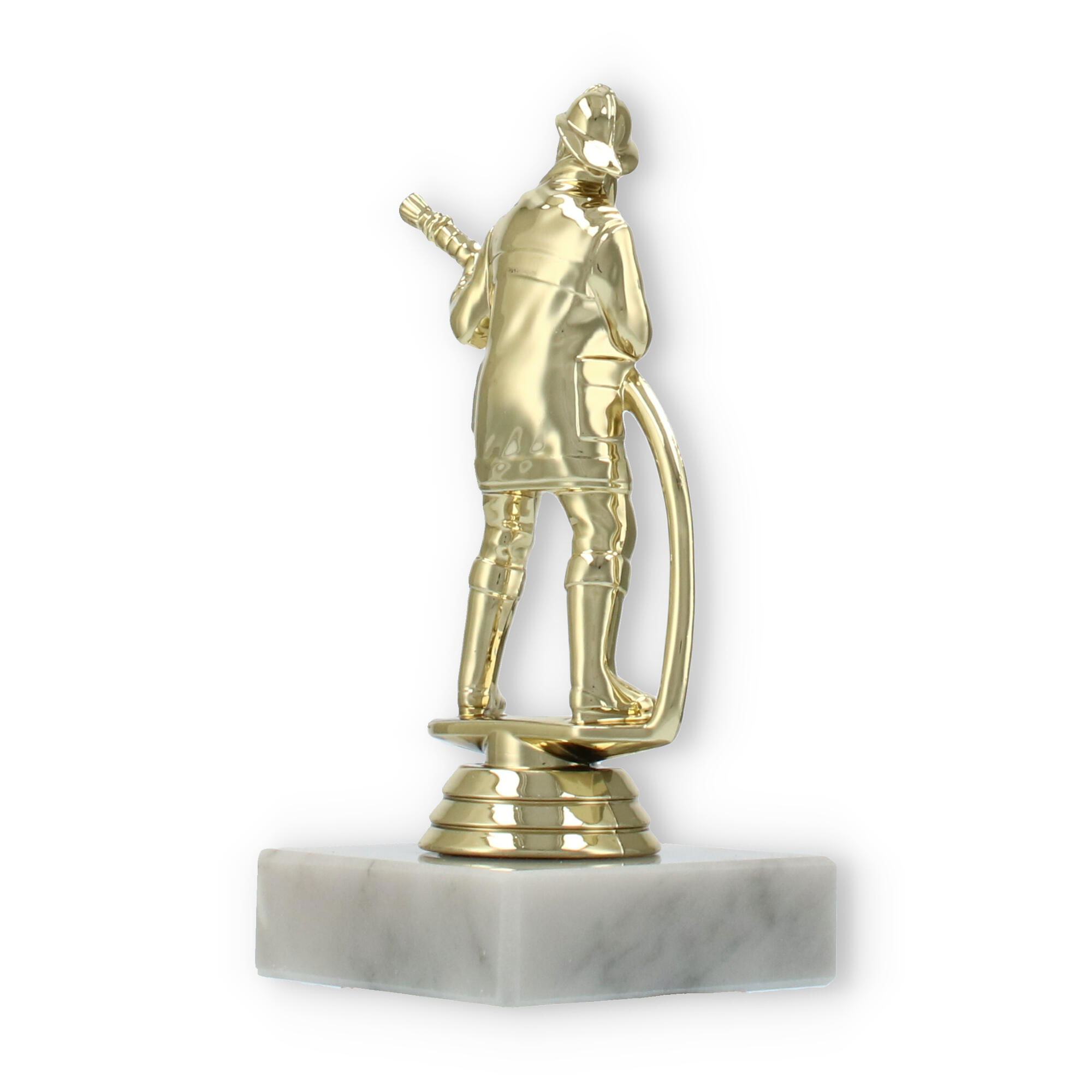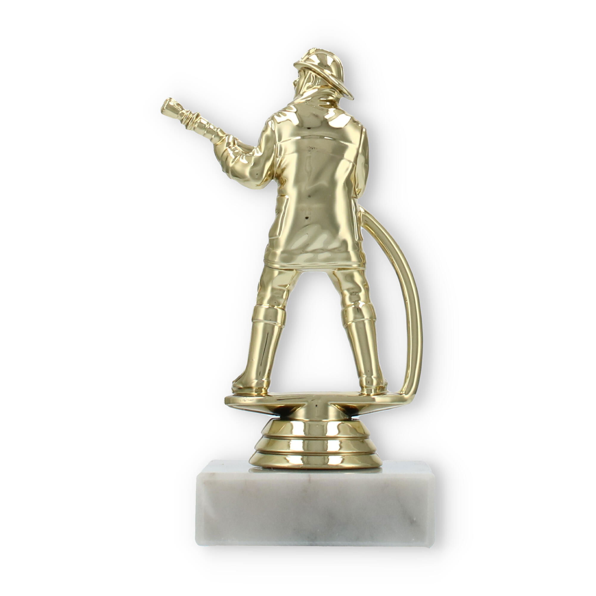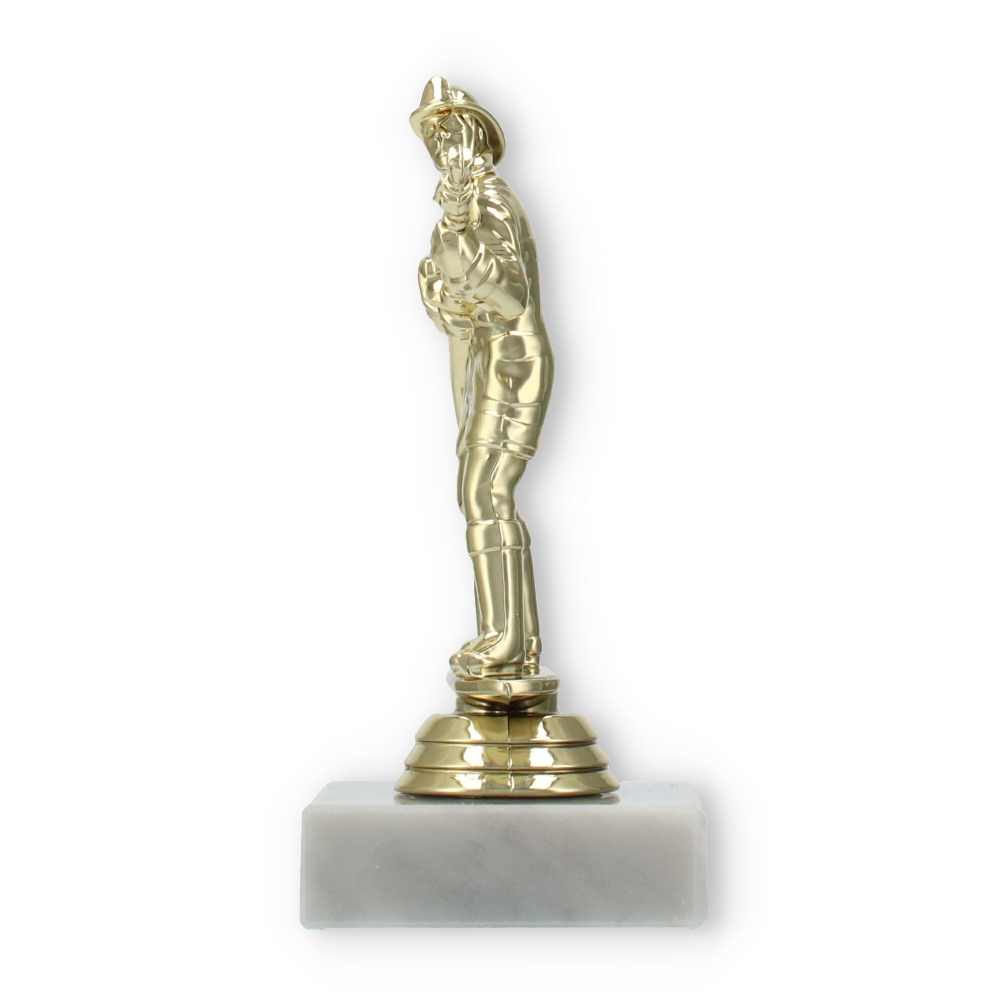 El trofeo figura de bombero, con acabado en color dorado y asentado sobre una base de mármol blanco, destaca en cualquier premiación. Personaliza cada pieza con grabado láser para rendir homenaje a los esfuerzos excepcionales y mantener vivo el recuerdo del triunfo.