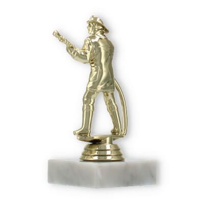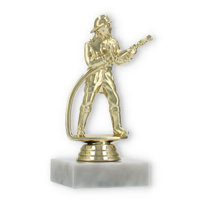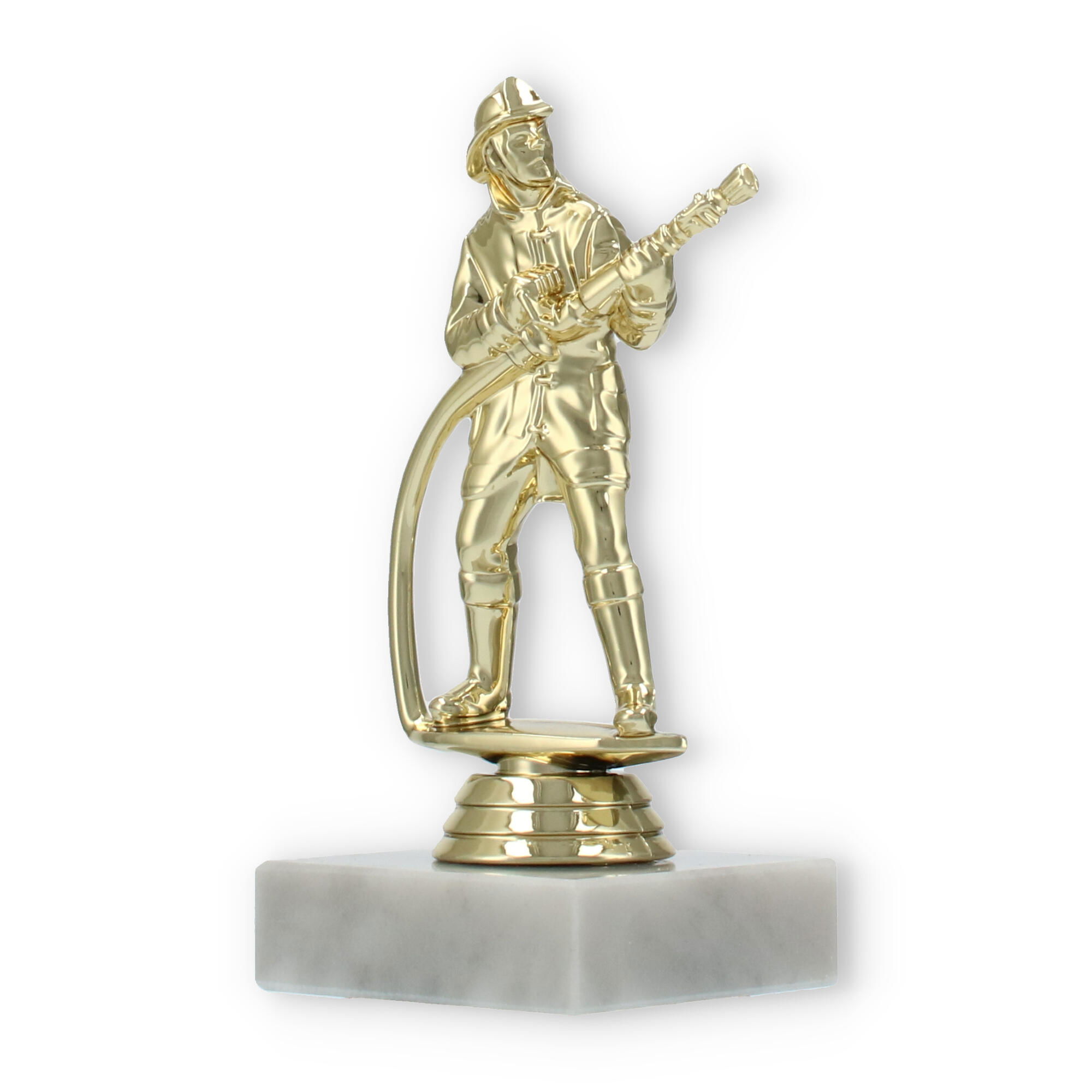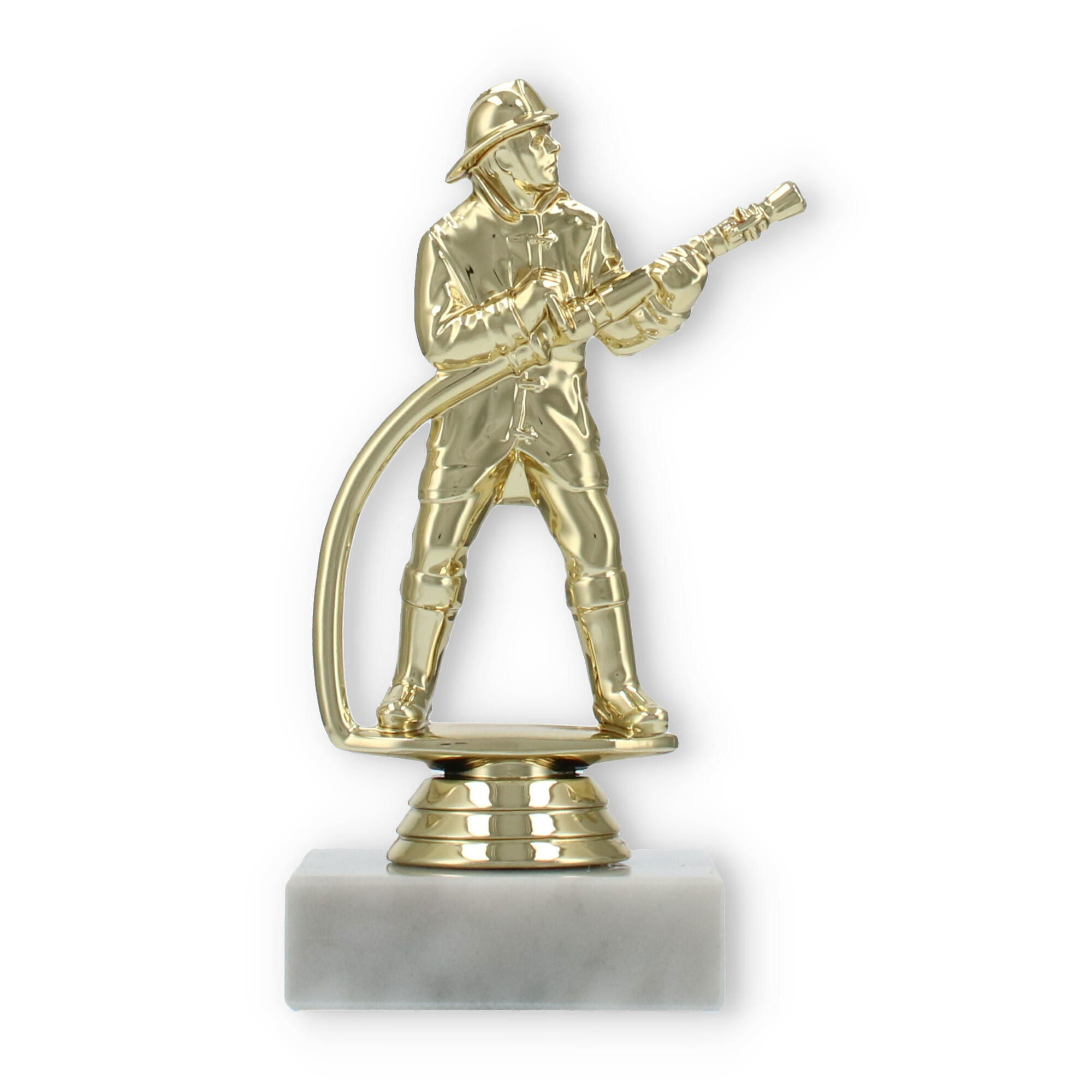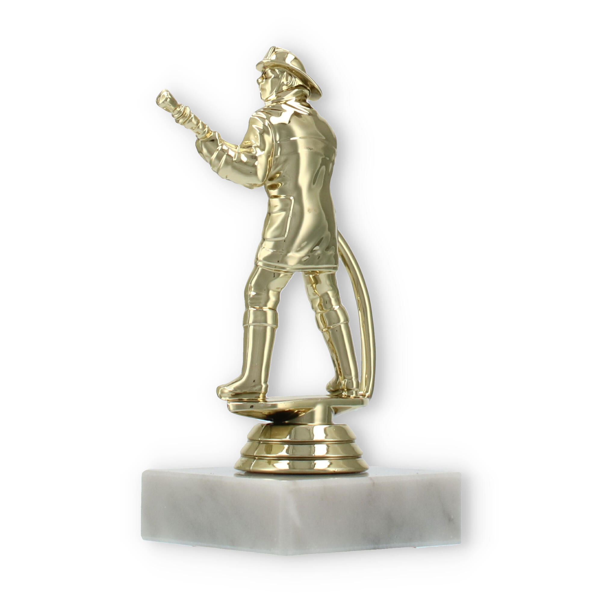 El trofeo figura de bombero, con acabado en color dorado y asentado sobre una base de mármol blanco, destaca en cualquier premiación. Personaliza cada pieza con grabado láser para rendir homenaje a los esfuerzos excepcionales y mantener vivo el recuerdo del triunfo.