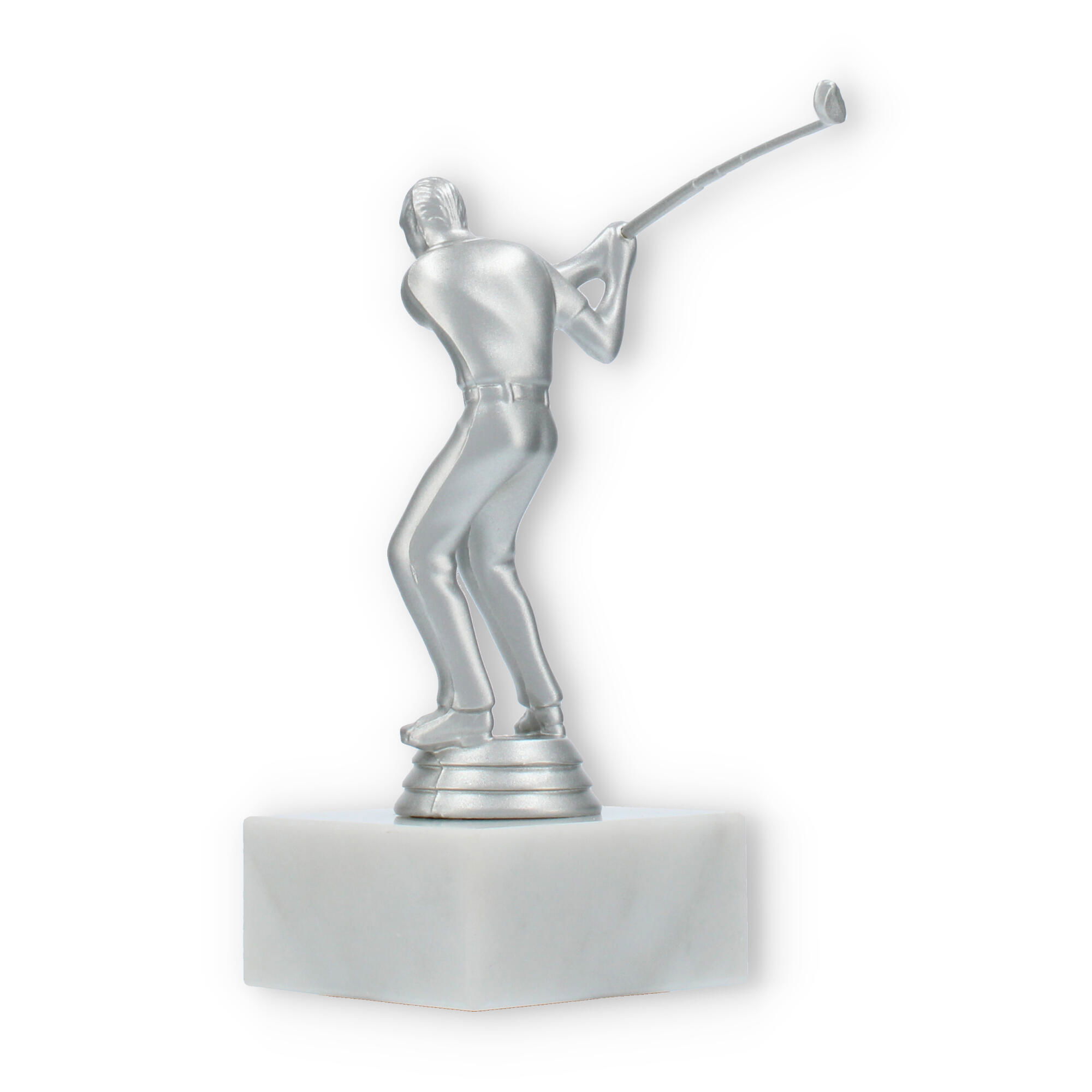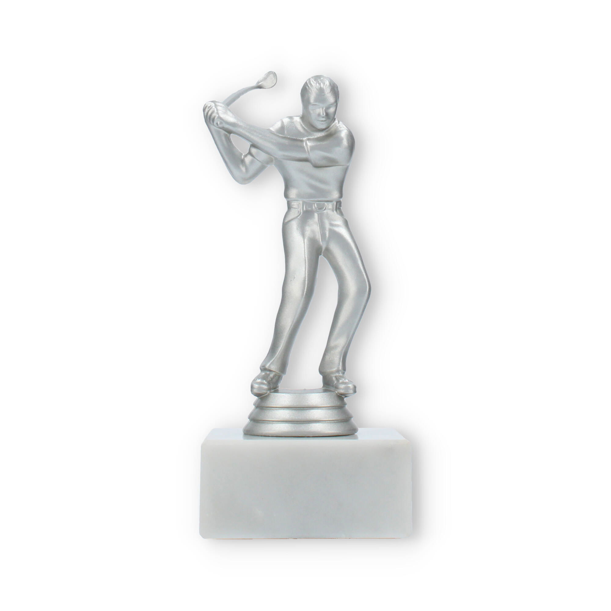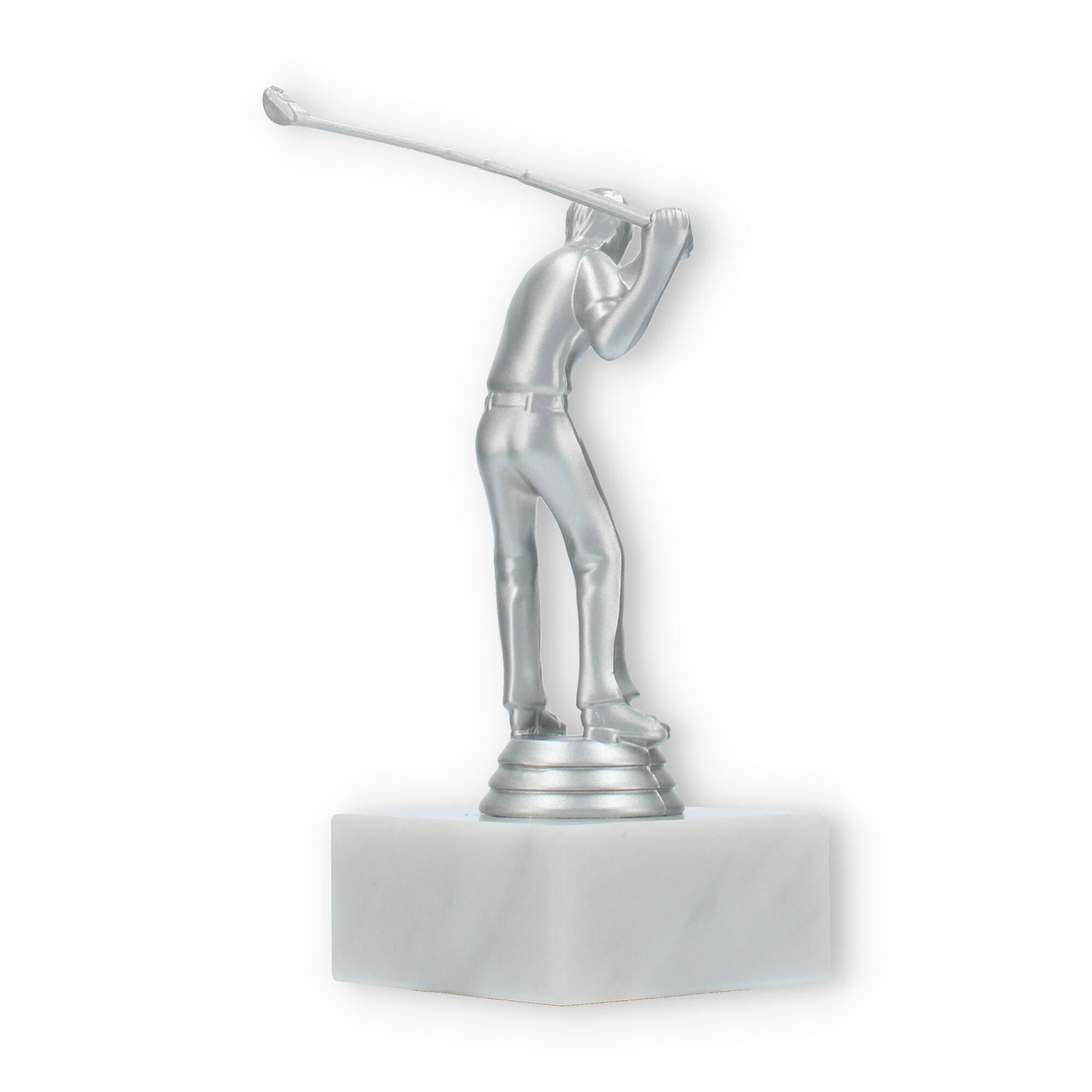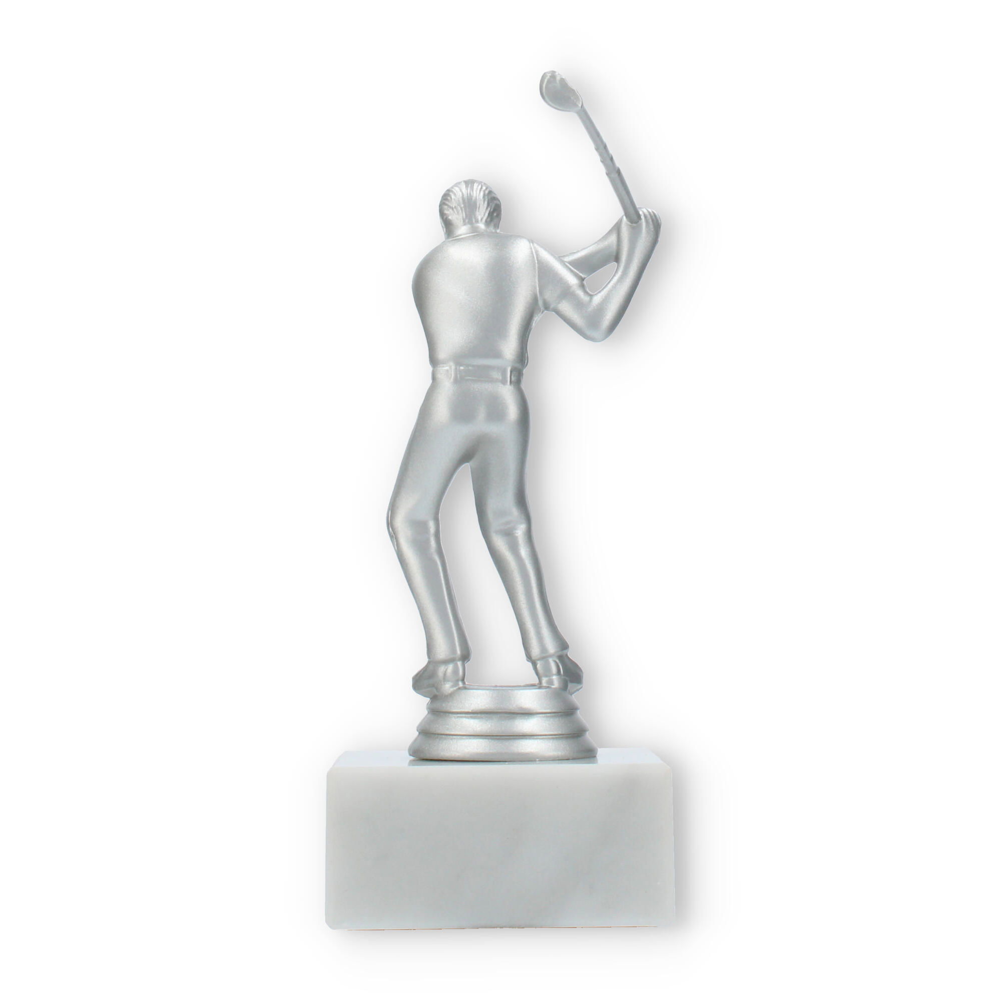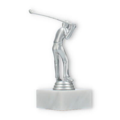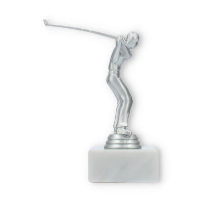 De Golf Men trofee is speciaal ontworpen voor liefhebbers van de golfsport. Deze elegante beker vangt de geest van competitie en de vreugde van overwinning binnen een prachtig ontwerp. De zilverkleurige kunststof figuur symboliseert een golfspeler in beweging, met oog voor detail in elke curve en lijn. Op de stevige witte marmeren sokkel komt het geheel magnifiek tot zijn recht.
