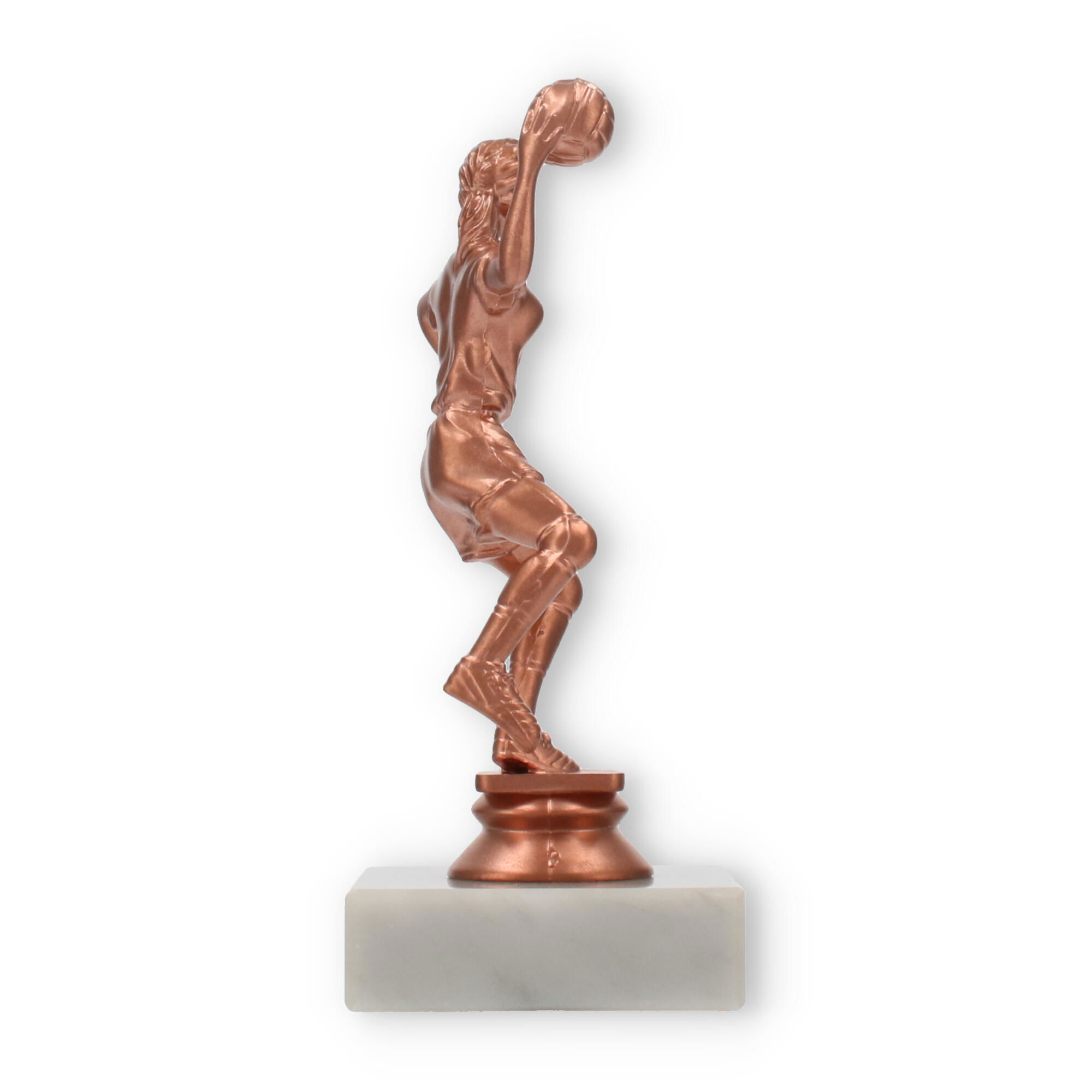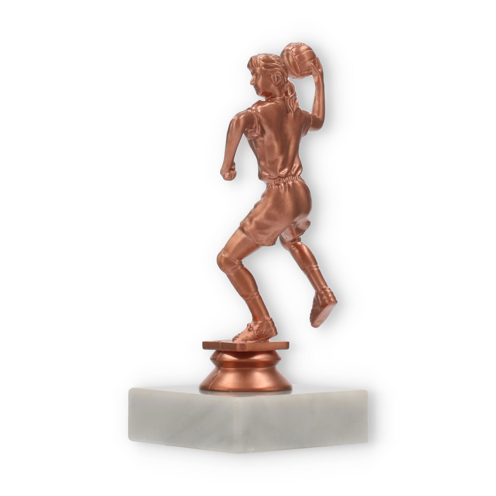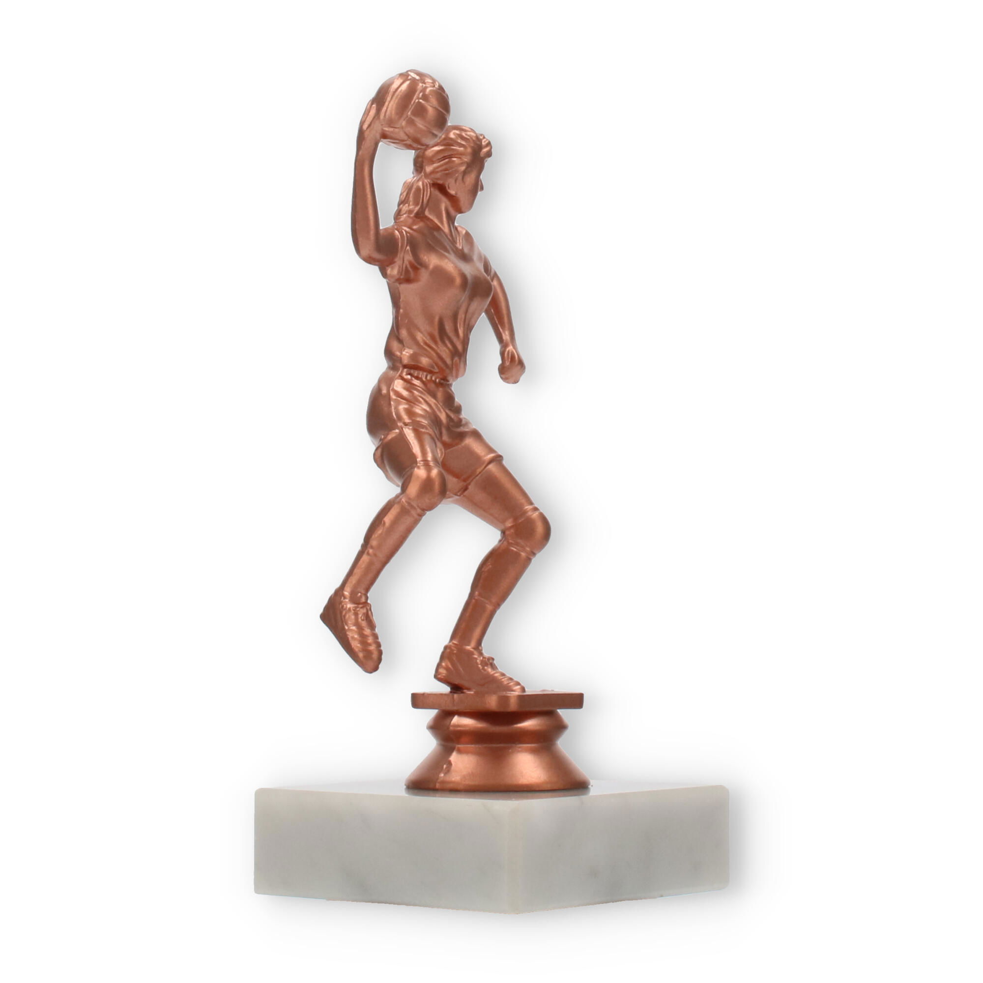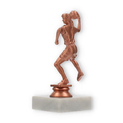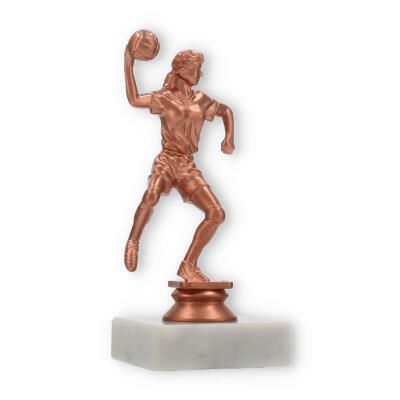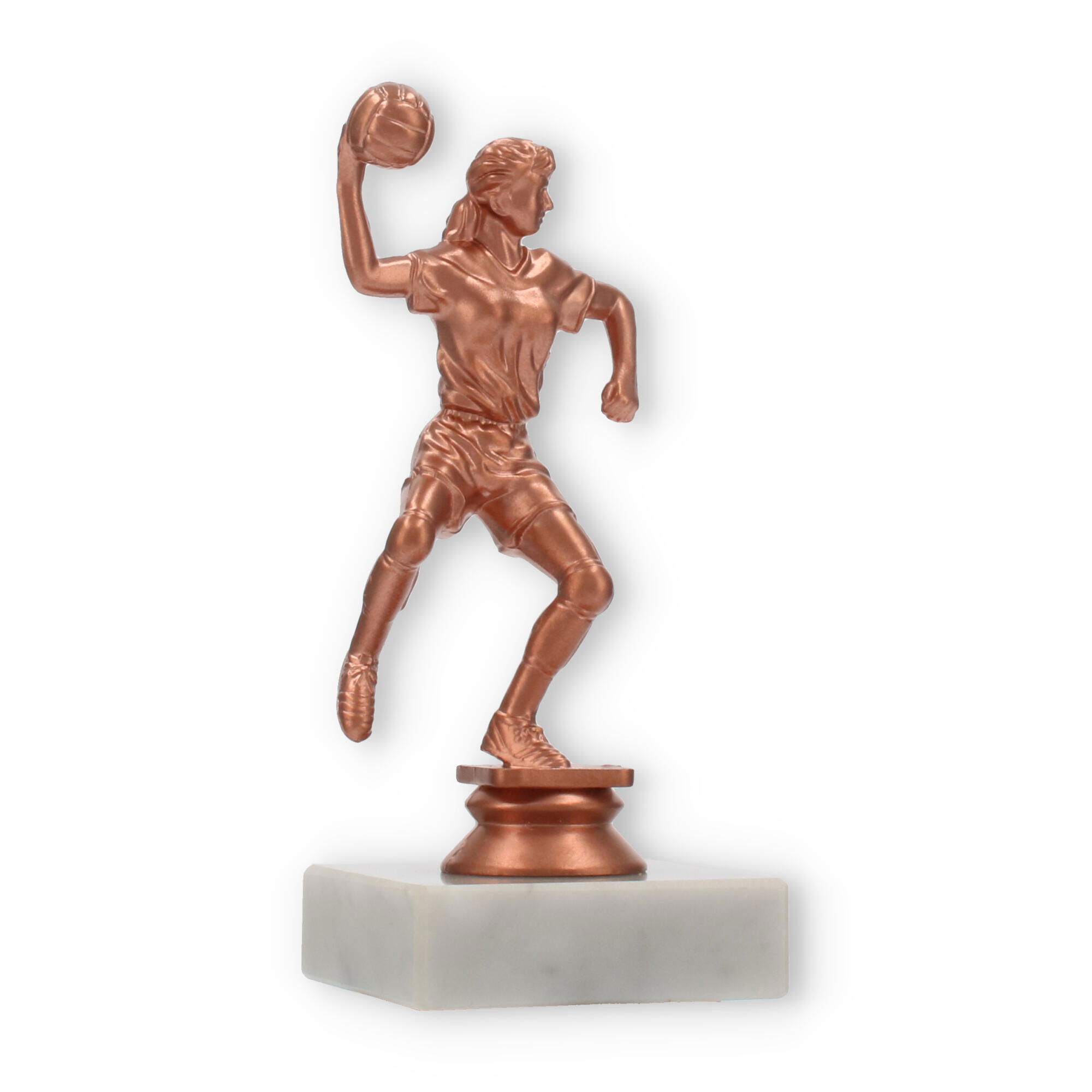 El trofeo de balonmano, una figura imponente con un acabado en colores bronceado, resplandece sobre su base de mármol blanco. Perfecto para decorar momentos de gloria, personalízalo con un grabado exclusivo para capturar el espíritu del triunfo.