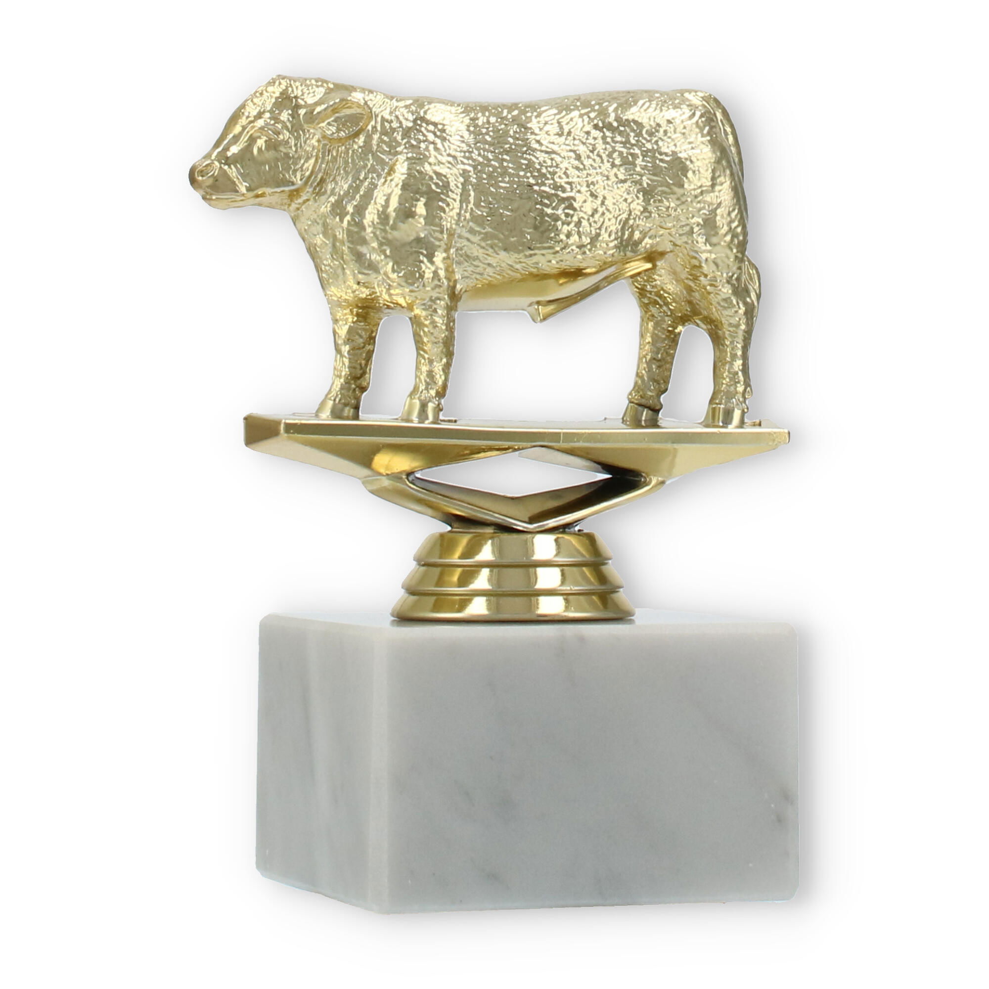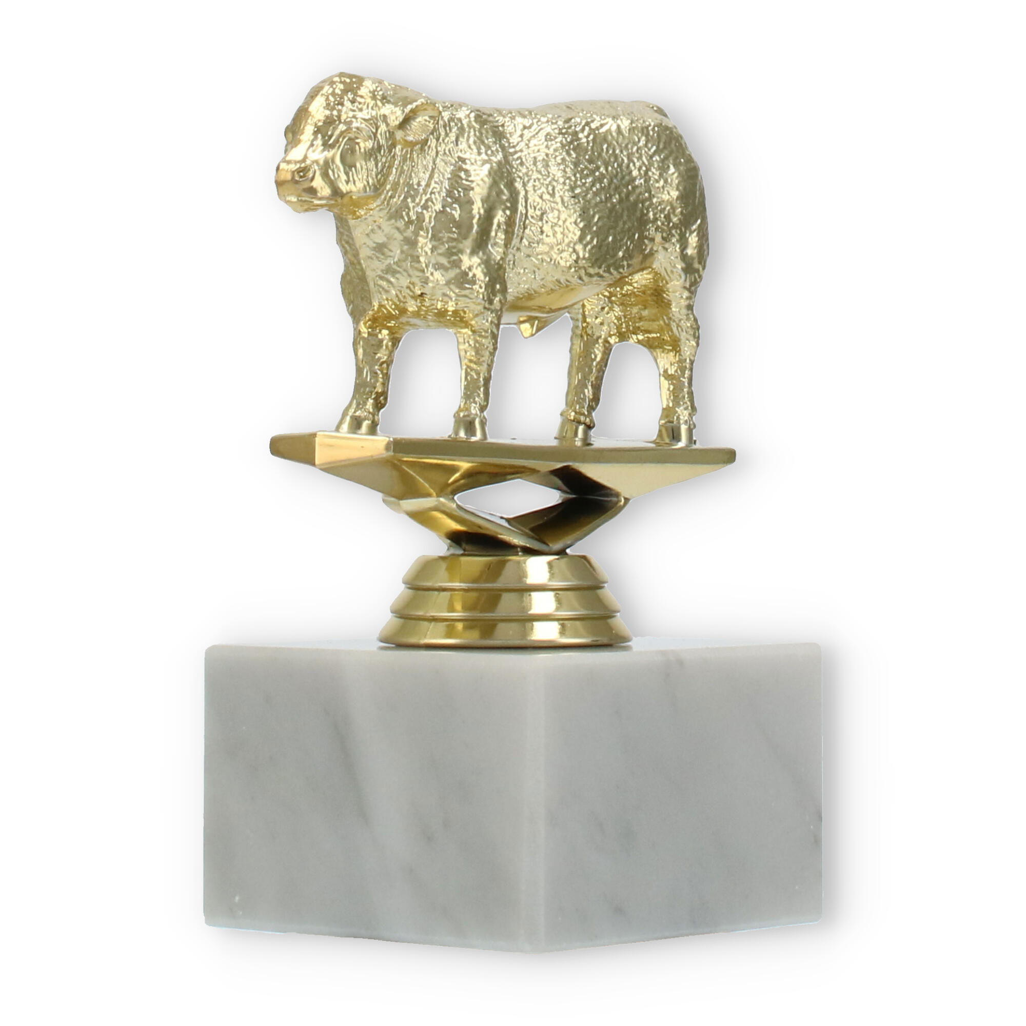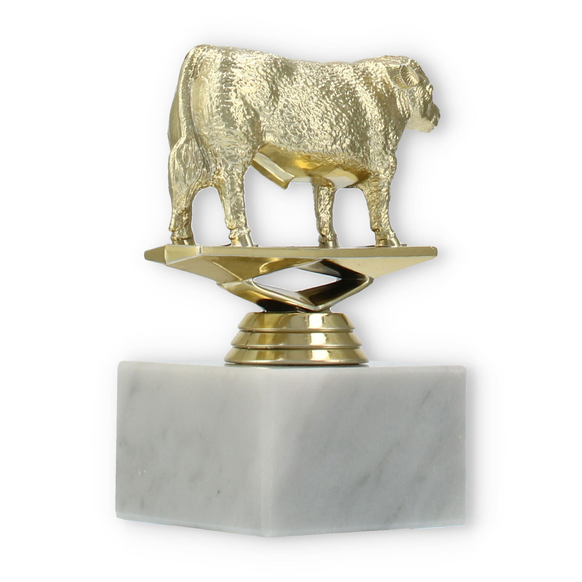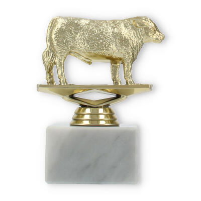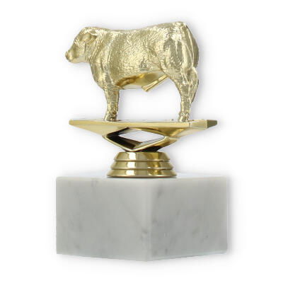 Der Pokal Hereford Stier auf einem stabilen weißen Marmorsockel ist eine beeindruckende Auszeichnung. Mit seiner goldfarbenen Kunststofffigur und der Möglichkeit zur individuellen Gravur macht er jede Ehrung unvergesslich.