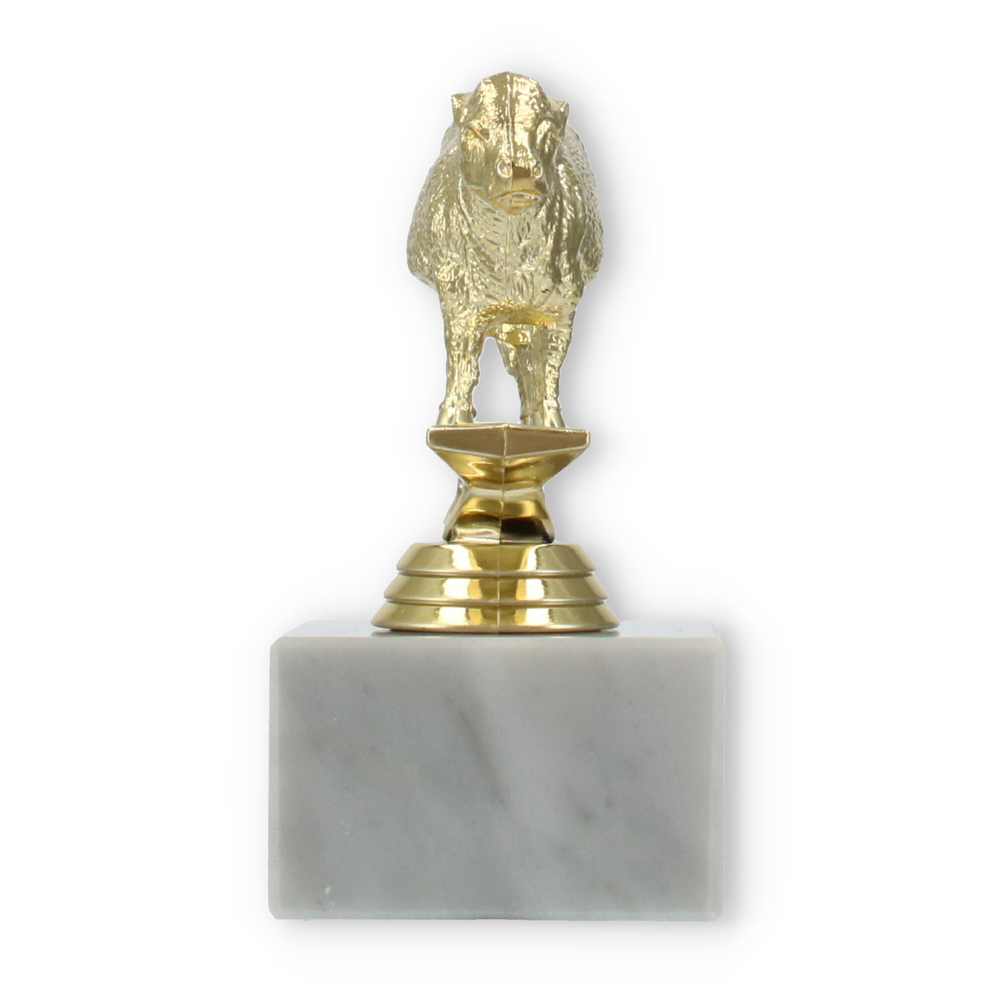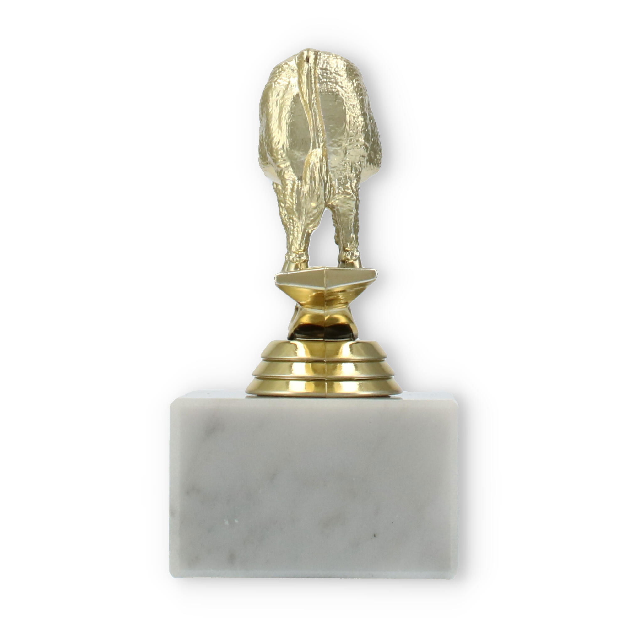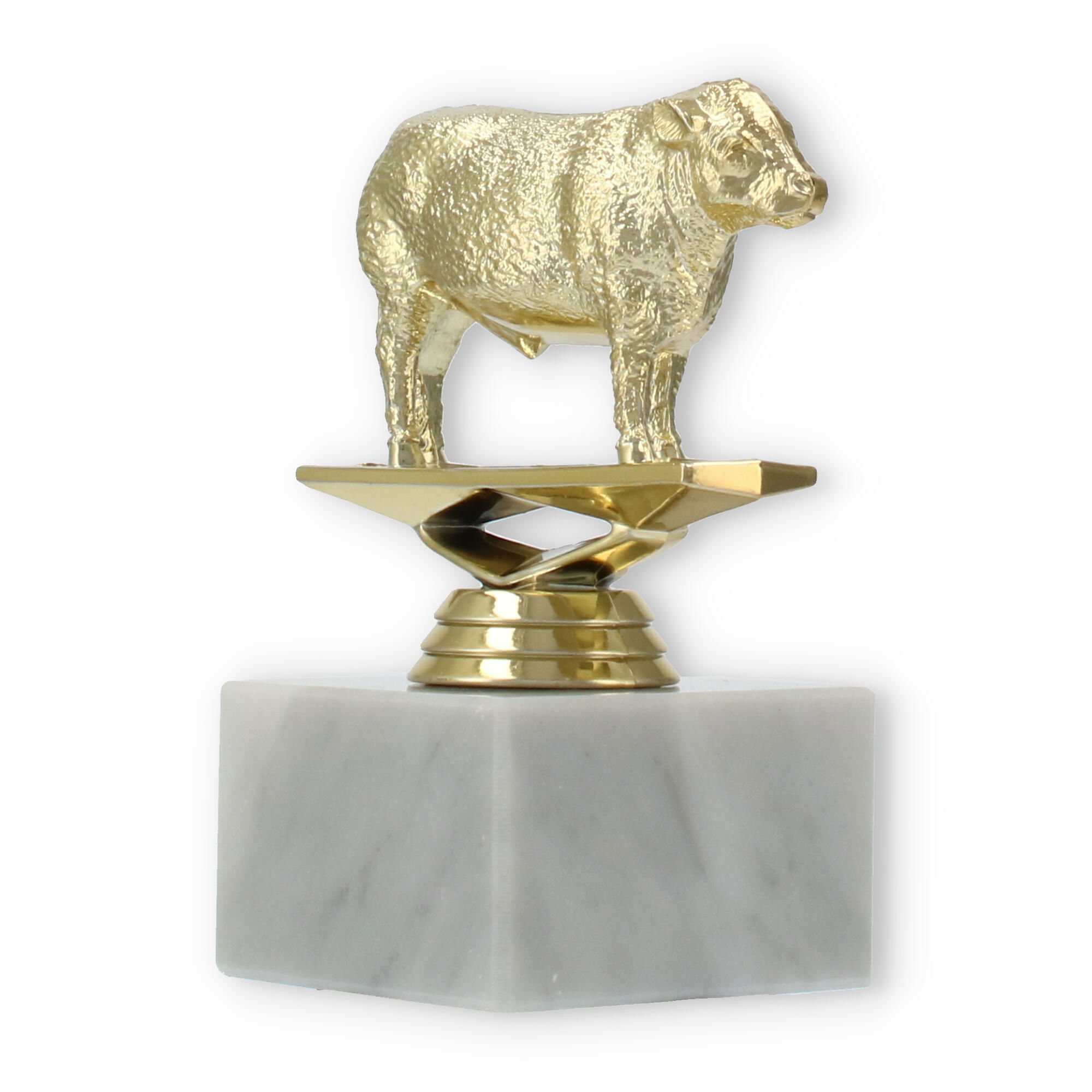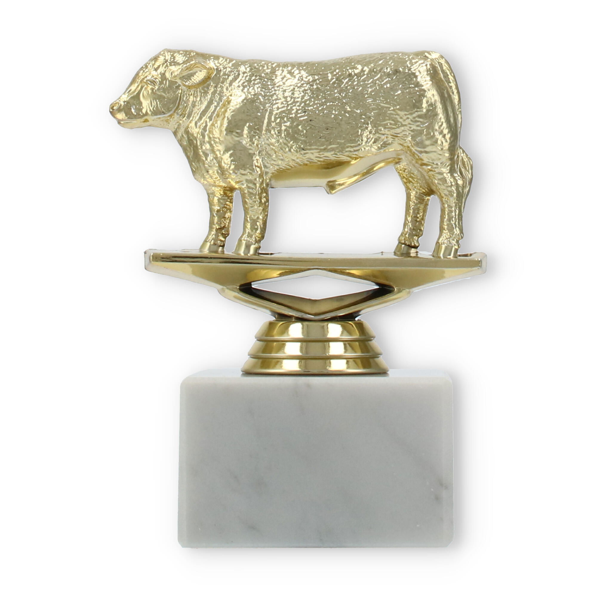 Der Pokal Hereford Stier auf einem stabilen weißen Marmorsockel ist eine beeindruckende Auszeichnung. Mit seiner goldfarbenen Kunststofffigur und der Möglichkeit zur individuellen Gravur macht er jede Ehrung unvergesslich.