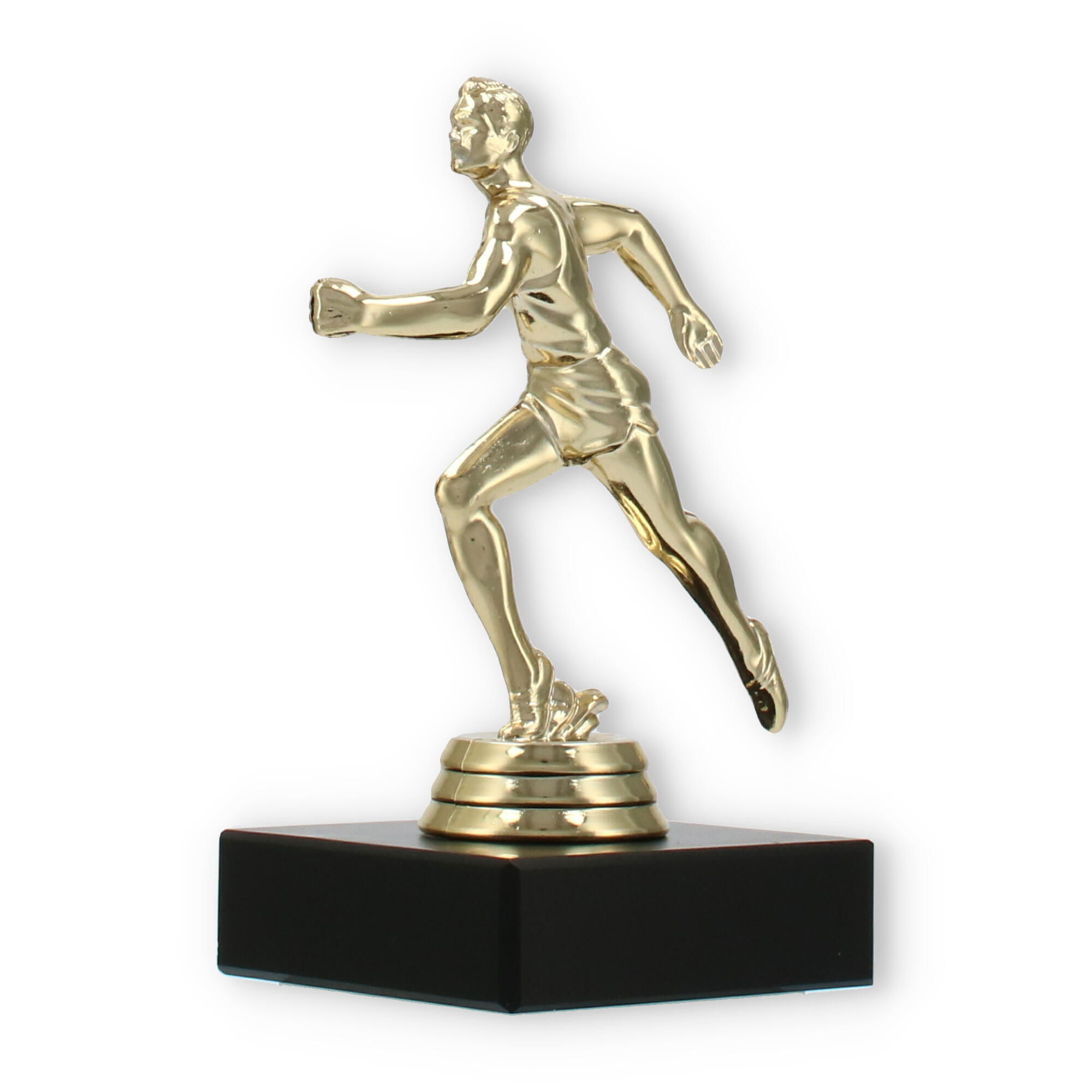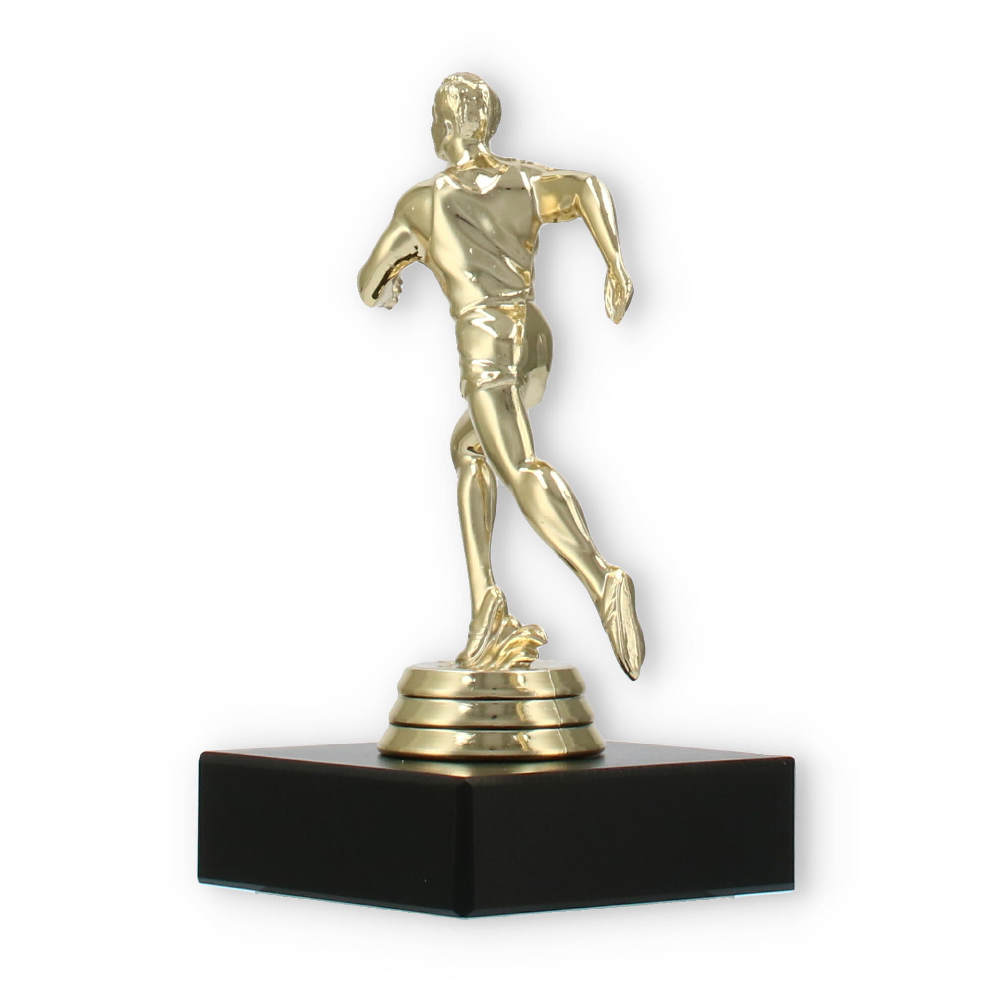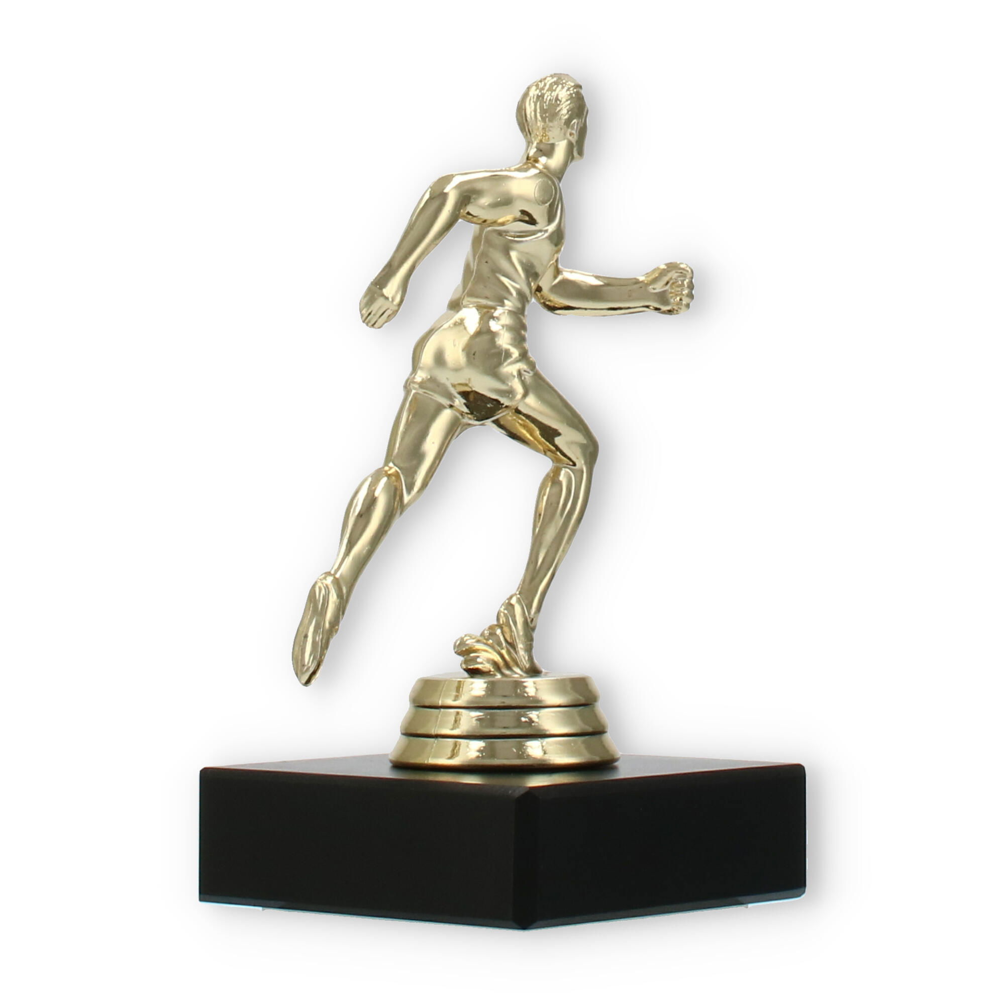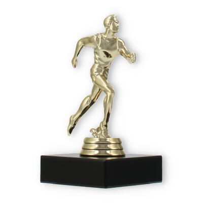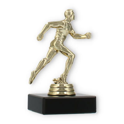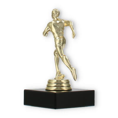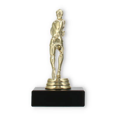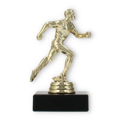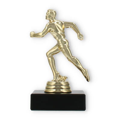 Der Pokal Läufer vereint dynamisches Design mit hochwertiger Verarbeitung und ist der perfekte Begleiter für sportliche Ehrungen. Die goldfarbene Kunststofffigur stellt einen Läufer in Bewegung dar und thront auf einem soliden, schwarzen Marmorsockel. Mit einer Höhe von 12 cm ist dieser Pokal ideal für verschiedenste Wettbewerbe geeignet.