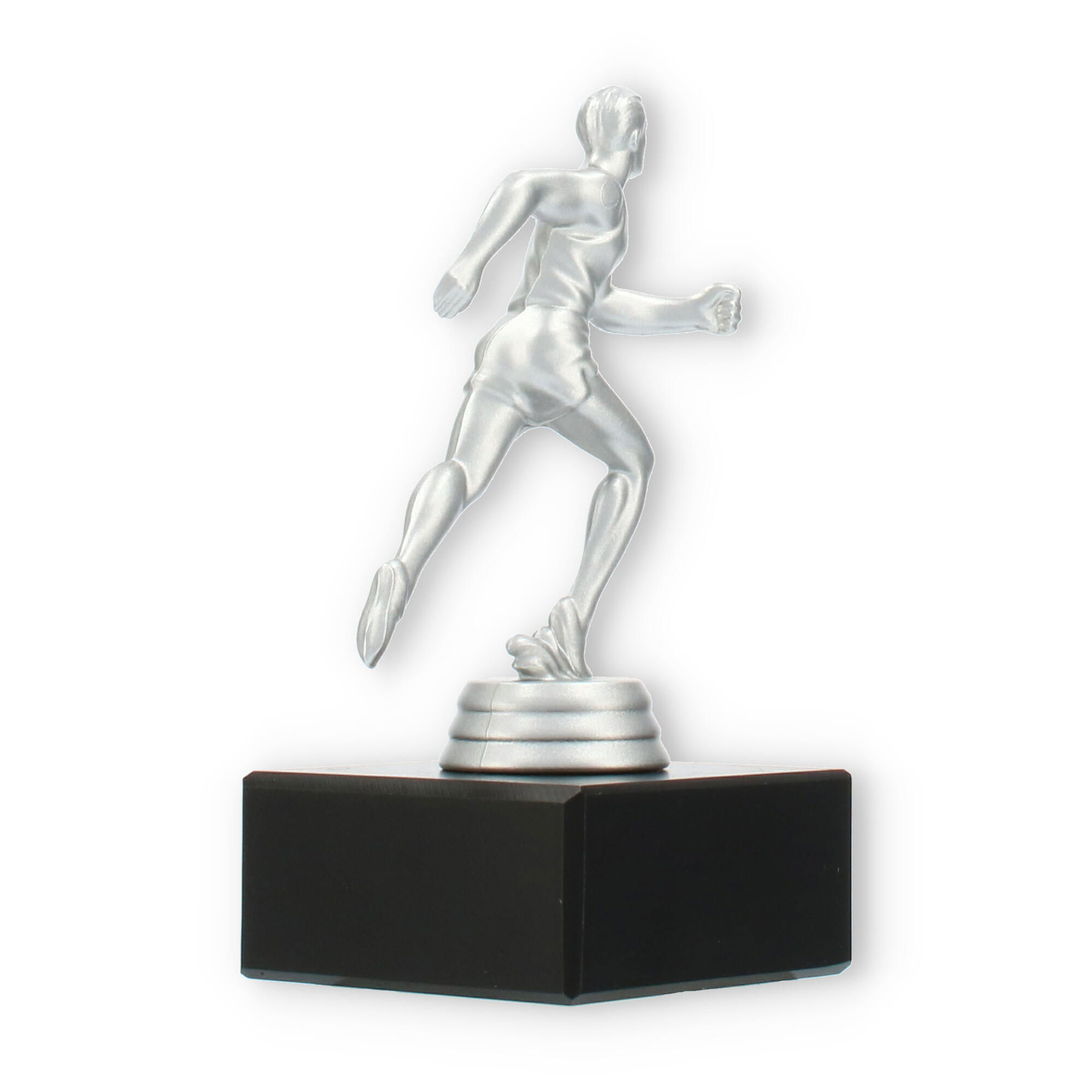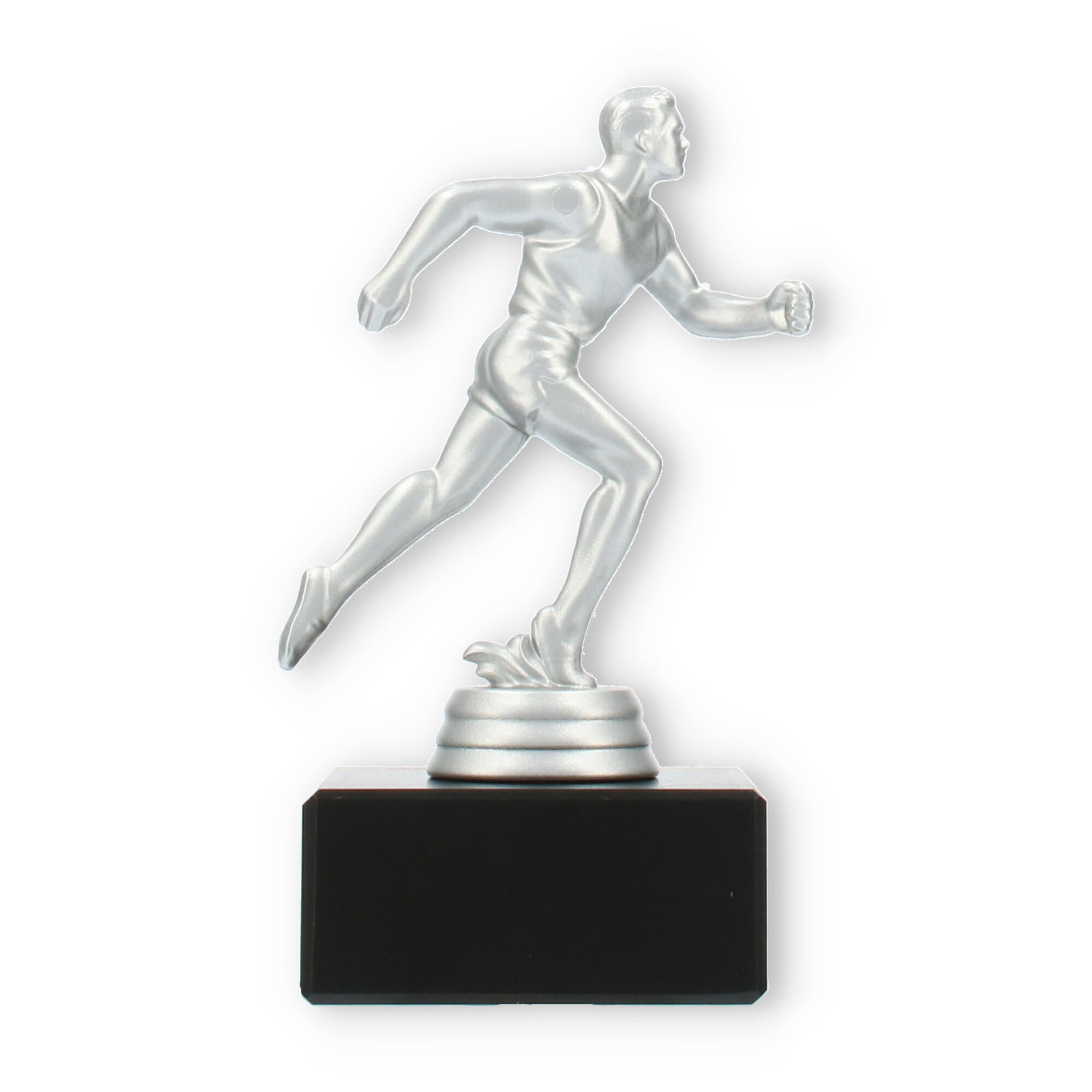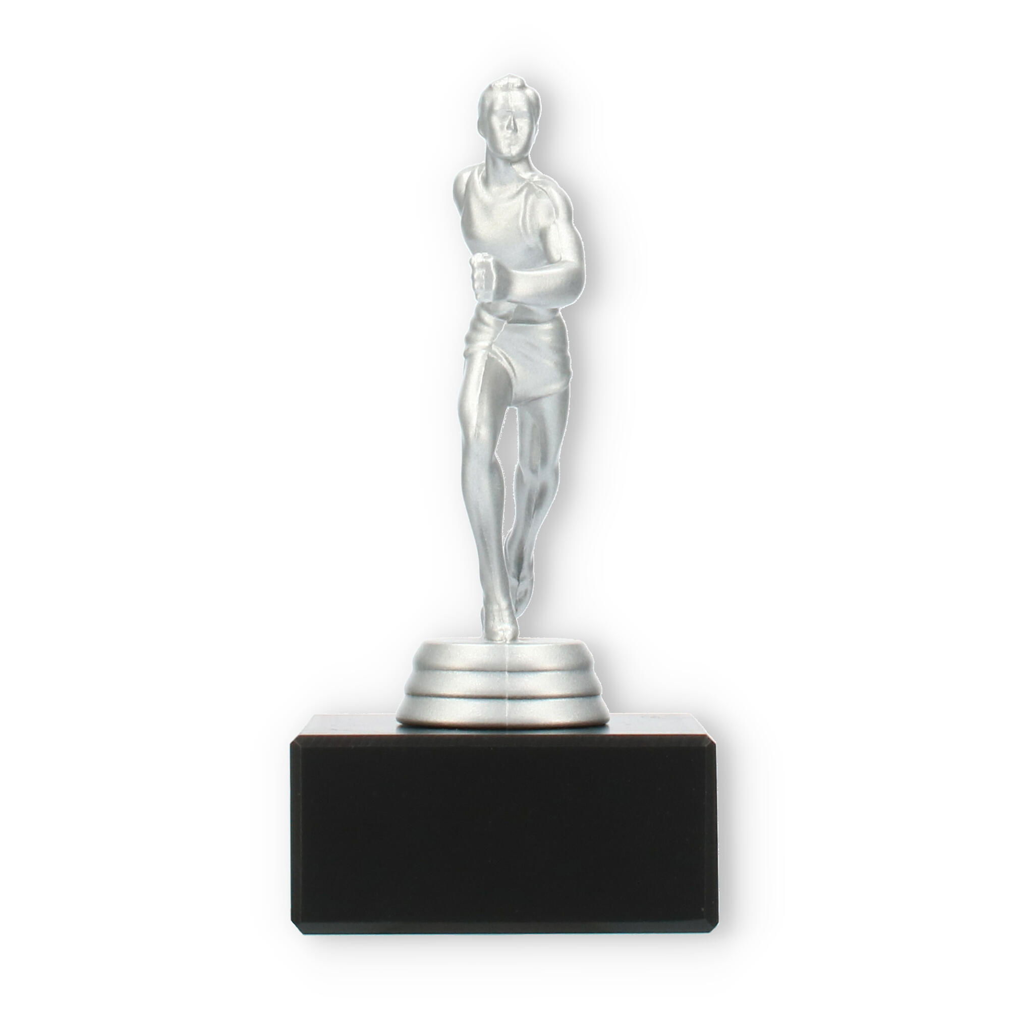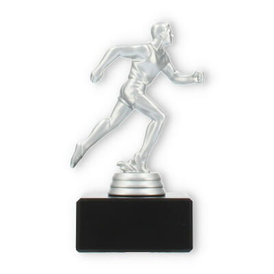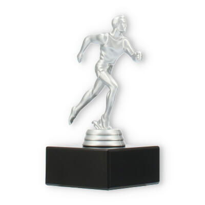 Die Pokalfigur Läufer besticht durch ihre edle Optik und die hochwertige Verarbeitung. Mit einer Größe von 13,0 cm ist sie der ideale Begleiter für Wettkämpfe und sportliche Veranstaltungen, besonders in der Leichtathletik. Die silbermetallic beschichtete Kunststofffigur stellt einen dynamischen Läufer in bewegter Pose dar, der auf einem stabilen, schwarzen Marmorsockel befestigt ist.