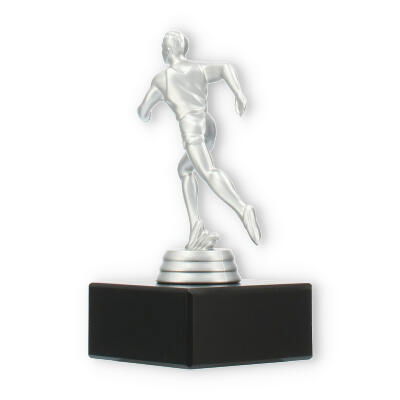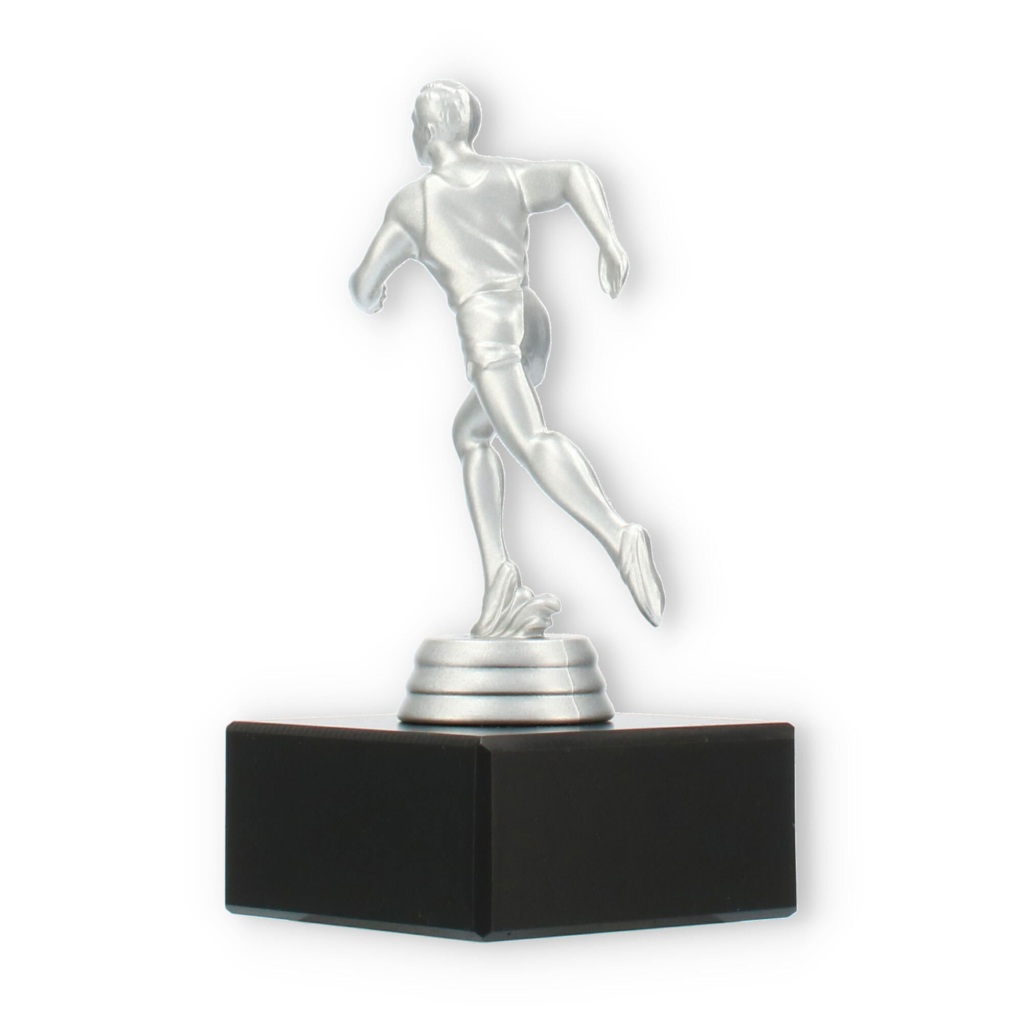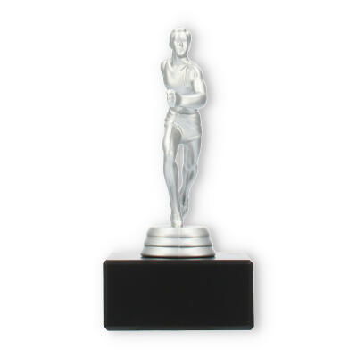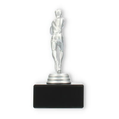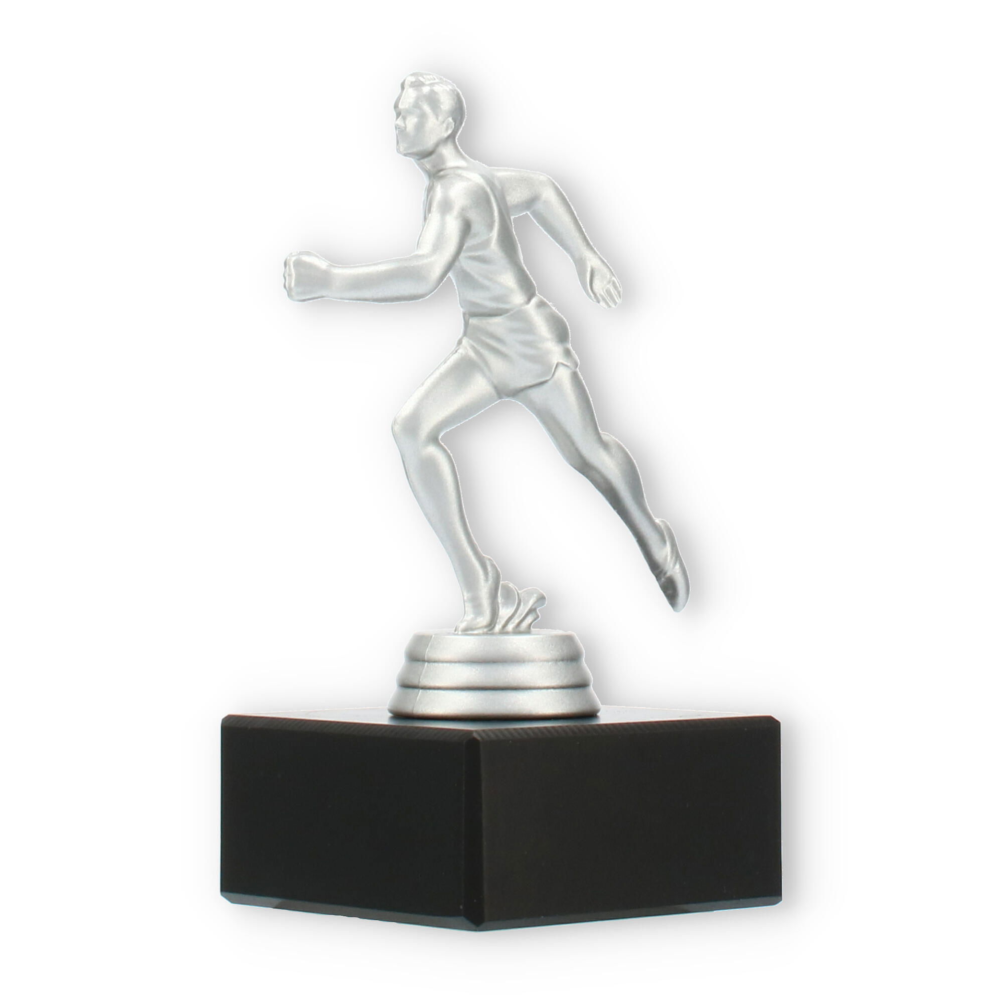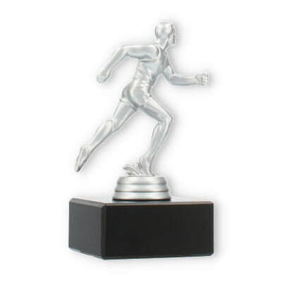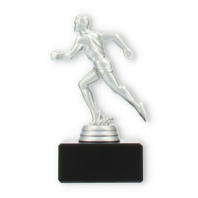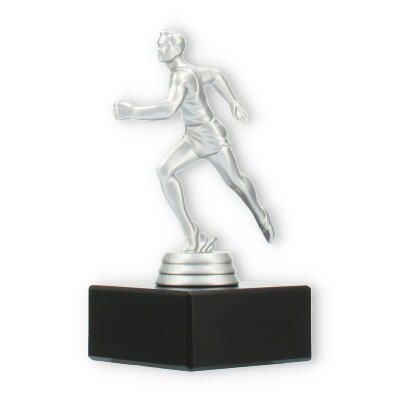 Die Pokalfigur Läufer besticht durch ihre edle Optik und die hochwertige Verarbeitung. Mit einer Größe von 13,0 cm ist sie der ideale Begleiter für Wettkämpfe und sportliche Veranstaltungen, besonders in der Leichtathletik. Die silbermetallic beschichtete Kunststofffigur stellt einen dynamischen Läufer in bewegter Pose dar, der auf einem stabilen, schwarzen Marmorsockel befestigt ist.