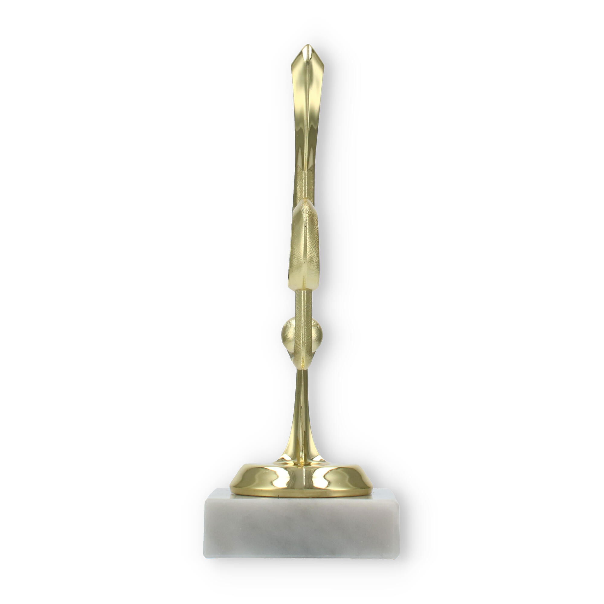 De stevige witte marmeren sokkel vormt de perfecte basis voor het figuur, en dankzij zijn polijste finish geeft het een tijdloze elegantie aan de trofee. Plaats het aanwezige gravureschild om een unieke boodschap over te brengen, waardoor deze prestatie moment wordt vereeuwigd.