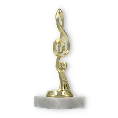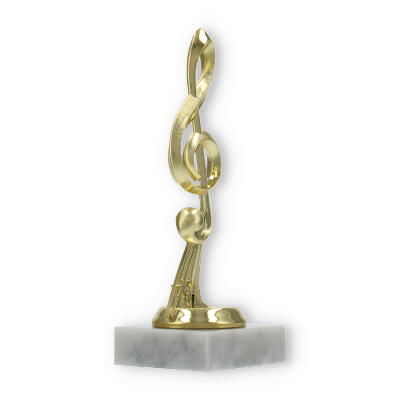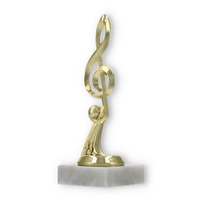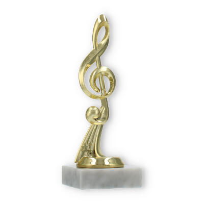De Clef-trofee is een betoverend accent bij elke prijsuitreiking. Deze 17,7 cm hoge onderscheiding, met een gouden kunststof figuur op marmer, biedt ruimte voor een persoonlijke gravure. Vier muzikale hoogtepunten met deze onvergetelijke trofee.