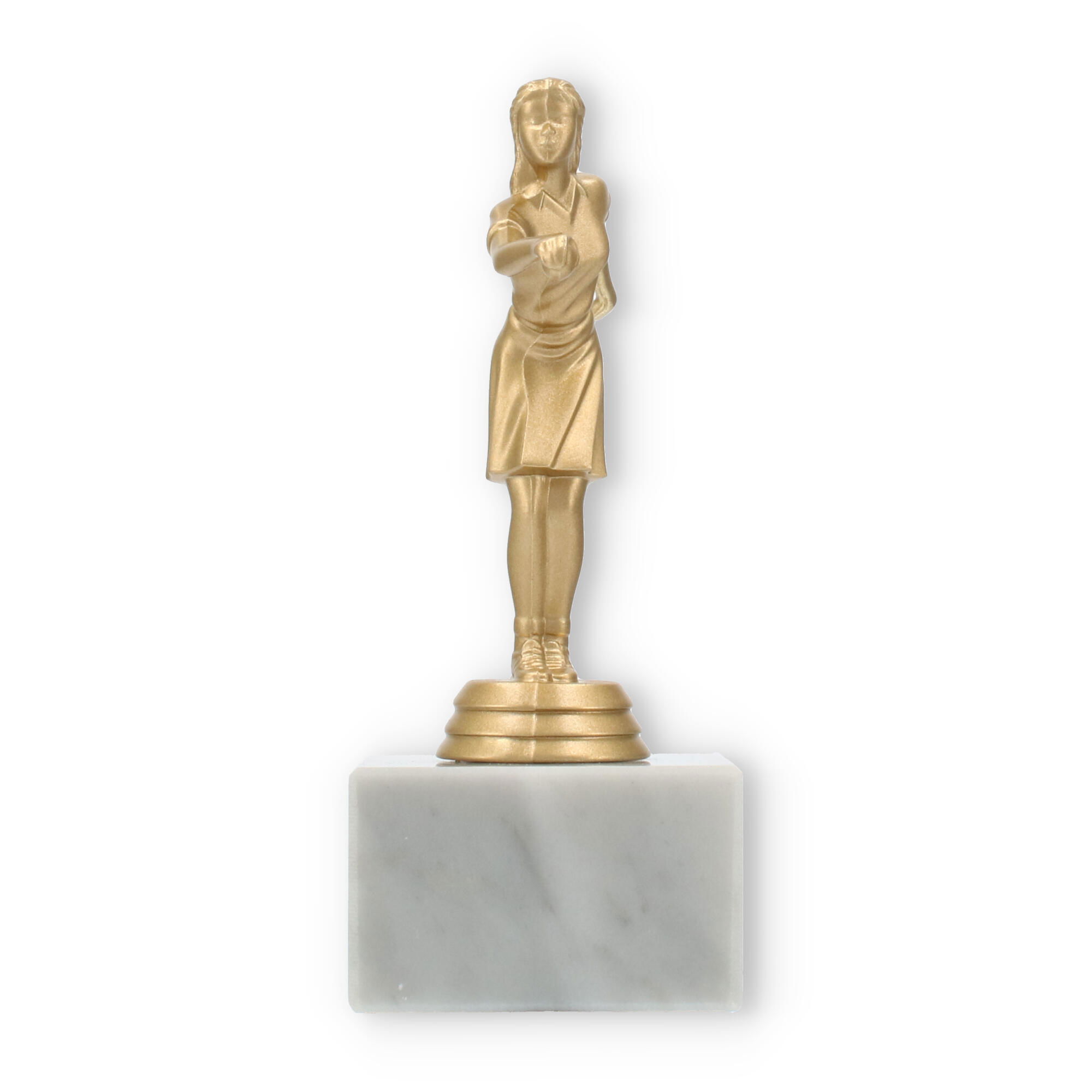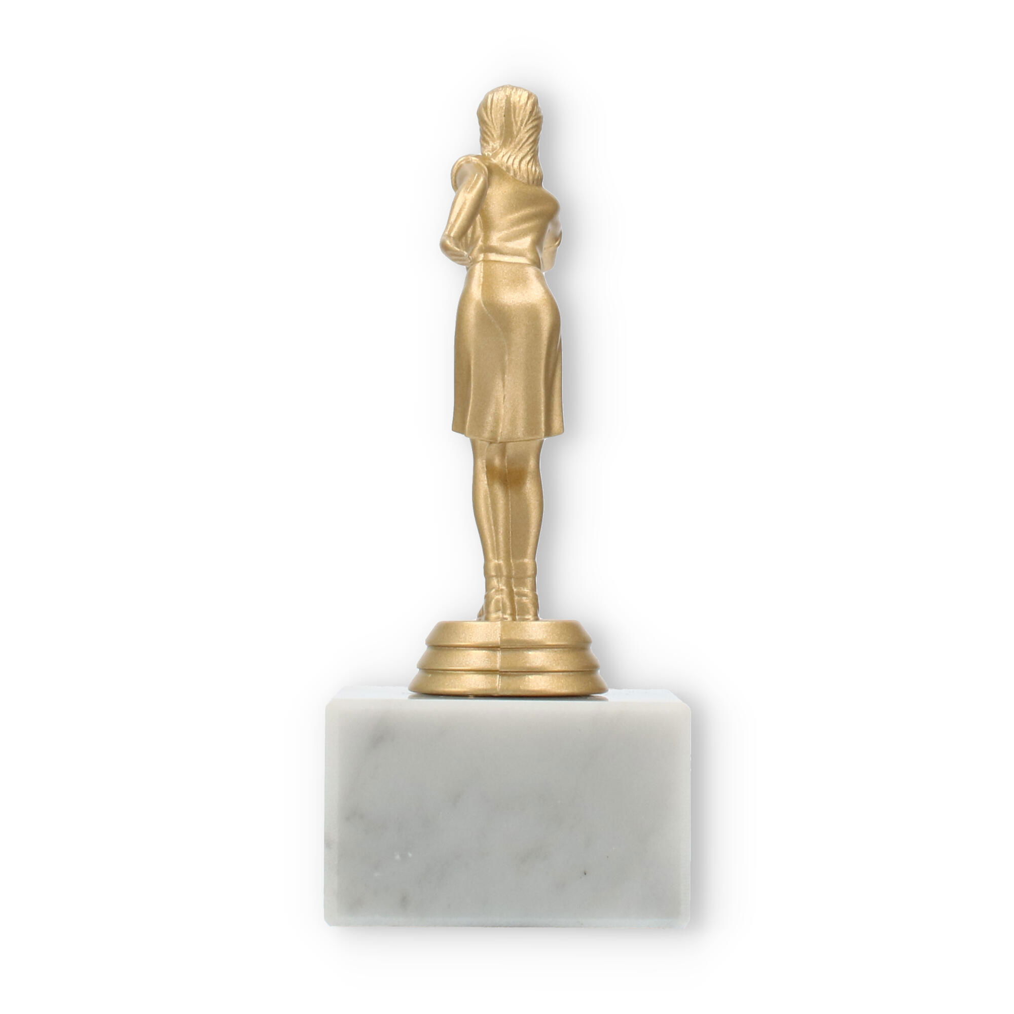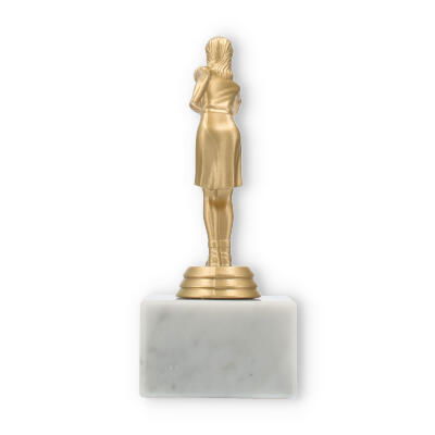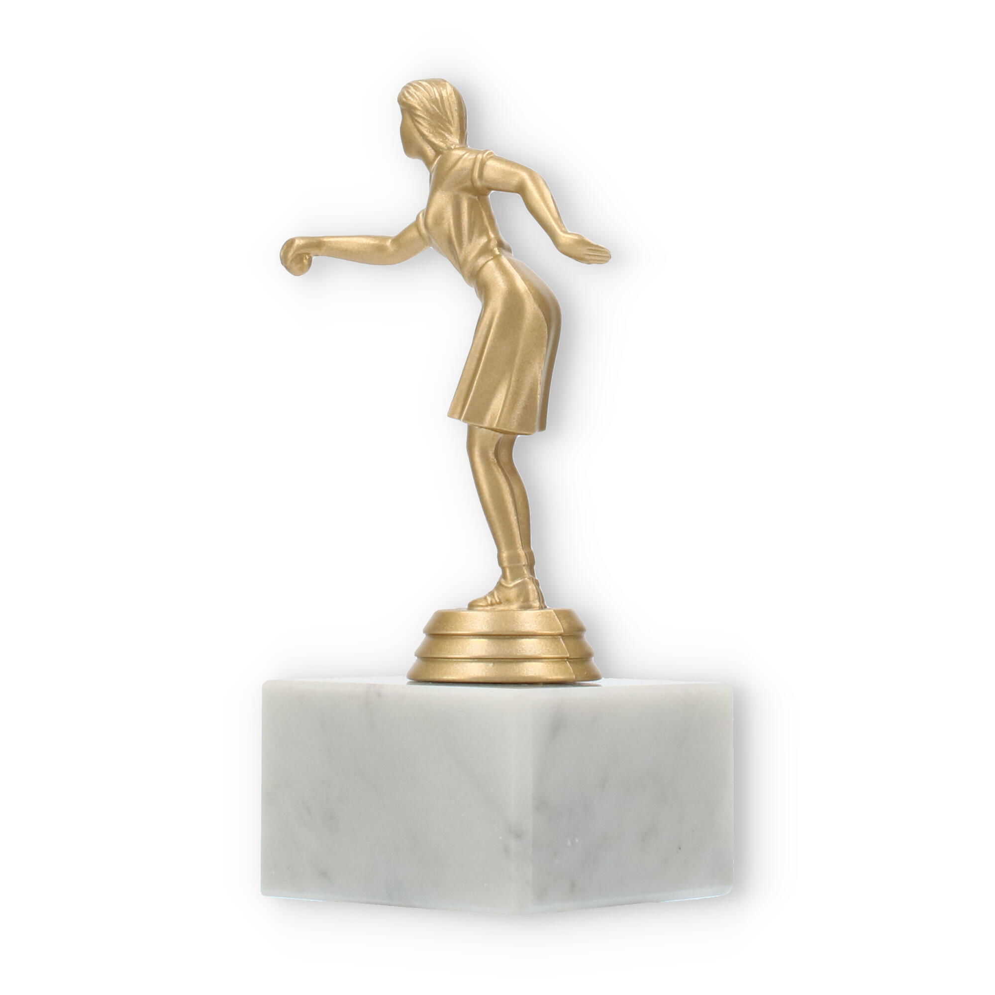 La figurine de trophée Pétanque Dames de 15,5 cm, avec sa finition dorée et son socle en marbre blanc, idéalement conçue pour honorer les championnes de pétanque. Personnalisable avec une gravure, elle immortalise les performances exceptionnelles.