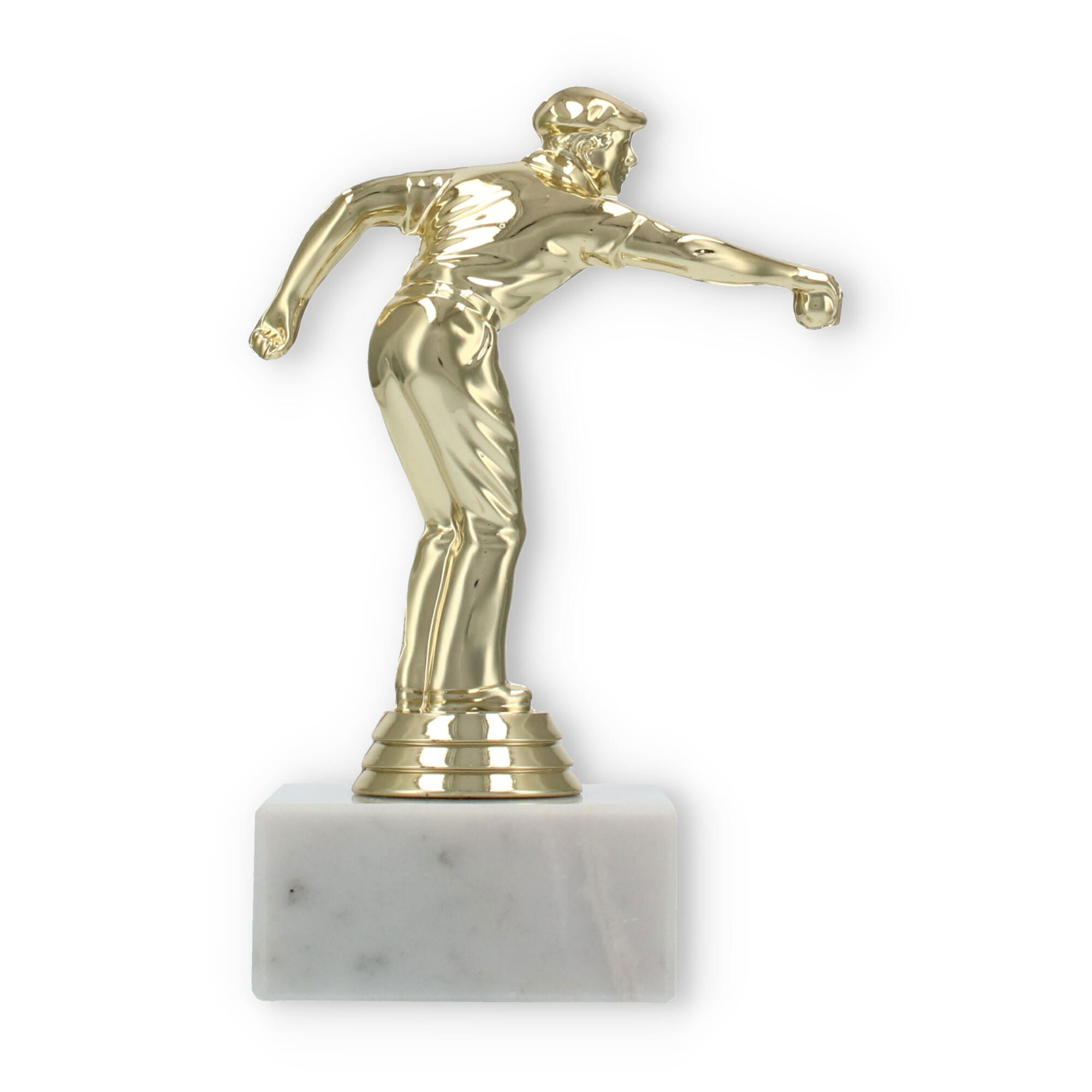O Troféu Petanque Homem é a escolha ideal para enaltecer os melhores desempenhos em competições de Petanque. A figura dourada representa a vitória de forma elegante, enquanto a base de mármore branco destaca a peça com sofisticação. Ao segurar este troféu, o vencedor sente-se verdadeiramente honrado, como se estivesse a levar para casa um pouco do prestígio daquela competição.