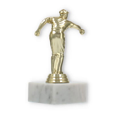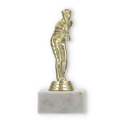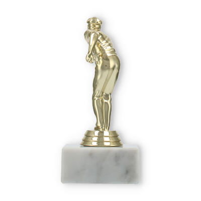 Cada troféu é rigorosamente inspecionado para garantir que apenas a mais alta qualidade é proporcionada. A combinação da figura de plástico com acabamento dourado e a base sólida de mármore branco faz deste troféu um verdadeiro destaque em qualquer cerimónia.