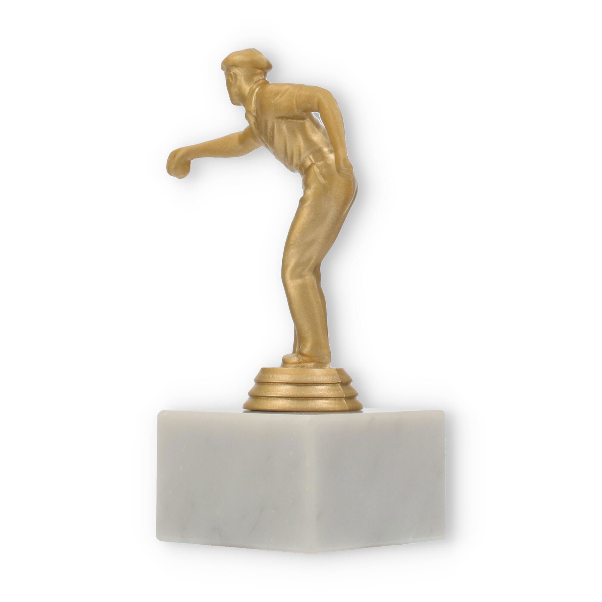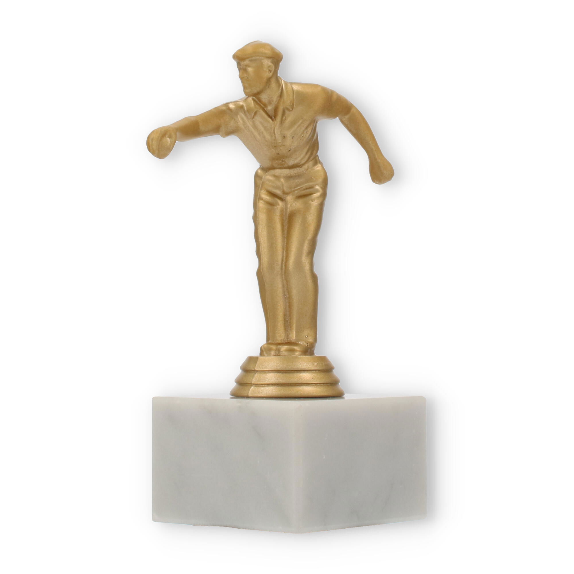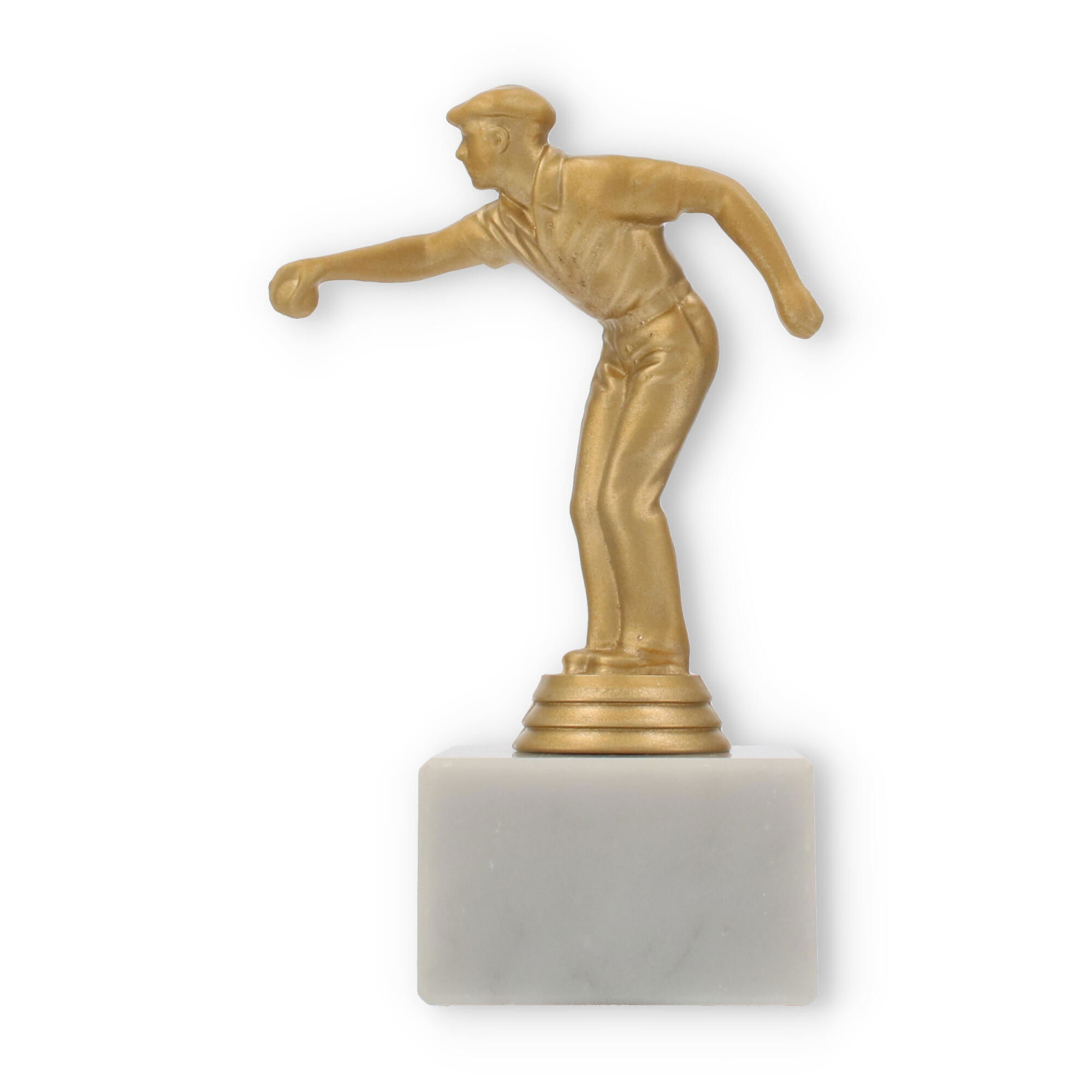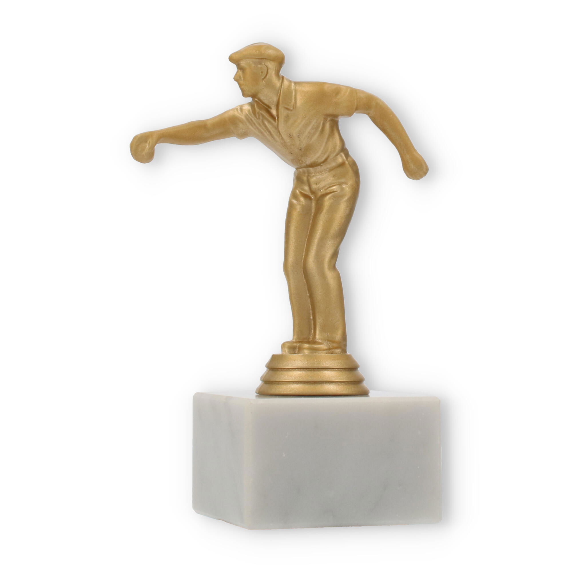 The Trophy Petanque Men is a distinctive award that captures the excitement of any Petanque tournament. Designed with a gold-colored plastic figure in a dynamic throwing pose and mounted on a sleek white marble base, it embodies both stability and elegance.