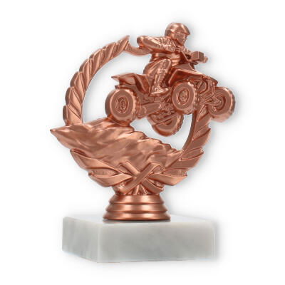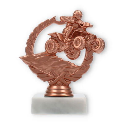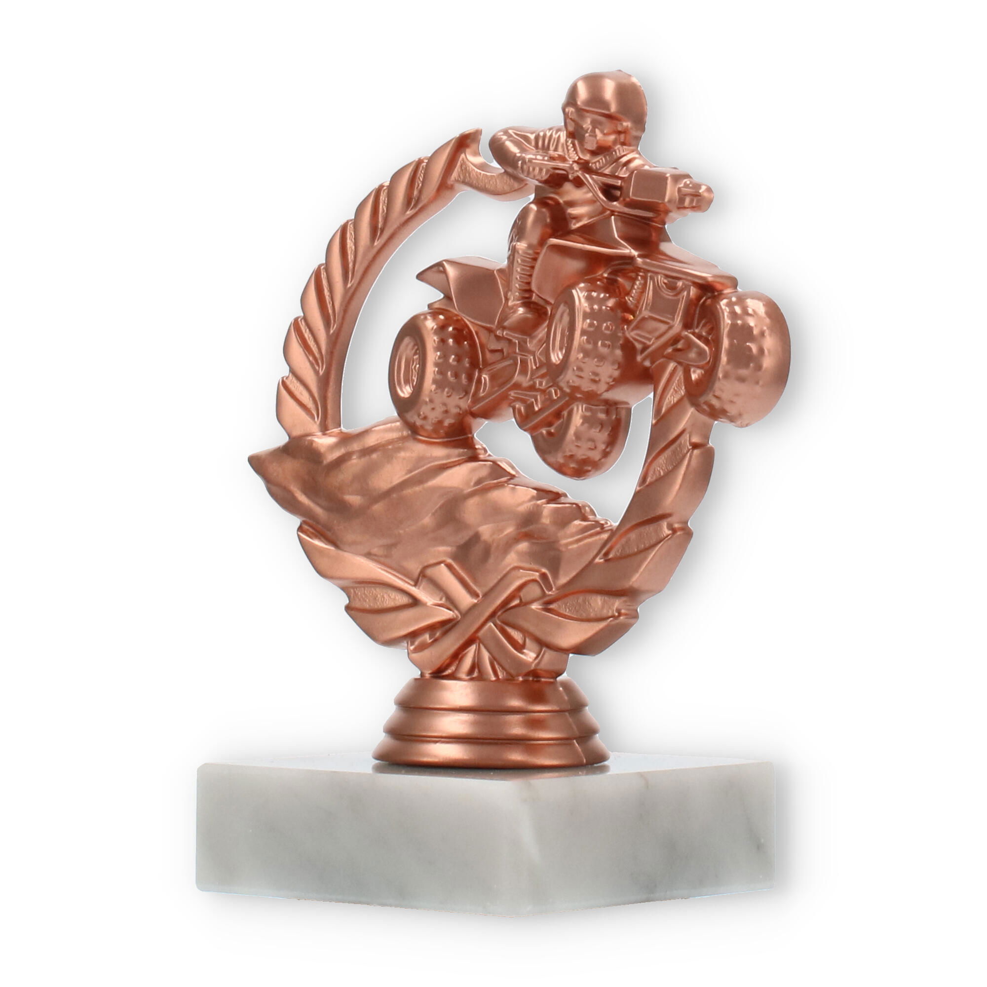 Der Pokal Quad im Kranz beeindruckt durch seine bronzefarbene Figur eines Quad-Fahrers und einen eleganten weißen Marmor-Sockel. Mit der Option einer individuellen Gravur ist dieser 12,6 cm große Pokal eine ausgezeichnete Wahl für besondere Motorsport-Ehrungen.