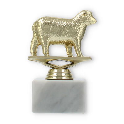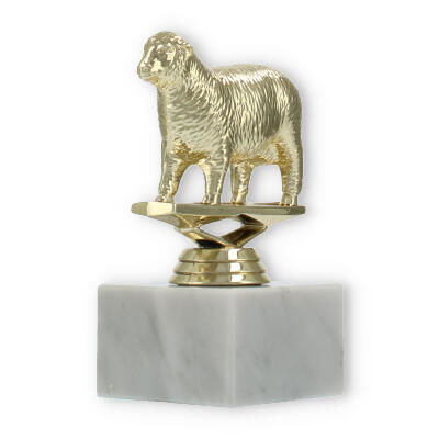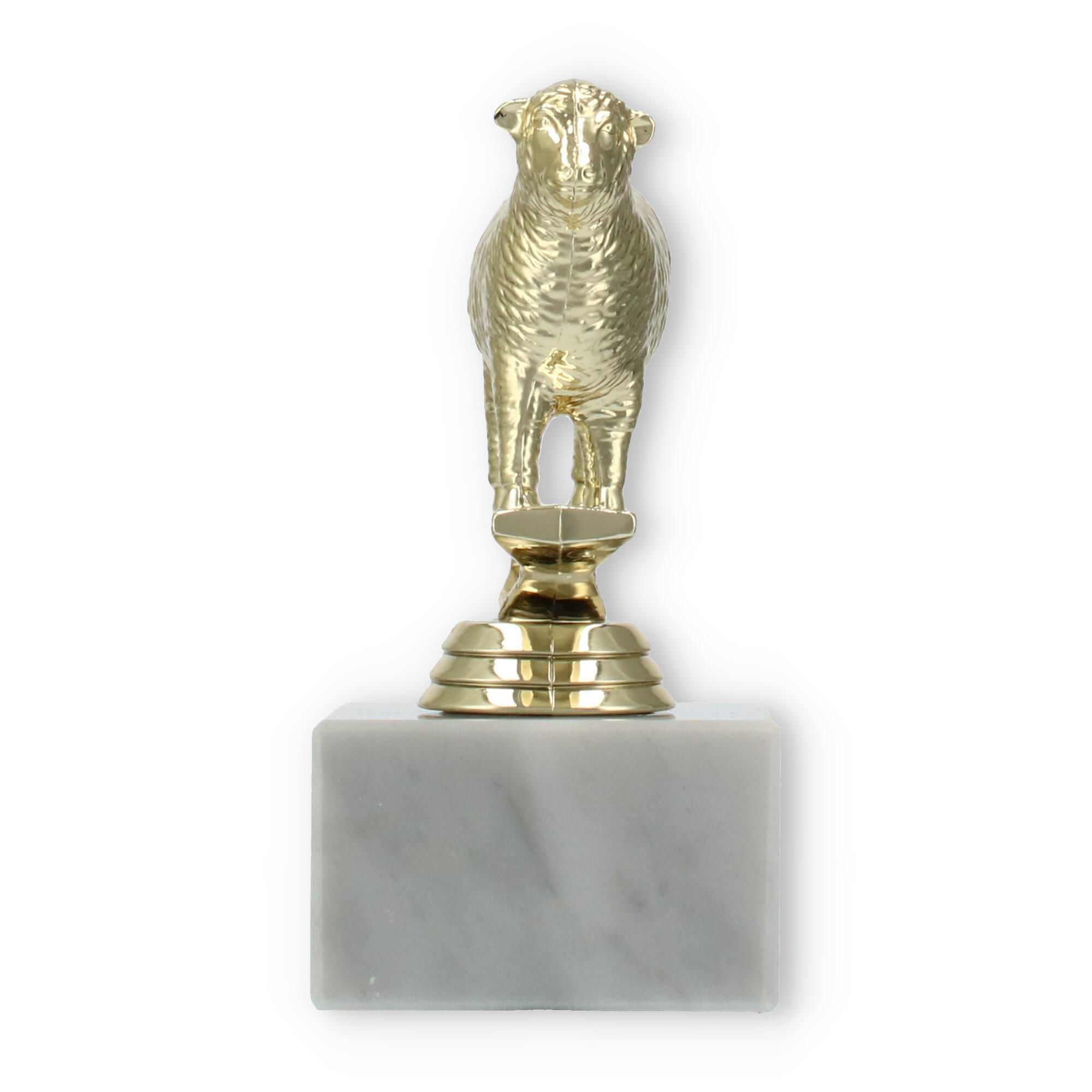 Die Kombination aus edlem Design und hoher Verarbeitungsqualität wird durch den stabilen Marmorsockel abgerundet, der jedem Pokal nicht nur Halt, sondern auch zusätzliche Eleganz verleiht. Die goldfarbene Schafsfigur ist detailreich gestaltet und auf einem Verbindungselement befestigt, das dem gesamten Objekt eine harmonische Einheit verleiht.