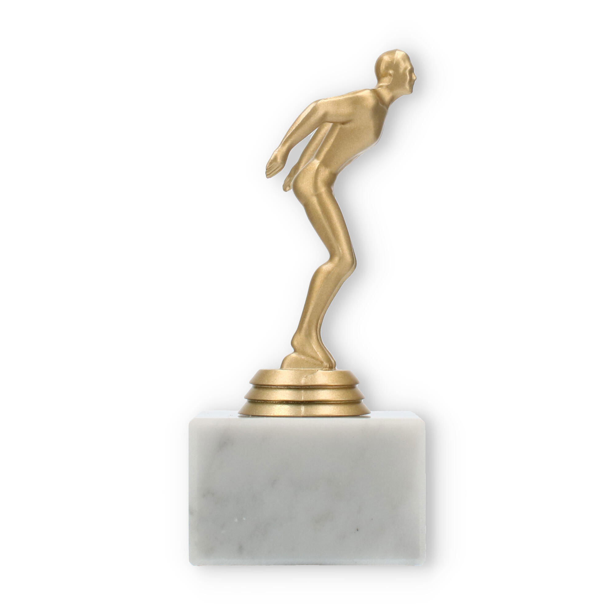 Unsere goldmetallic Pokalfigur Schwimmer wurde entworfen, um bei jedem Schwimmwettbewerb Akzente zu setzen. Die figurative Darstellung eines Schwimmers, der im entscheidenden Moment zum Sprung ansetzt, vermittelt Dynamik und Anmut. Mit dieser siegreichen Pose repräsentiert die Figur den Gipfel sportlicher Leistungen.
