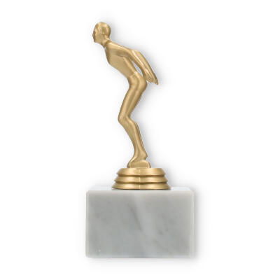 Der Pokal Schwimmer hebt jeden Wettbewerb hervor. Mit einer goldmetallic Figur und einem weißen Marmorsockel kombiniert die Trophäe edle Materialien und exklusives Design. Eine individuelle Gravur verleiht der Auszeichnung eine persönliche Note und lässt diesen Moment unvergesslich werden.