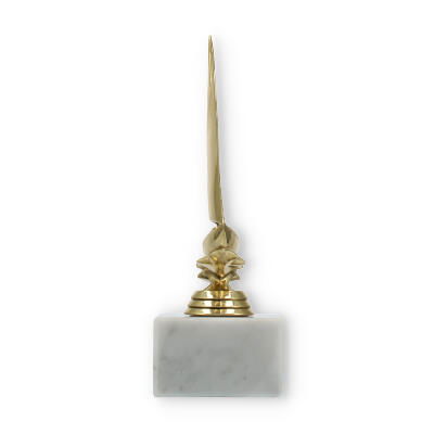 Die 19 cm große Pokalfigur bringt deinen Gewinnern den Stolz und die Anerkennung, die sie verdienen. Das Gewicht von 458 g sorgt dafür, dass die Figur gut in der Hand liegt und eine spürbare Qualität vermittelt. Der Sockel aus weißem Marmor mit seinen natürlichen Maserungen verleiht der Trophäe eine edle und zeitlose Optik.