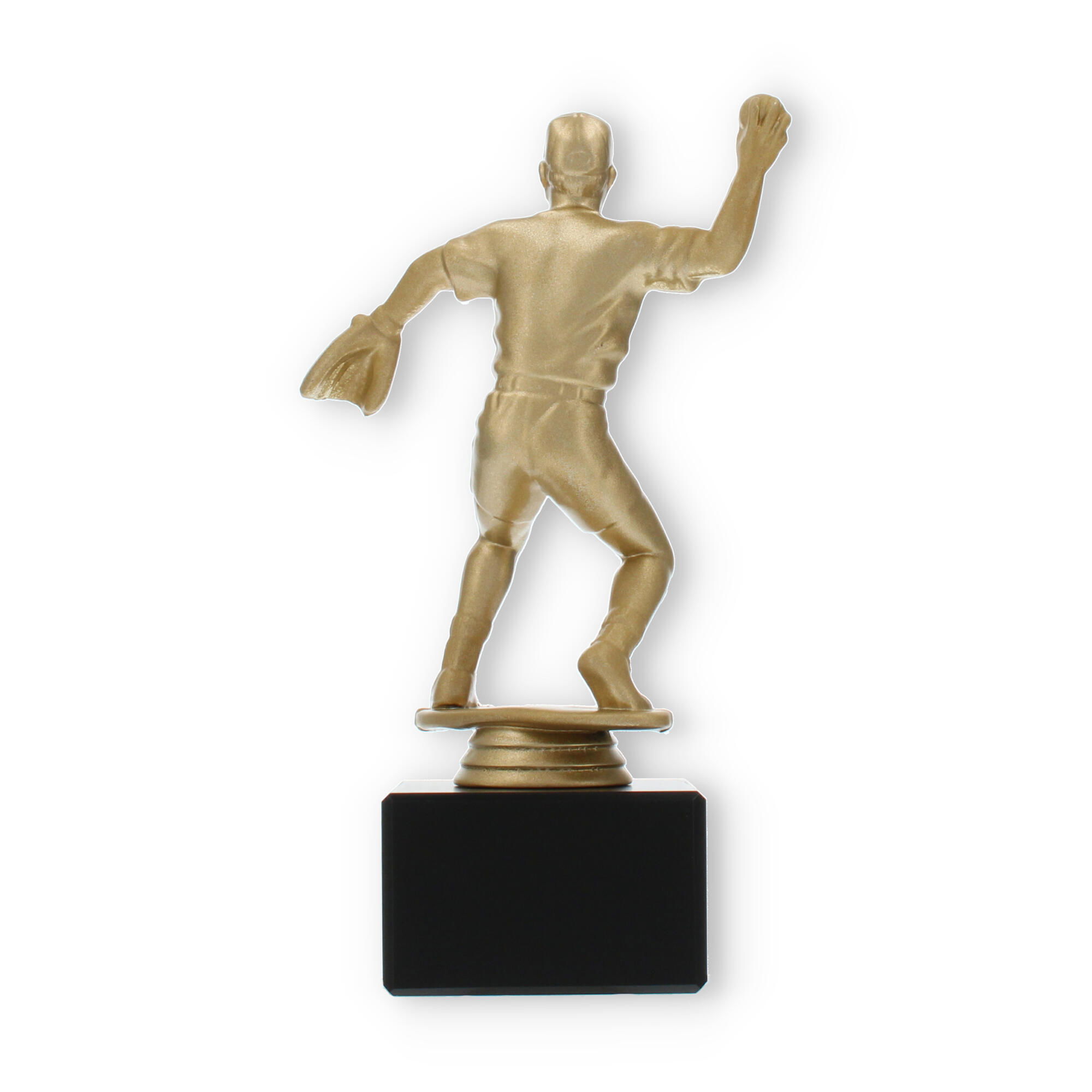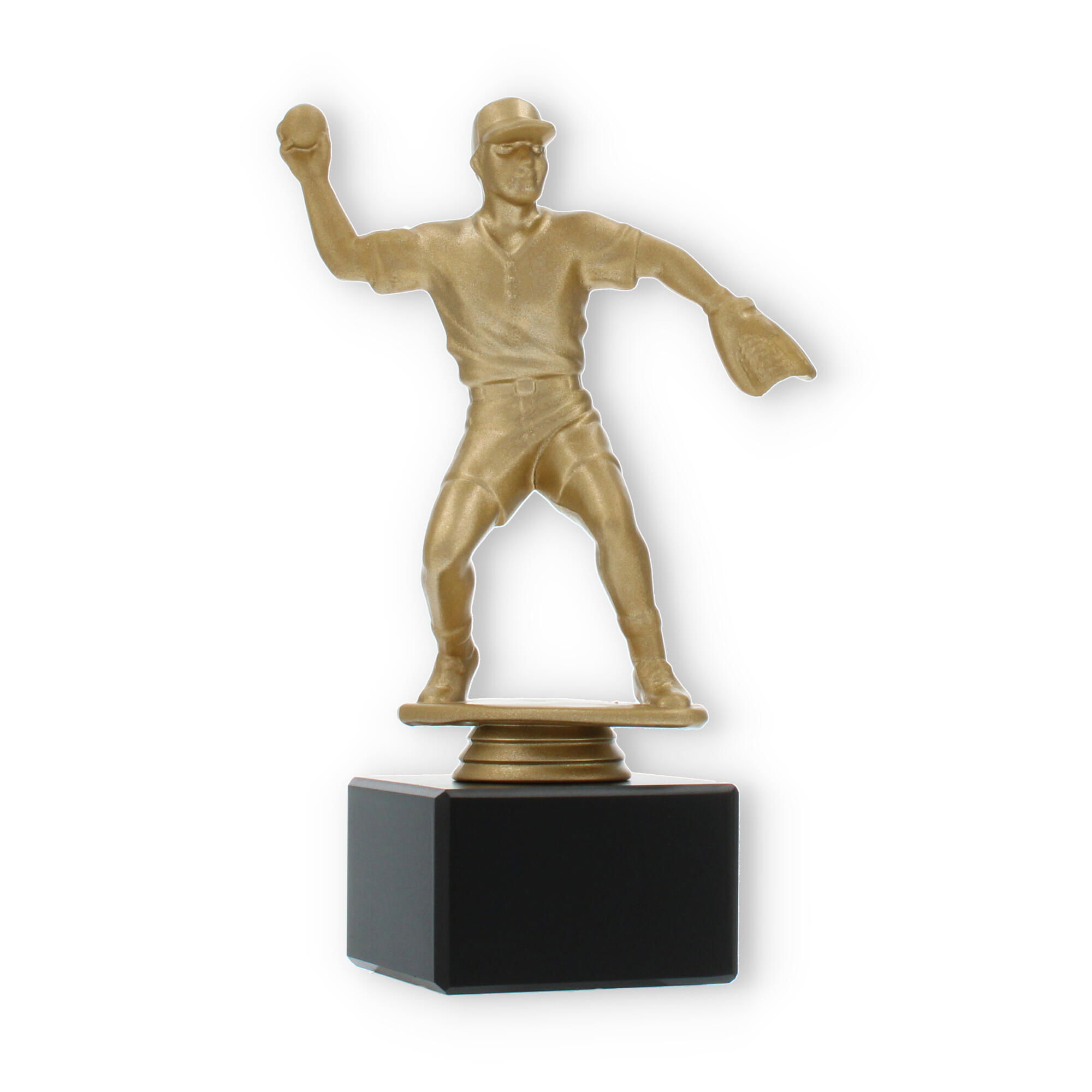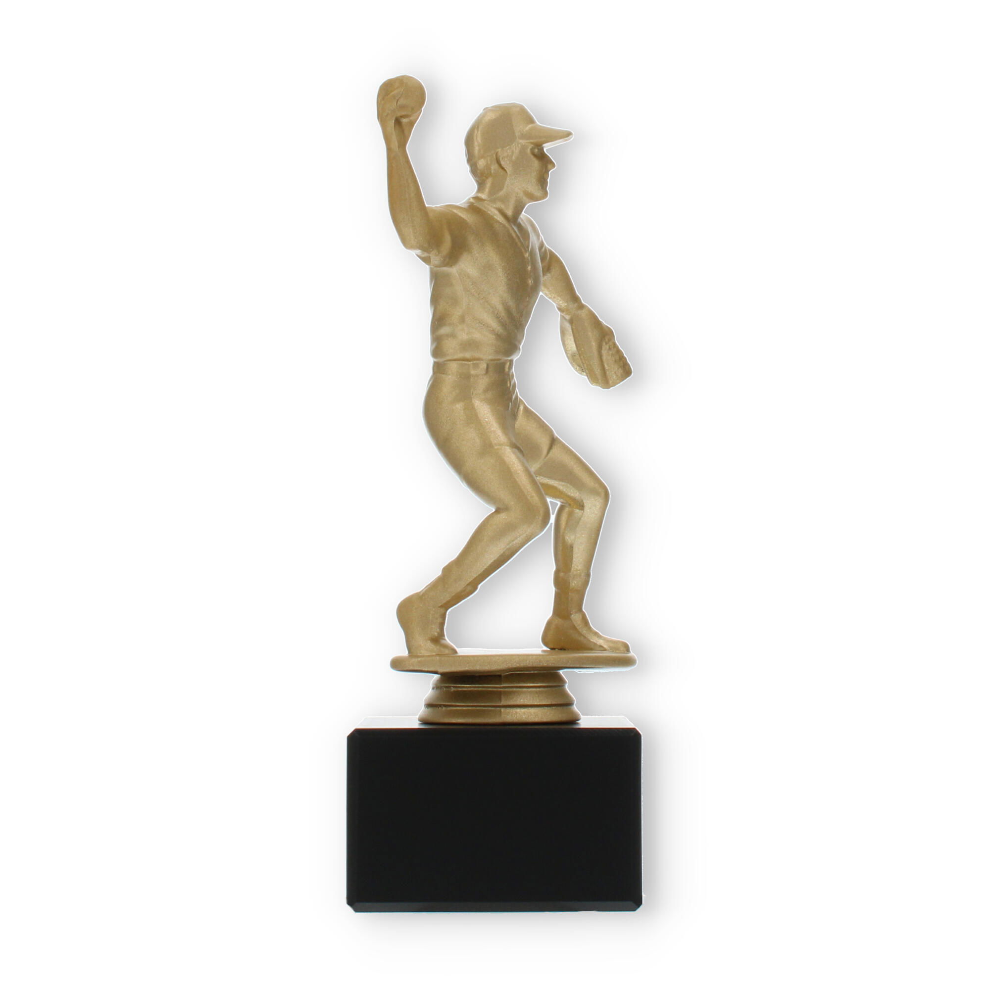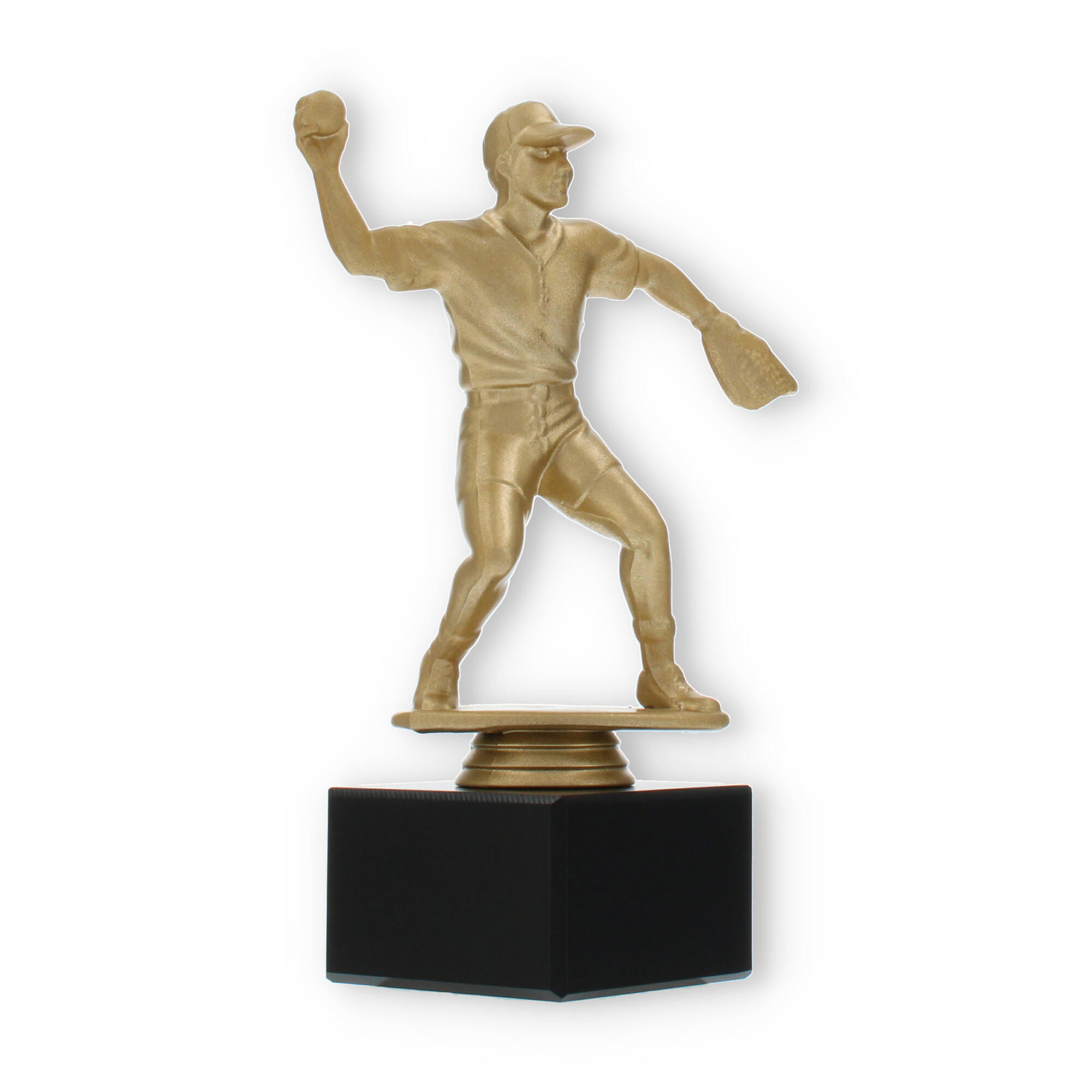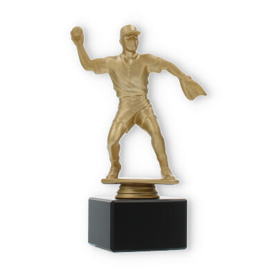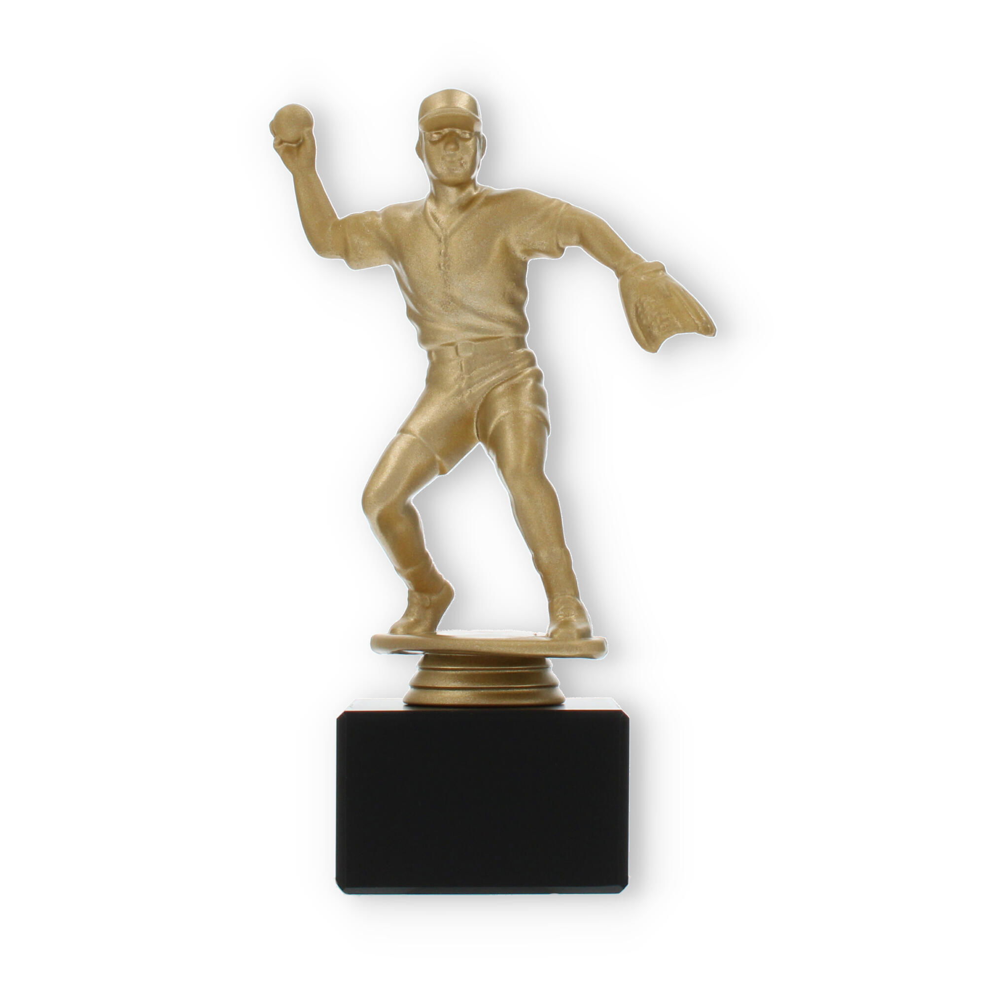 Die Pokalfigur Softballspieler, 18,3 cm hoch, ist ideal für sportliche Feierlichkeiten. Anpassbar mit individueller Gravur, bietet sie eine würdige Ehrung für deine Events. Der schwarze Marmorsockel und die goldmetallic Figur schaffen trotz solide verarbeiteter Materialien eine beeindruckende Präsentation.