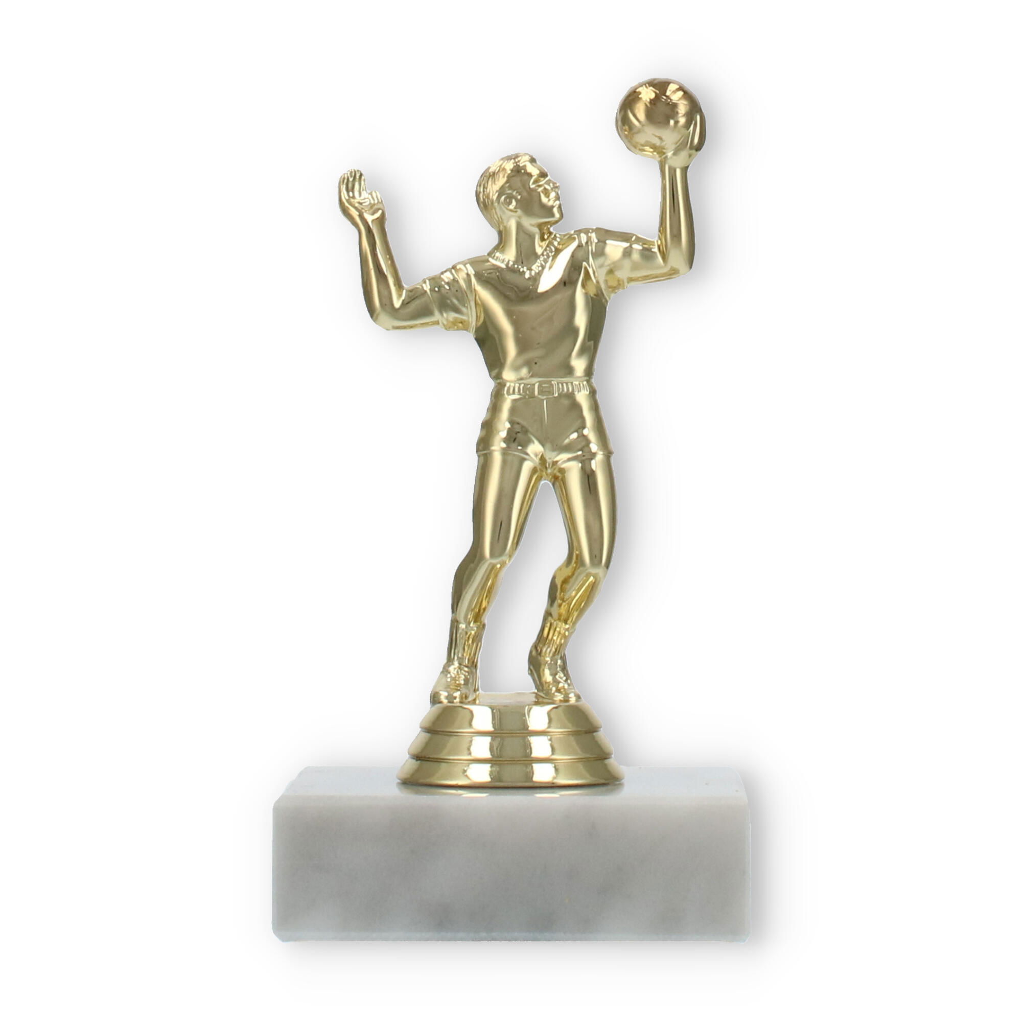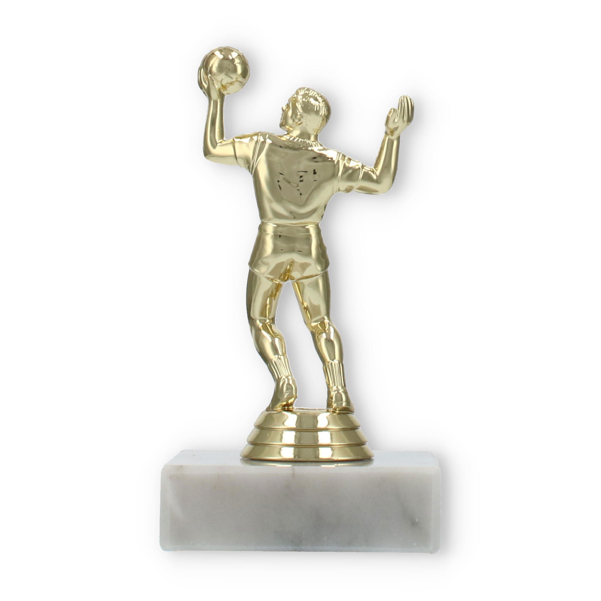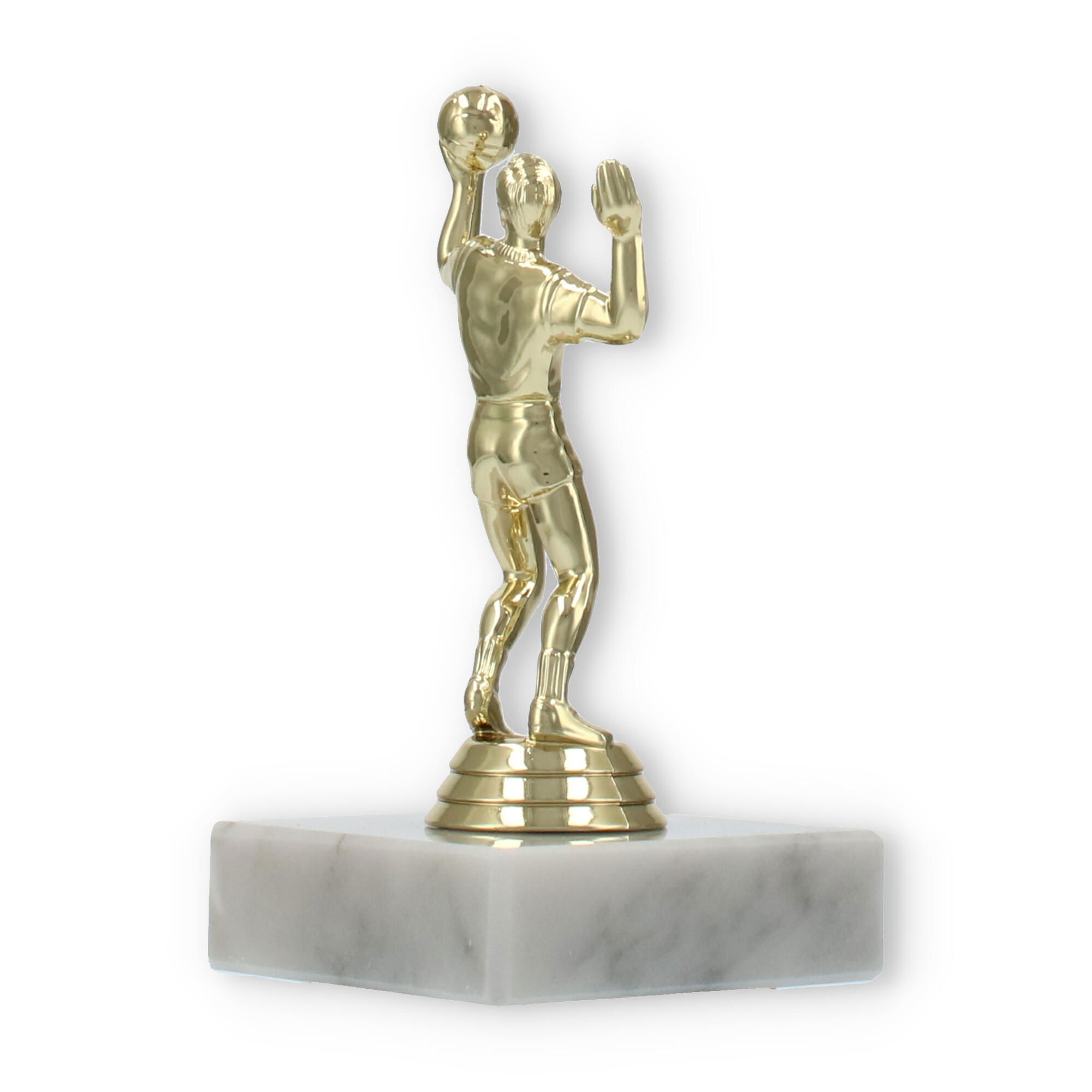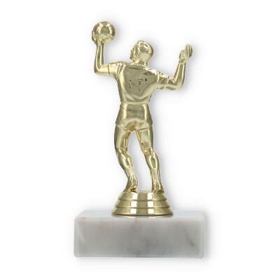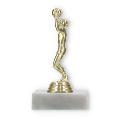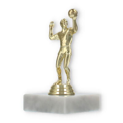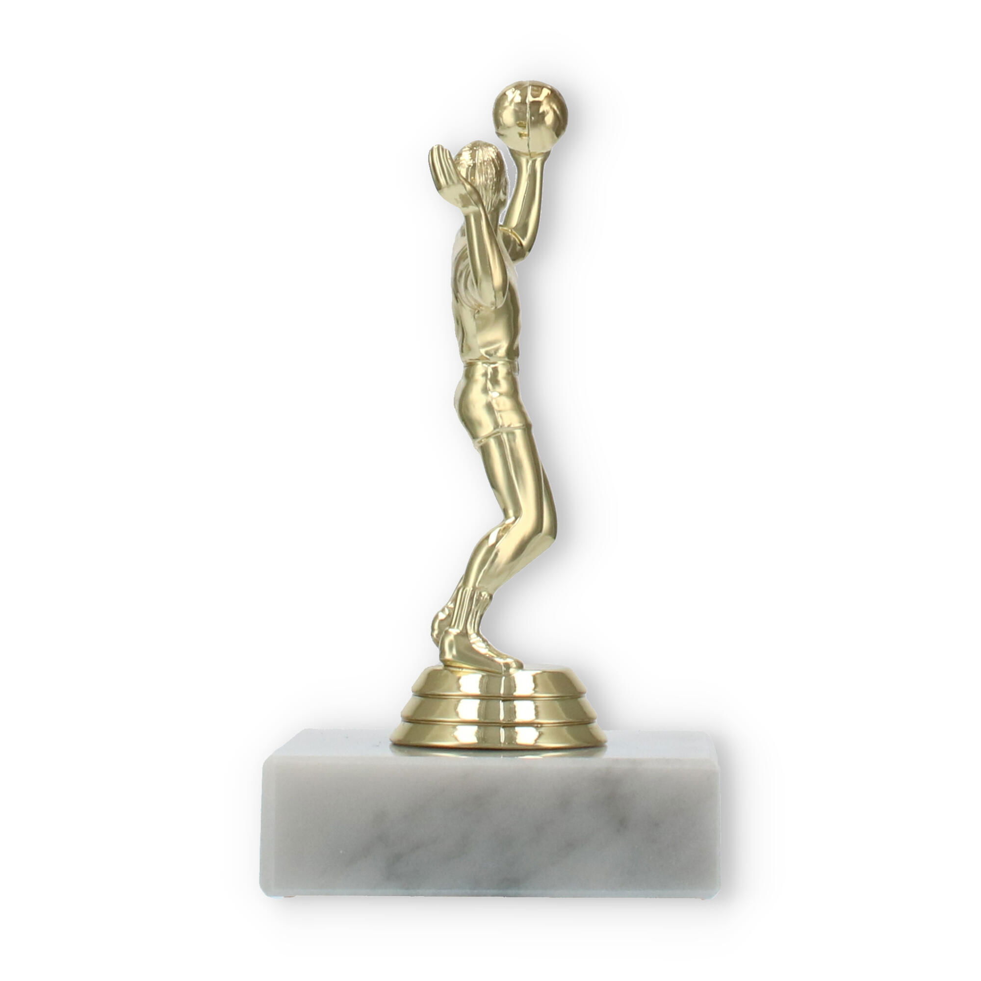 Pokalen med en højde på 11,9 cm kombinerer både elegance og funktion. Basen, der er fremstillet af hvid marmor, udstråler tidløs klasse og skaber et solidt fundament for den guldfarvede spillerfigur. Den marmorhvide base står i smuk kontrast til guldtonen, som giver et indtryk af prestige.