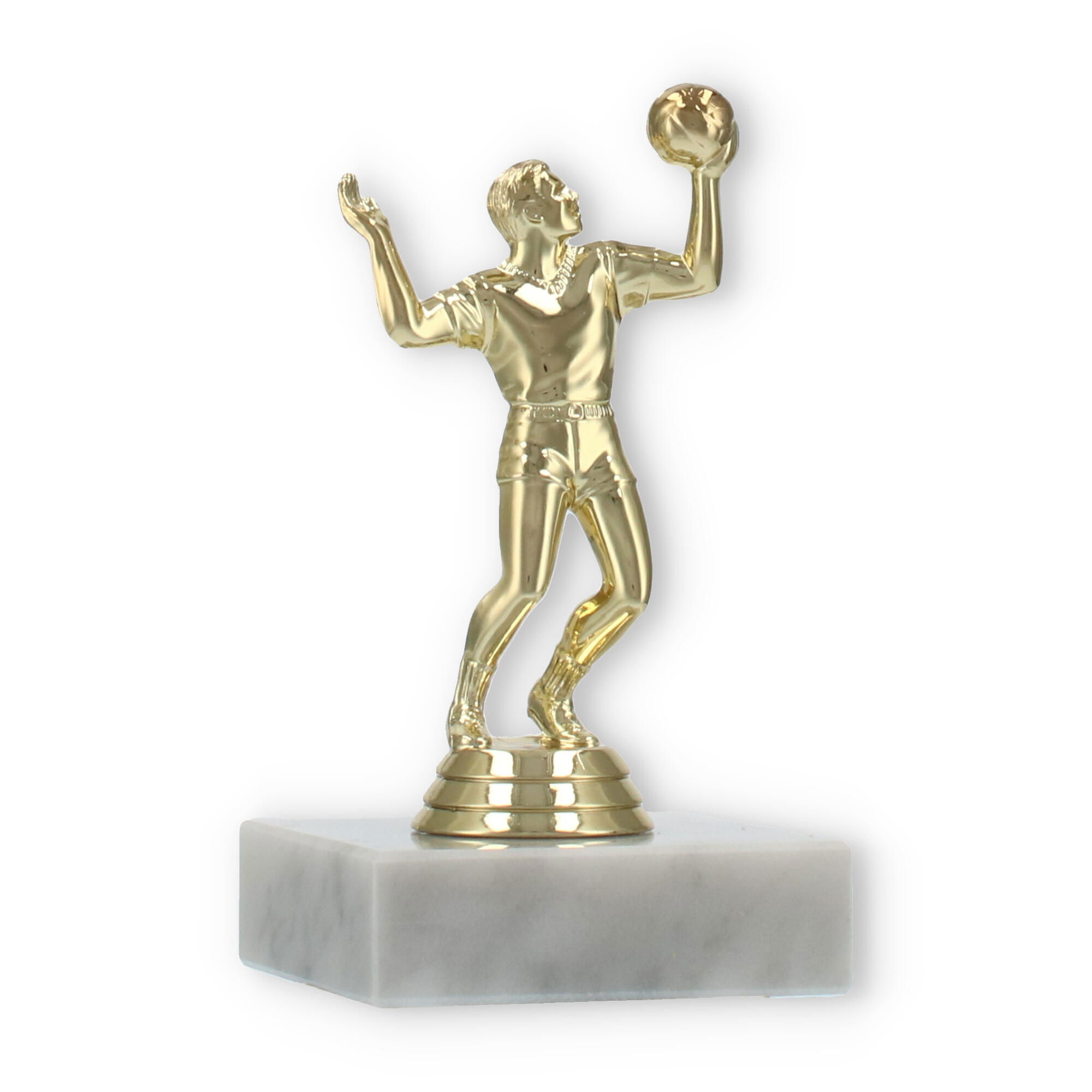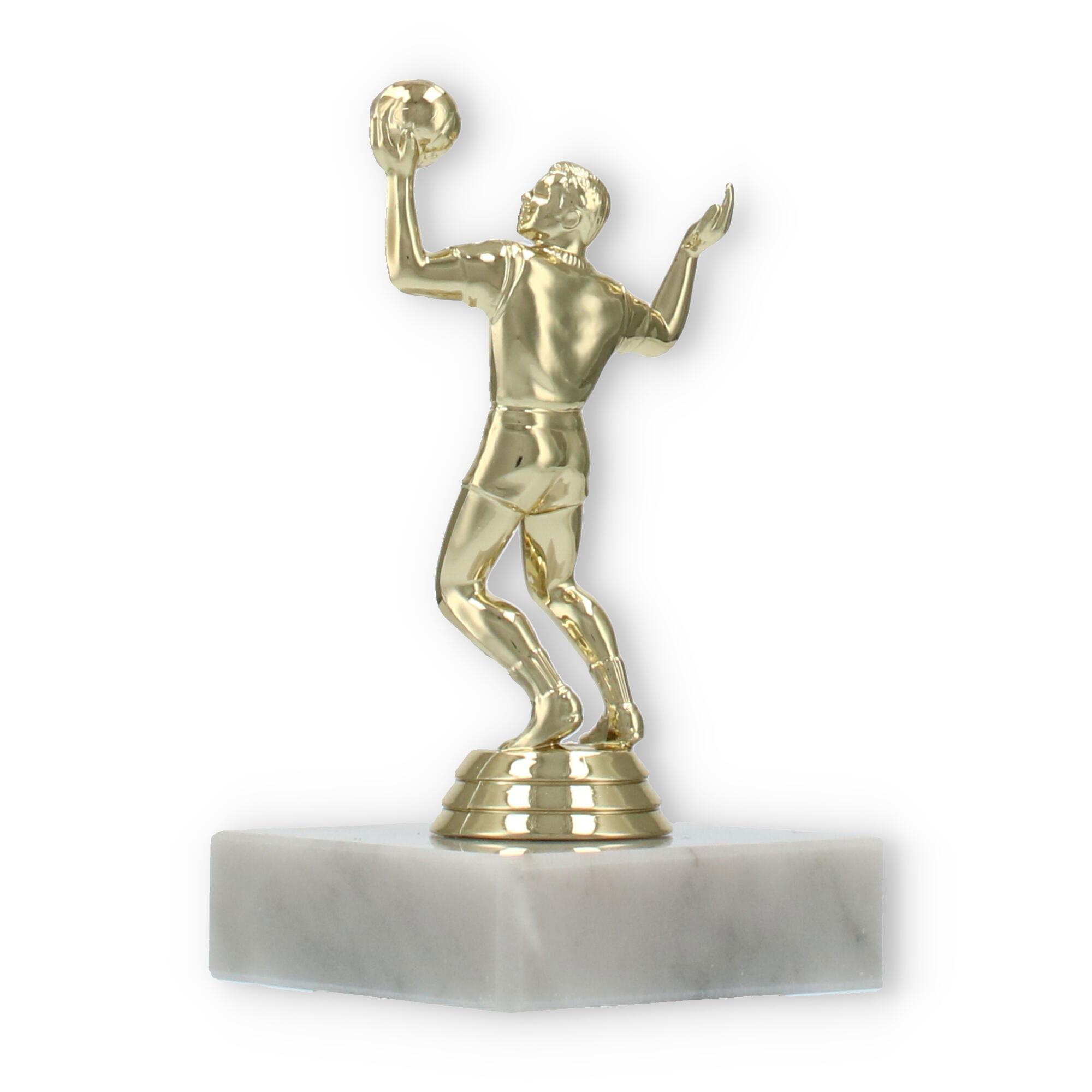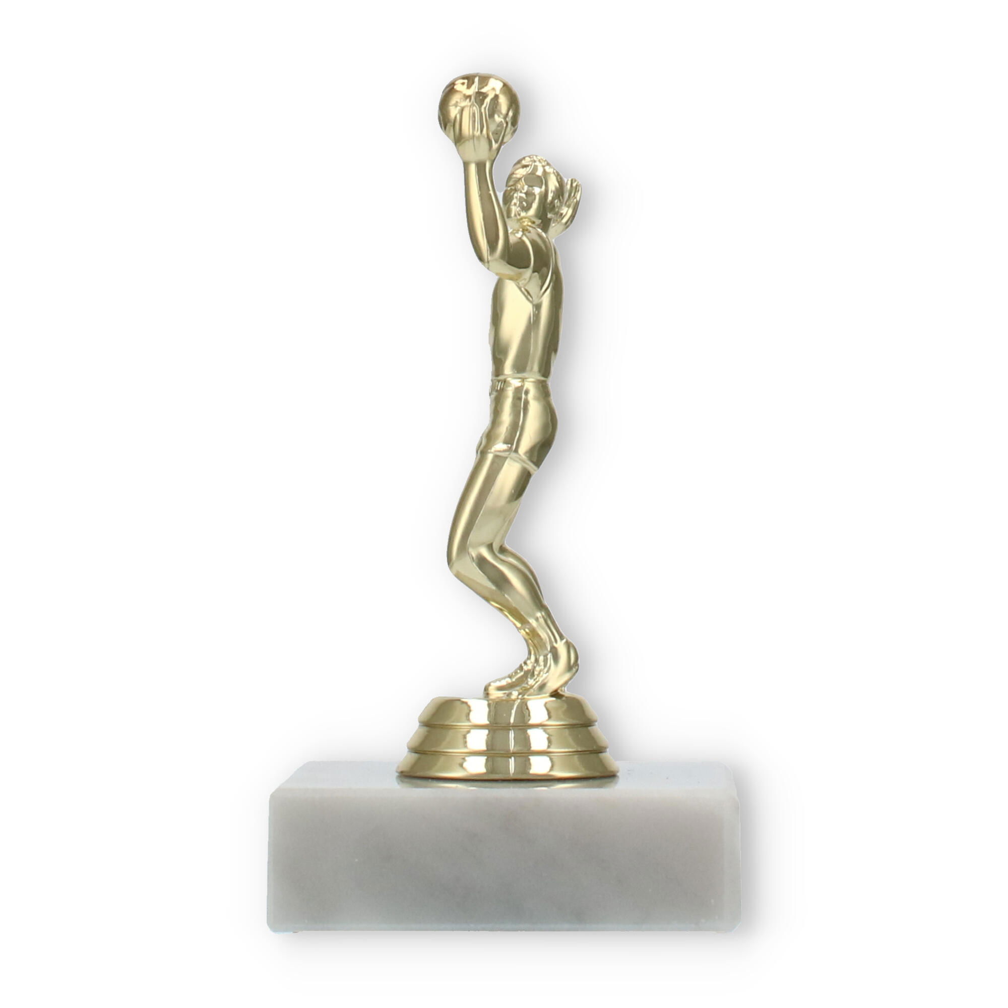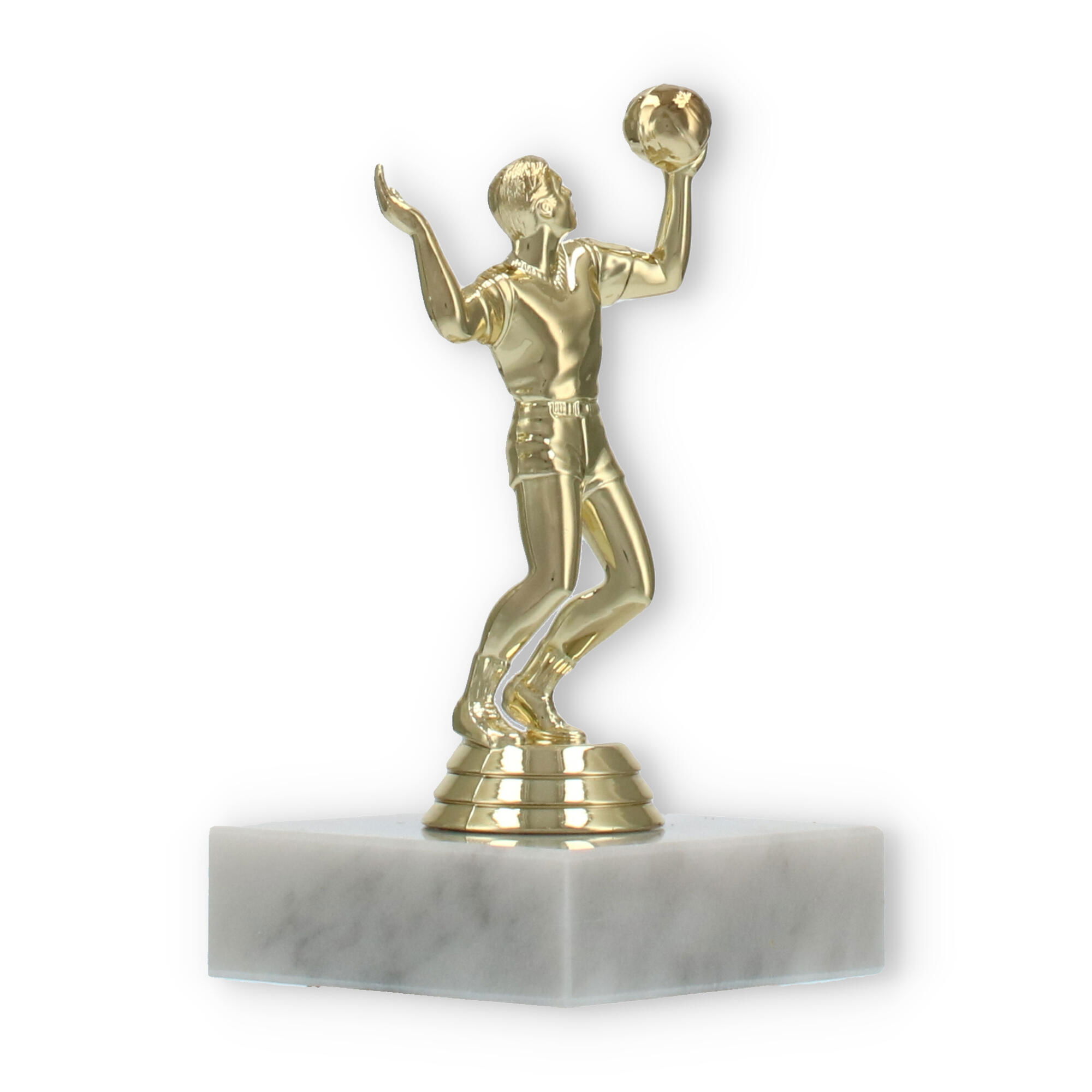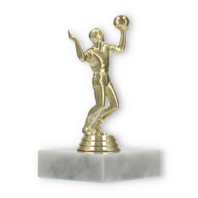 Pokalen med en højde på 11,9 cm kombinerer både elegance og funktion. Basen, der er fremstillet af hvid marmor, udstråler tidløs klasse og skaber et solidt fundament for den guldfarvede spillerfigur. Den marmorhvide base står i smuk kontrast til guldtonen, som giver et indtryk af prestige.
