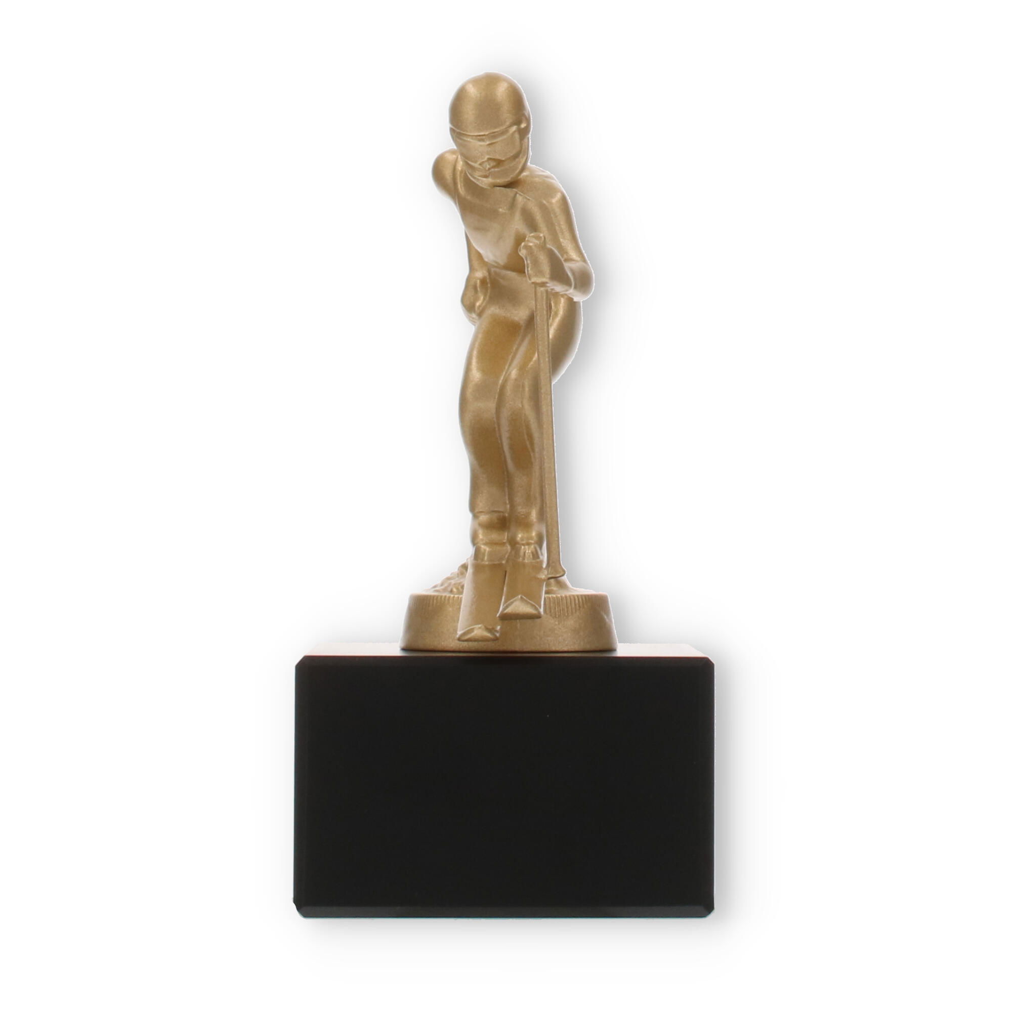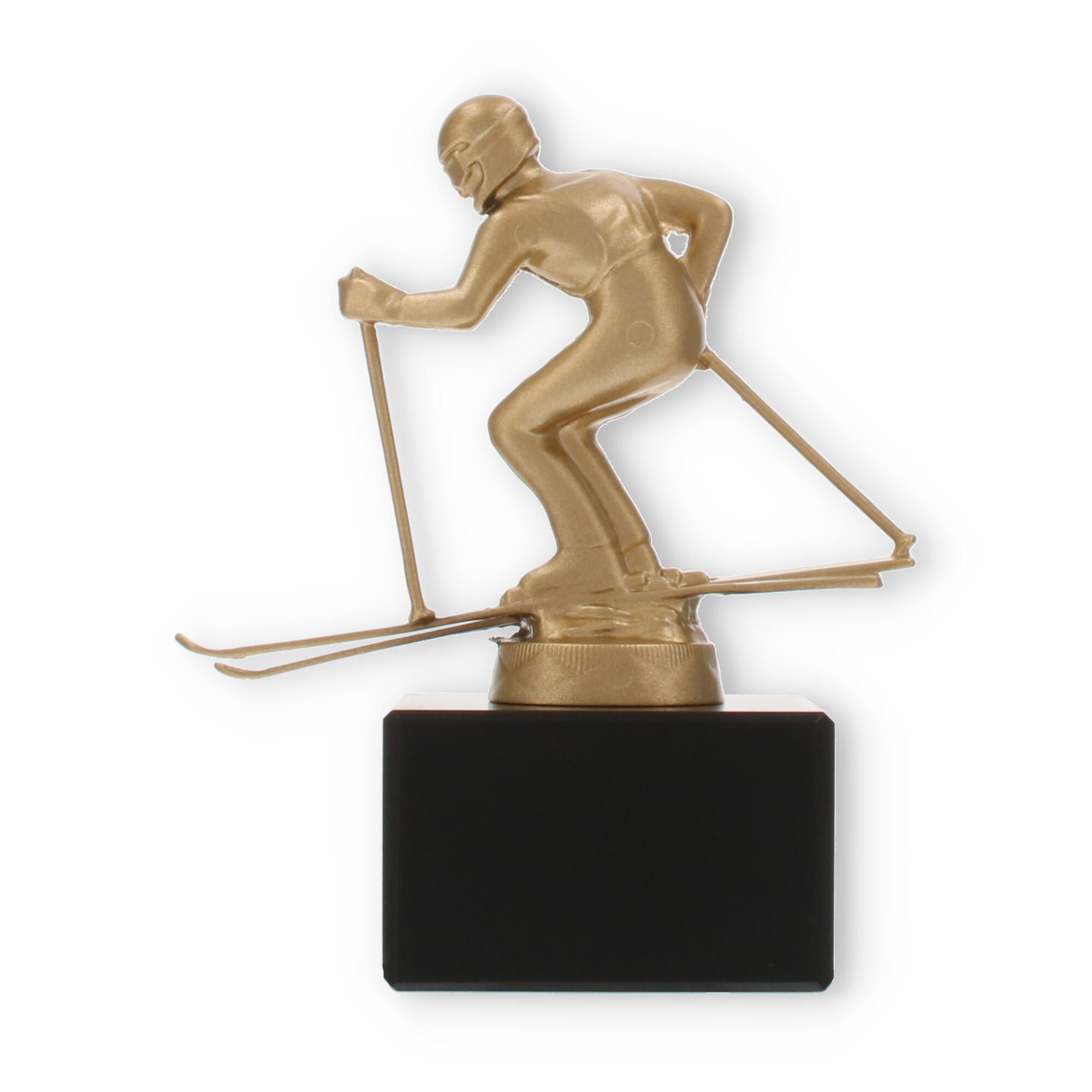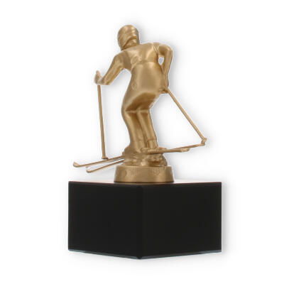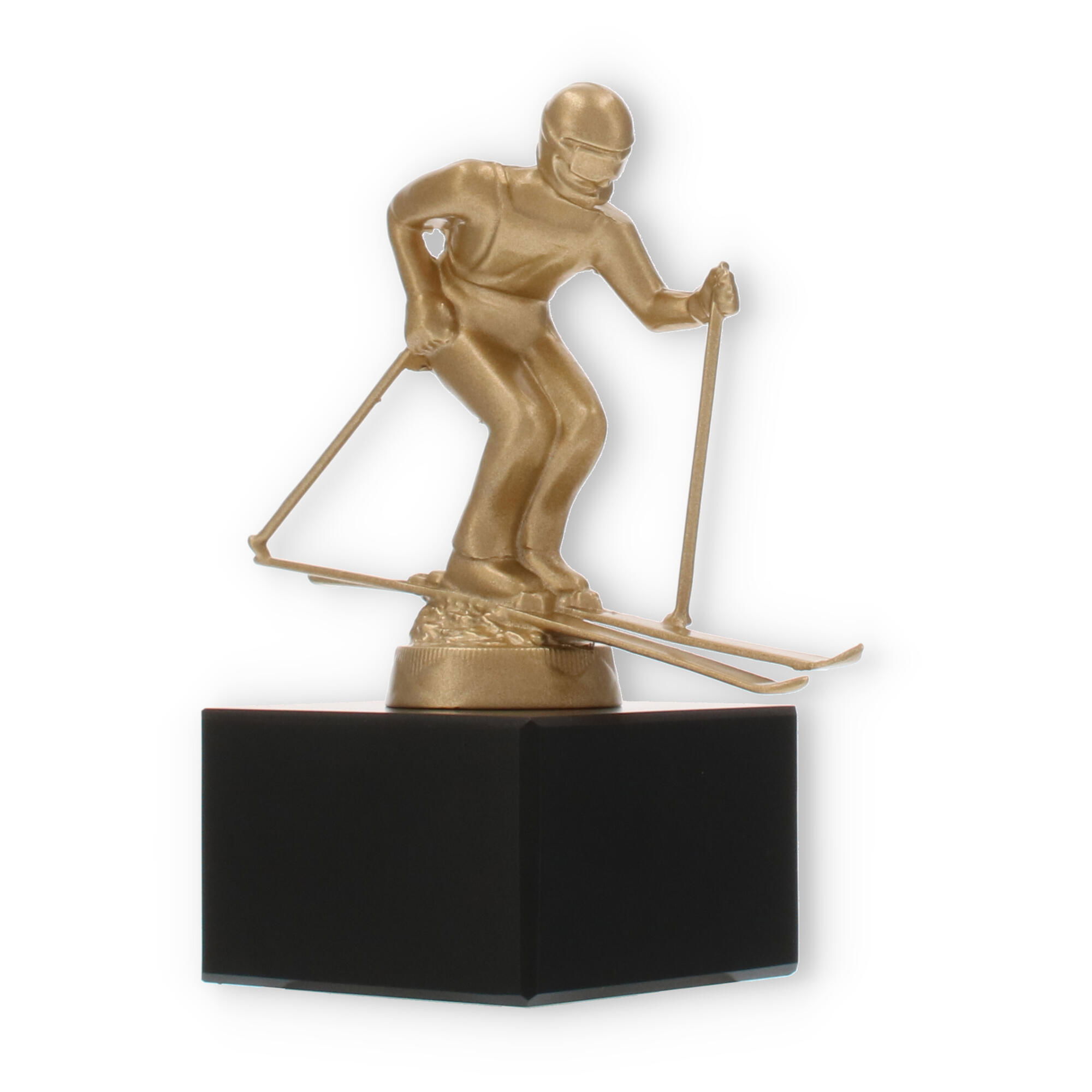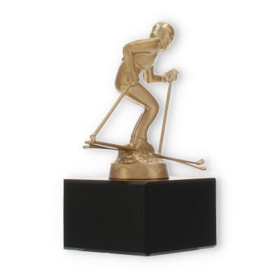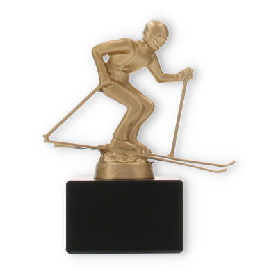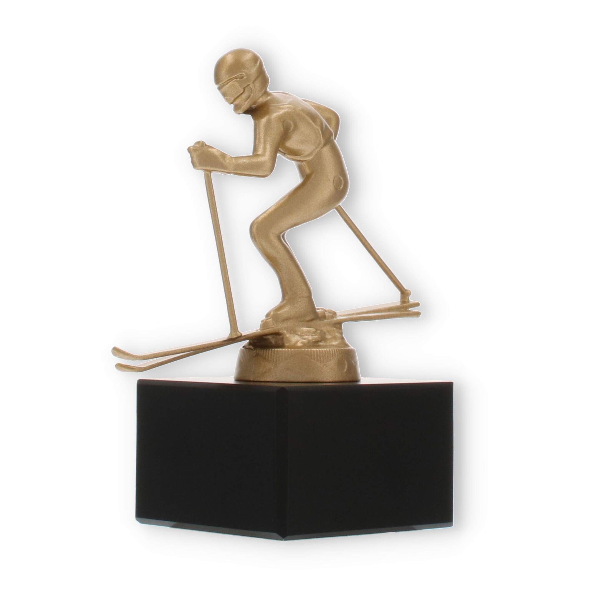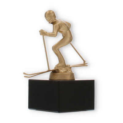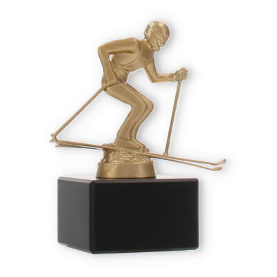Imagina la culminación de un evento deportivo único, donde todos los ojos están puestos en el trofeo Esquí Alpino. Este galardón, con su figura en color dorado metálico, captura la emoción del momento y destaca visualmente en cualquier ceremonia. Fabricado en metal y con un sólido soporte de mármol negro, ofrece una sensación de solidez y prestigio.