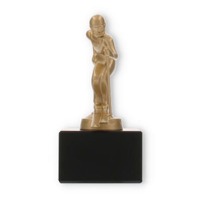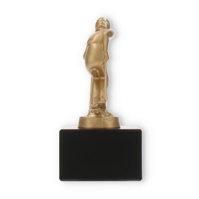Con una altura total de 13,0 cm, se adapta perfectamente a cualquier estantería o vitrina, proporcionando una presencia impactante. Su base, de mármol negro, añade un toque de elegancia atemporal, asegurando que el trofeo permanezca estable y seguro en cualquier superficie.
