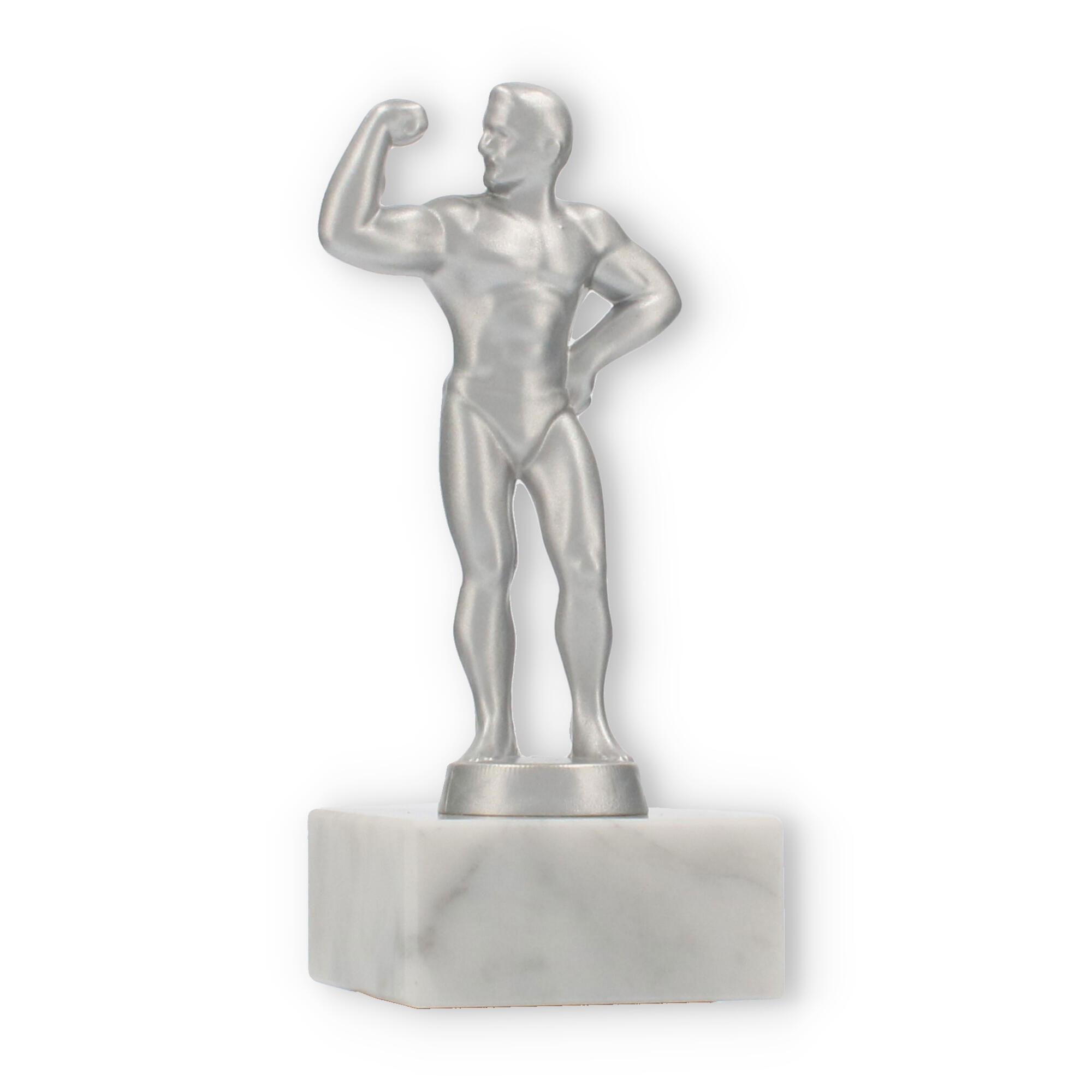 Der Pokal Bodybuilder beeindruckt bei Bodybuilding-Wettkämpfen mit einer 15,4 cm großen Metallfigur in silbermetallic auf einem weißen Marmorsockel. Durch eine individuelle Gravur wird jede Auszeichnung besonders bedeutungsvoll.