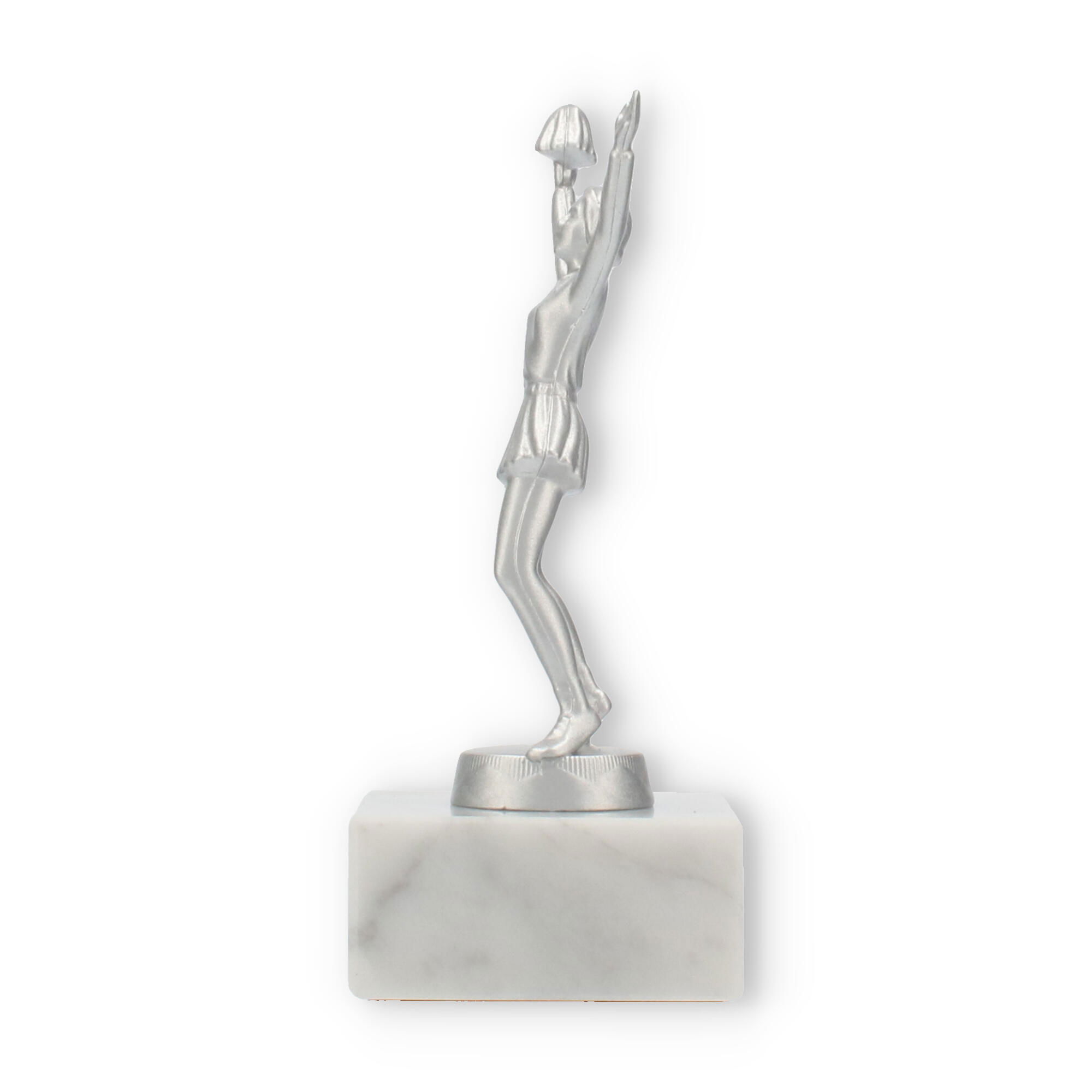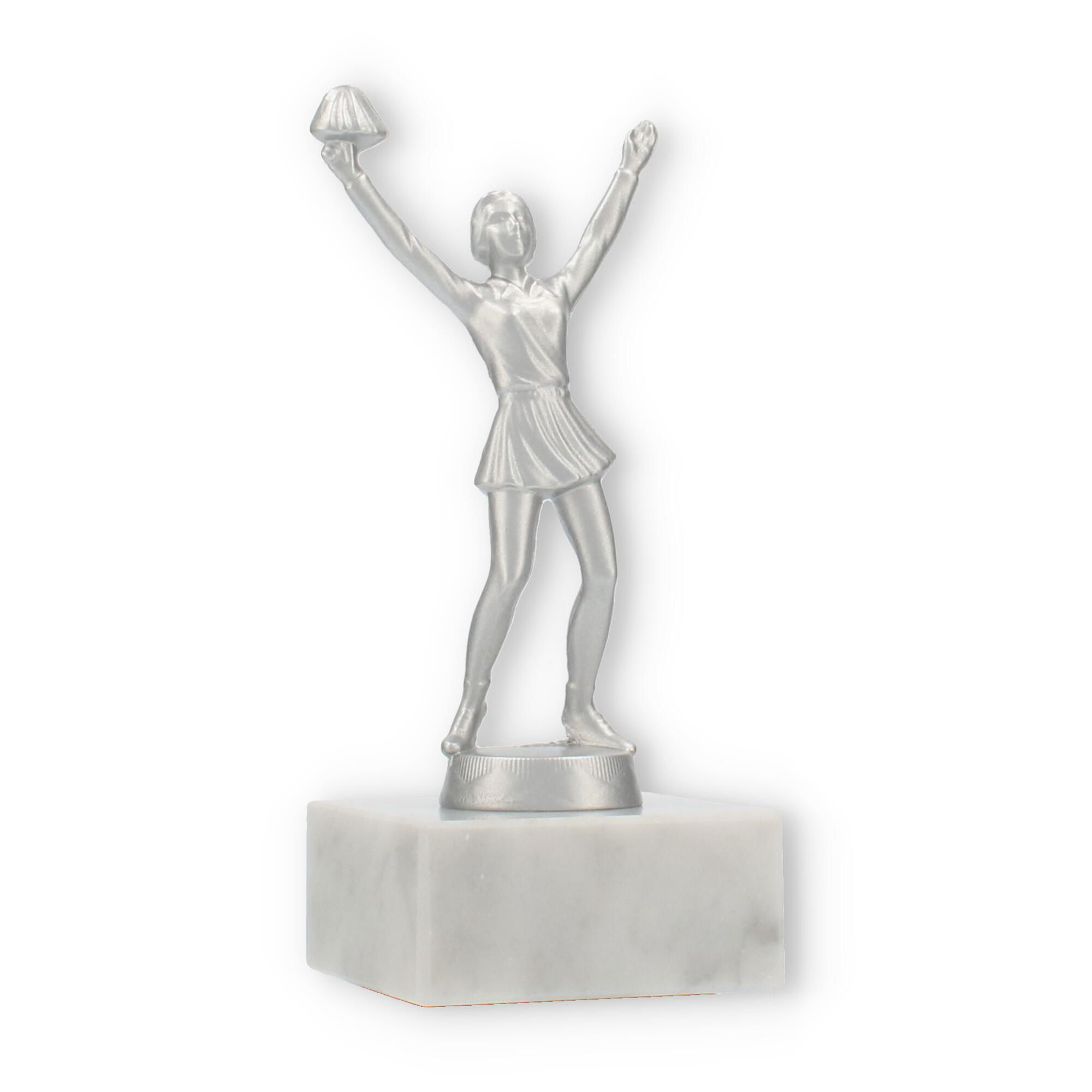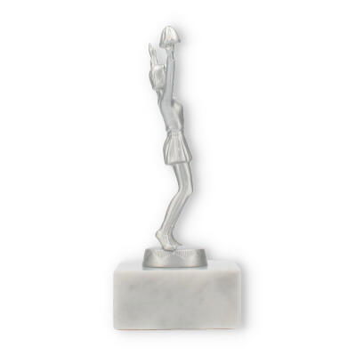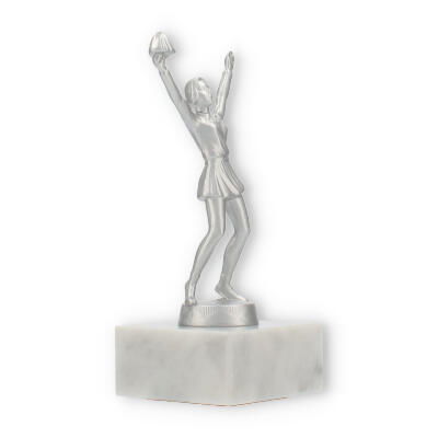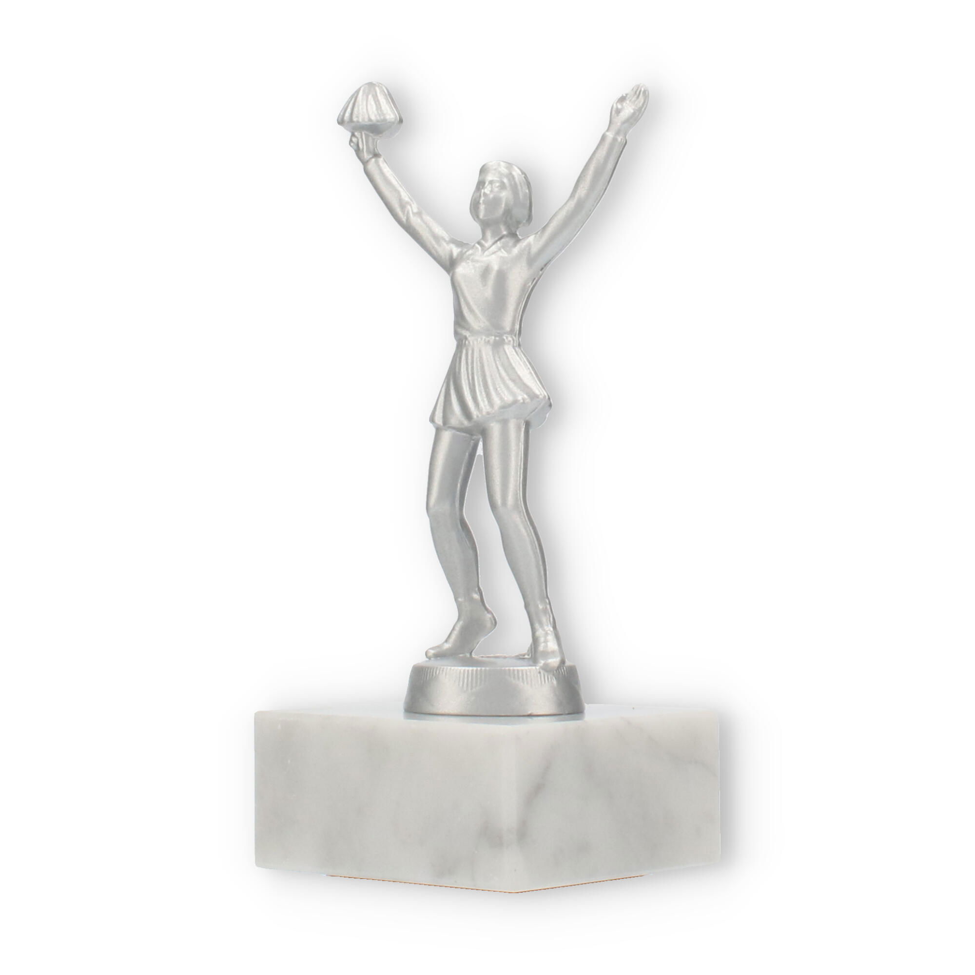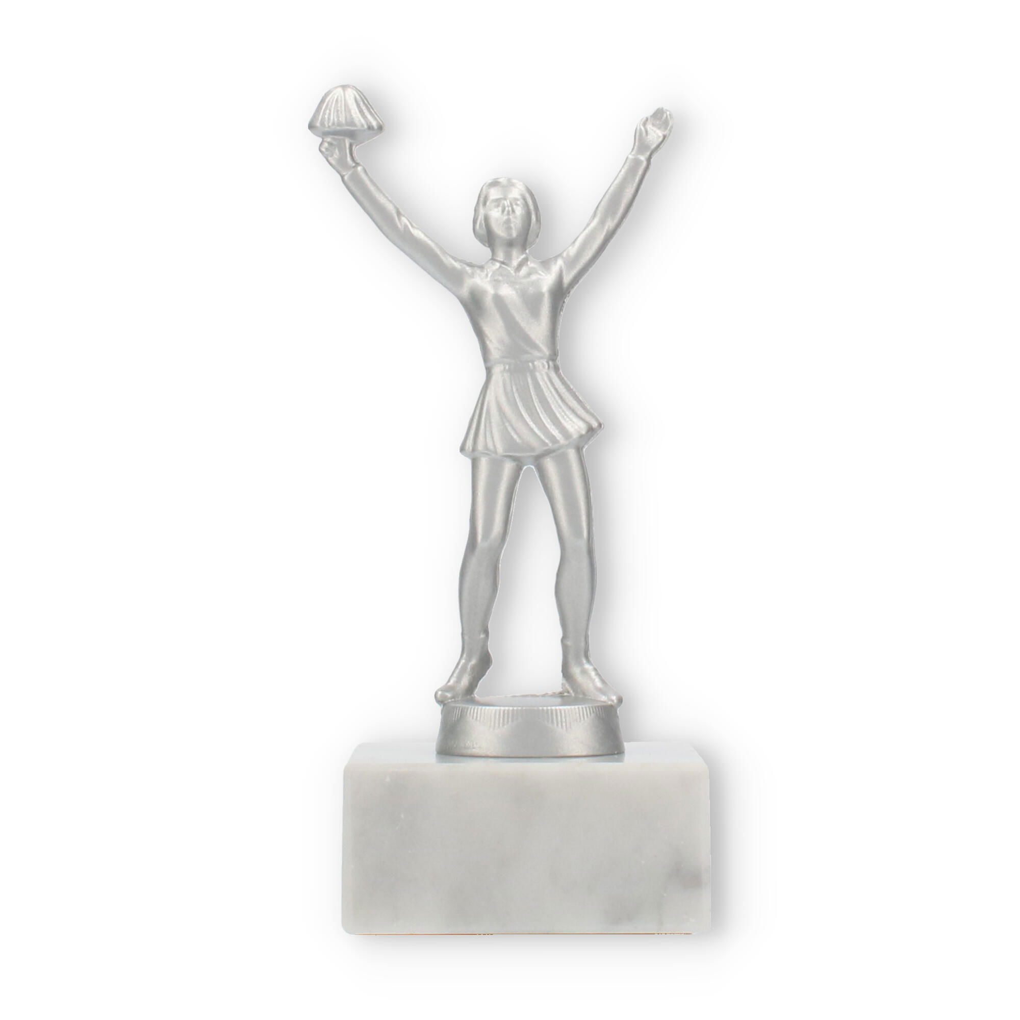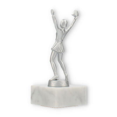 Die Pokalfigur Cheerleader kombiniert stilvolle Ästhetik mit einer markanten Präsenz. Diese Figur, aus silberfarbenem Metall gefertigt, steht auf einem stabilen weißen Marmorsockel und beeindruckt durch ihr dynamisches Design einer Cheerleaderin in voller Aktion. Ihr glänzendes Erscheinungsbild und detailgetreue Gestaltung würdigen den Geist des Sports und die harte Arbeit der Teilnehmer.