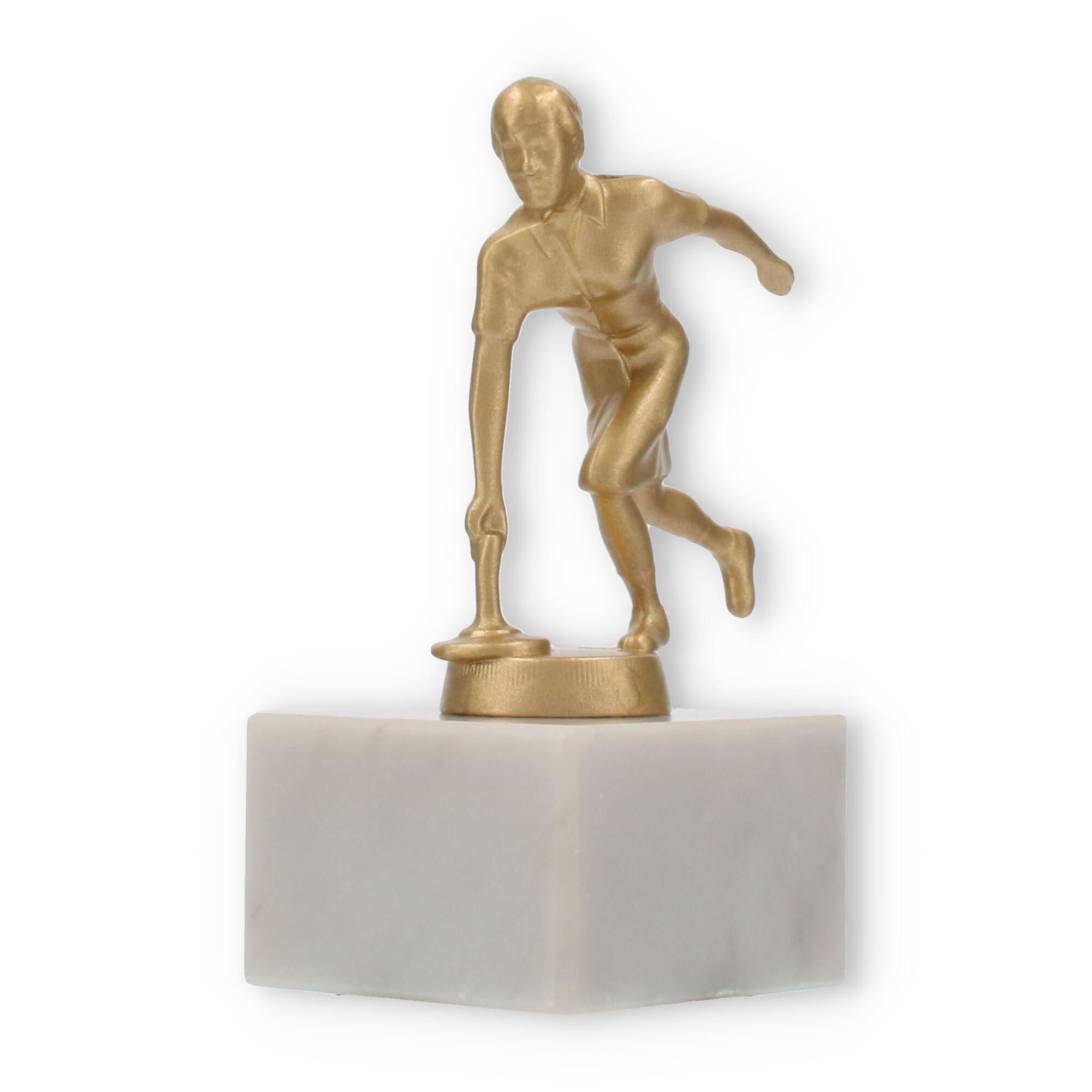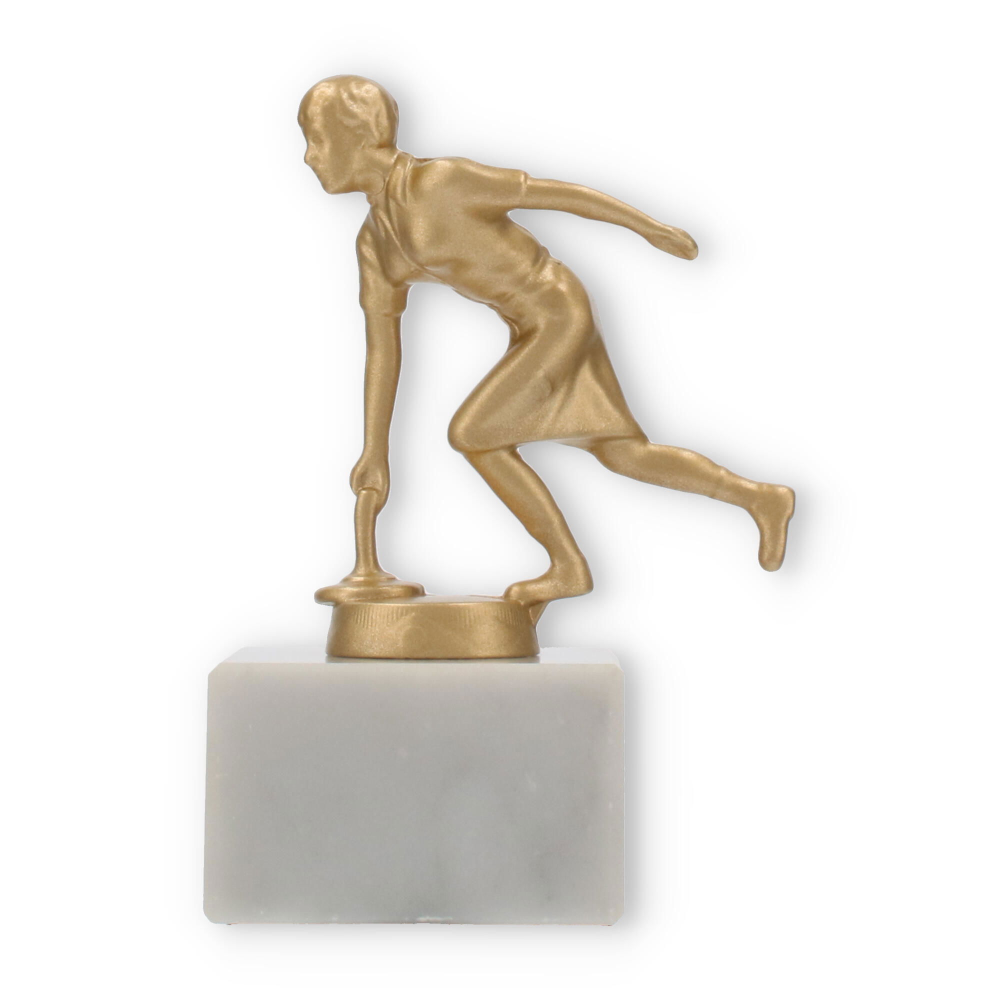 De trofee metalen figuur op een marmeren voet vangt de essentie van sportieve prestaties prachtig. De stevige marmeren sokkel zorgt voor een solide basis, terwijl de uitgebreide afwerking van de goudkleurige figuur een vleugje elegantie toevoegt.