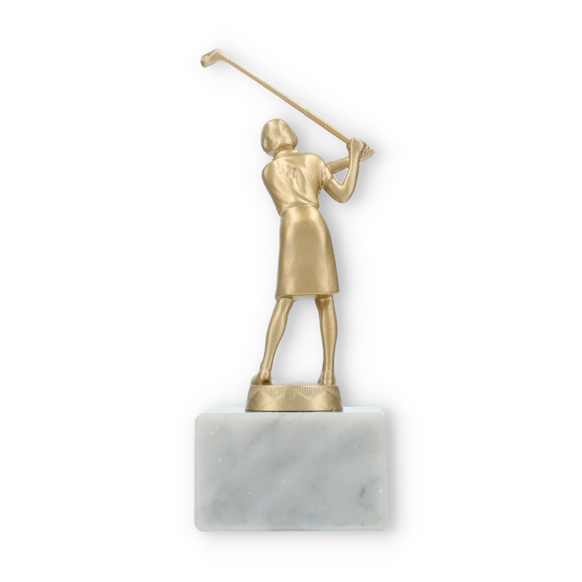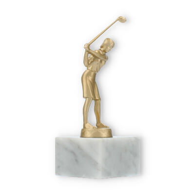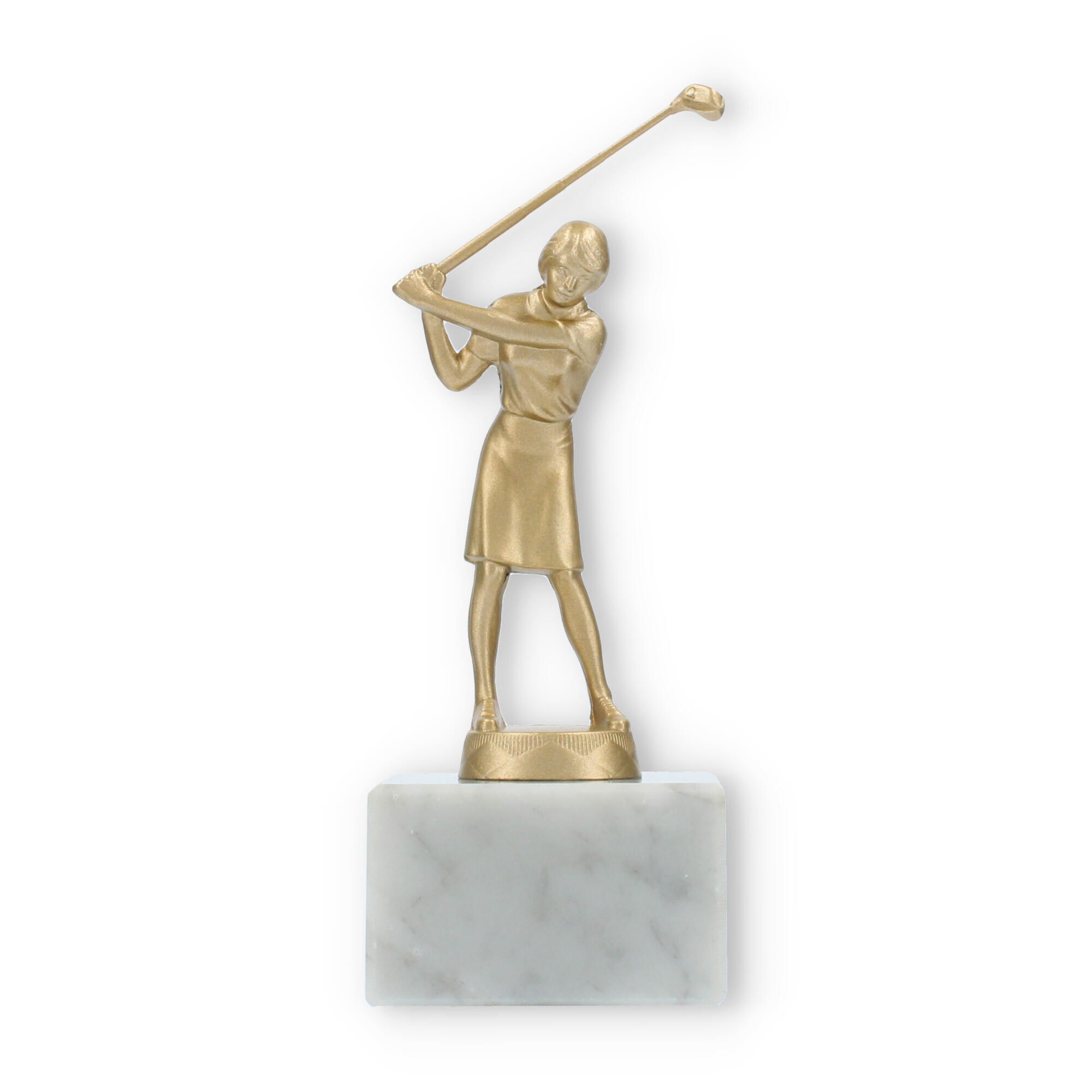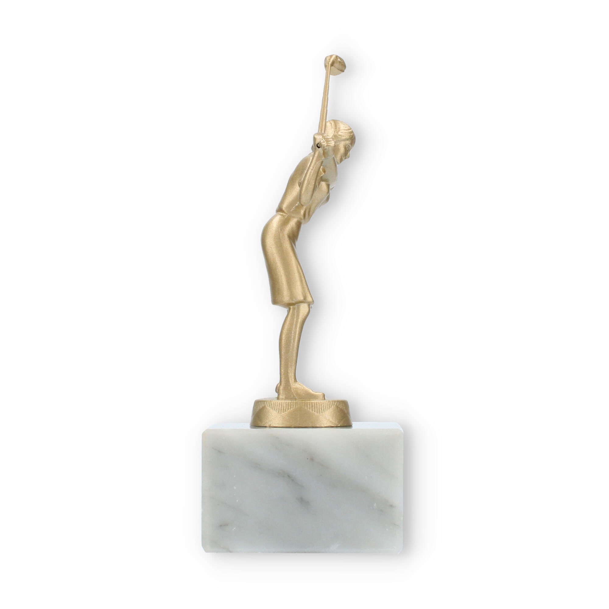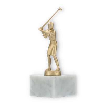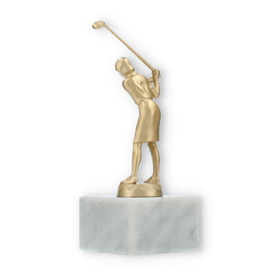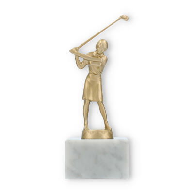 Apresentamos o Troféu Golf Feminino: um emblema memorável para aqueles que se destacam nos campos de golf. Com 16,5 cm de altura, a estatueta em tom dourado, repousando sobre uma base de mármore, eterniza o momento da vitória. Personalize para capturar a essência de sua celebração.