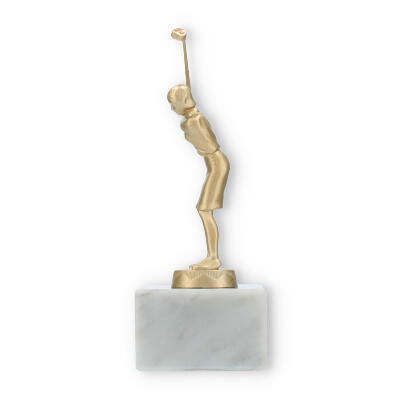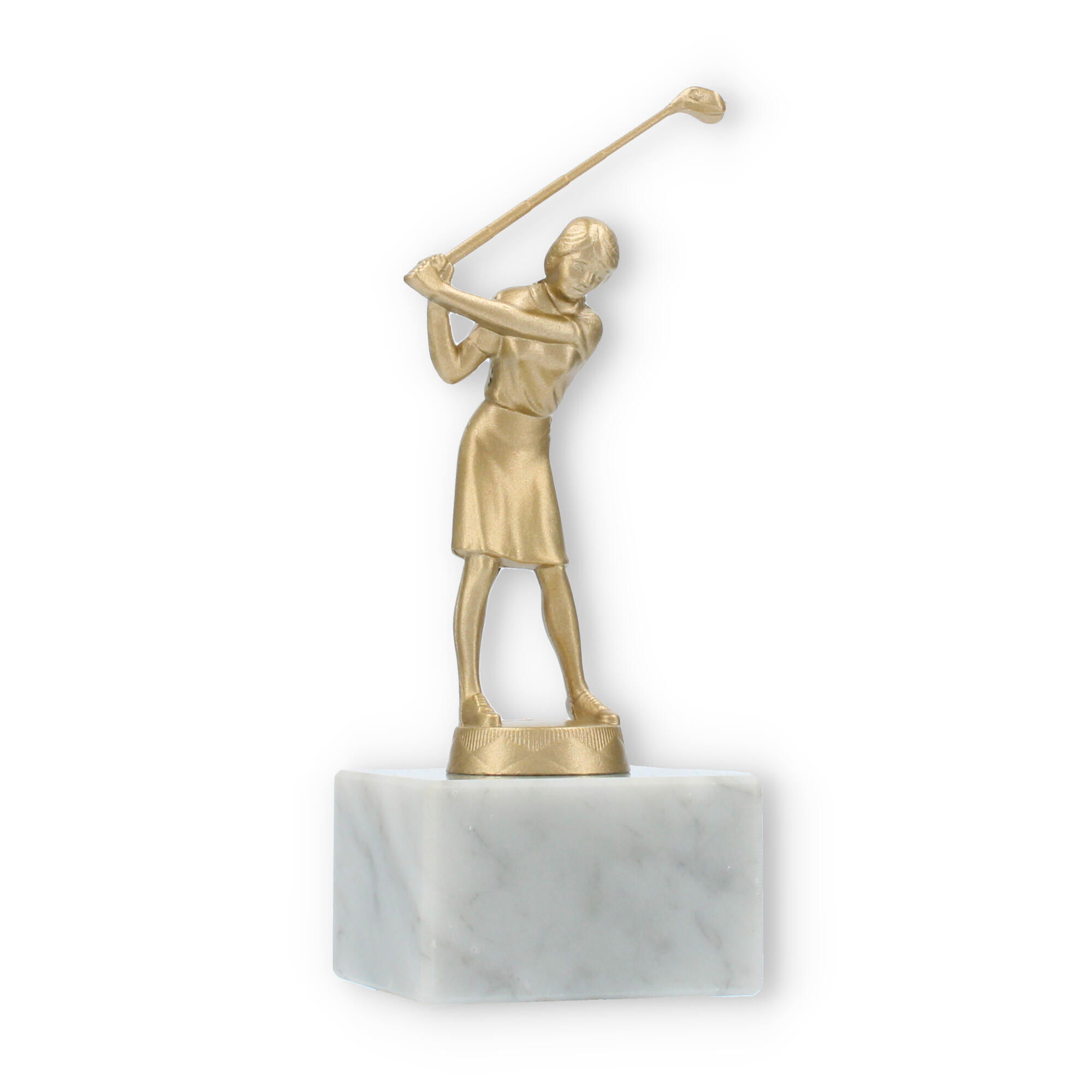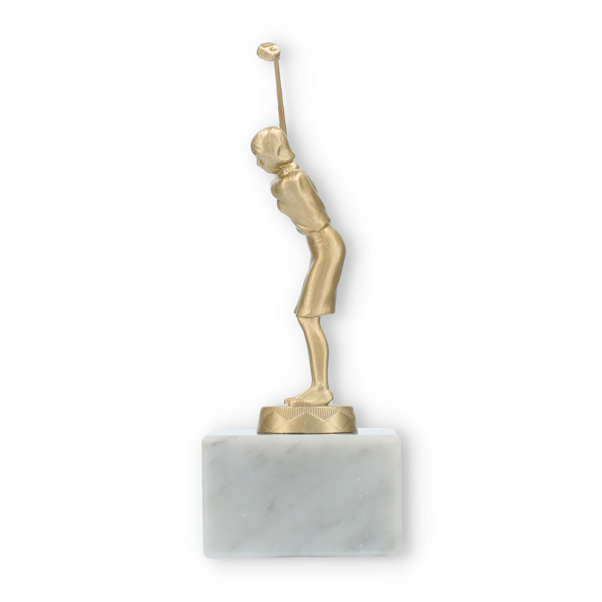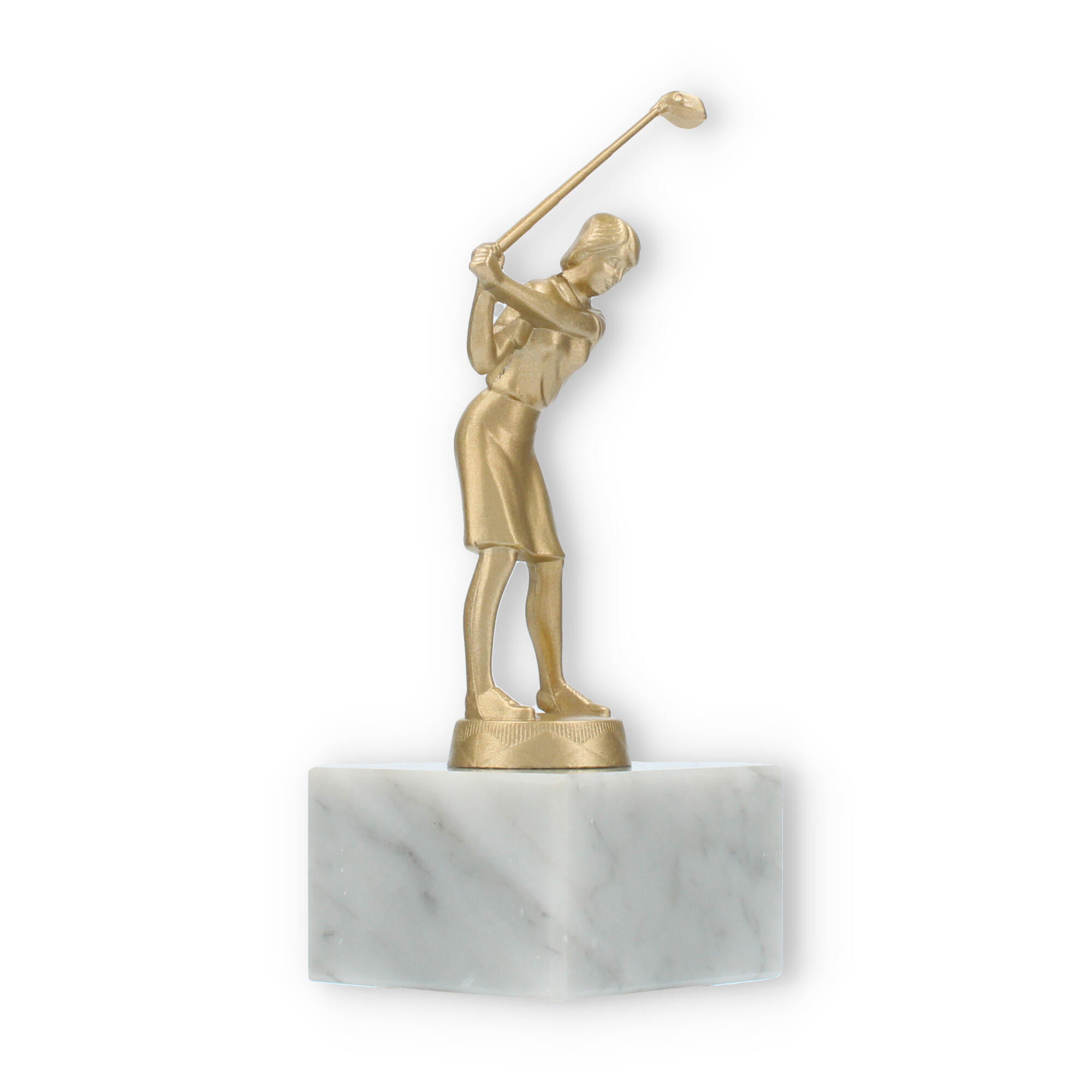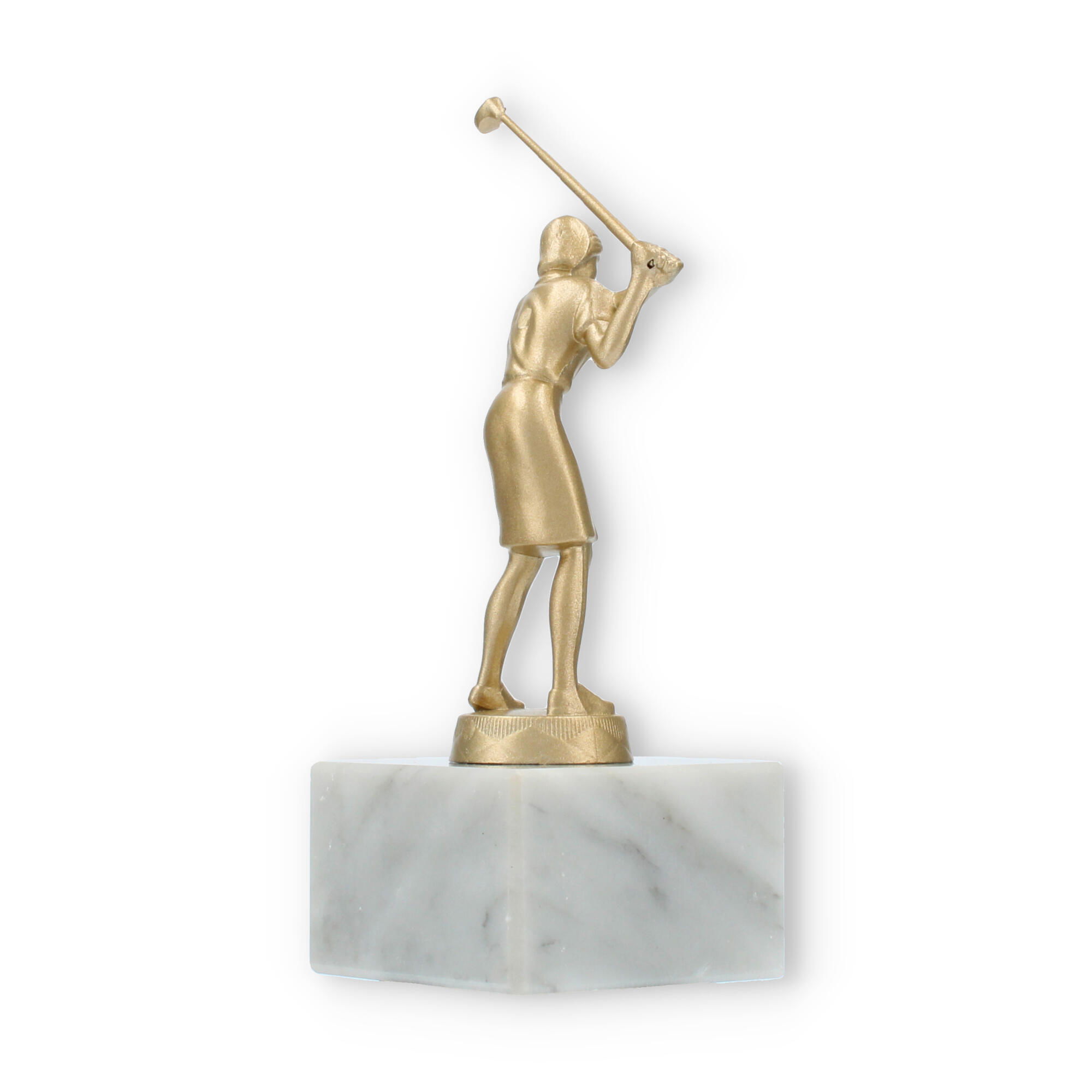 Apresentamos o Troféu Golf Feminino: um emblema memorável para aqueles que se destacam nos campos de golf. Com 16,5 cm de altura, a estatueta em tom dourado, repousando sobre uma base de mármore, eterniza o momento da vitória. Personalize para capturar a essência de sua celebração.