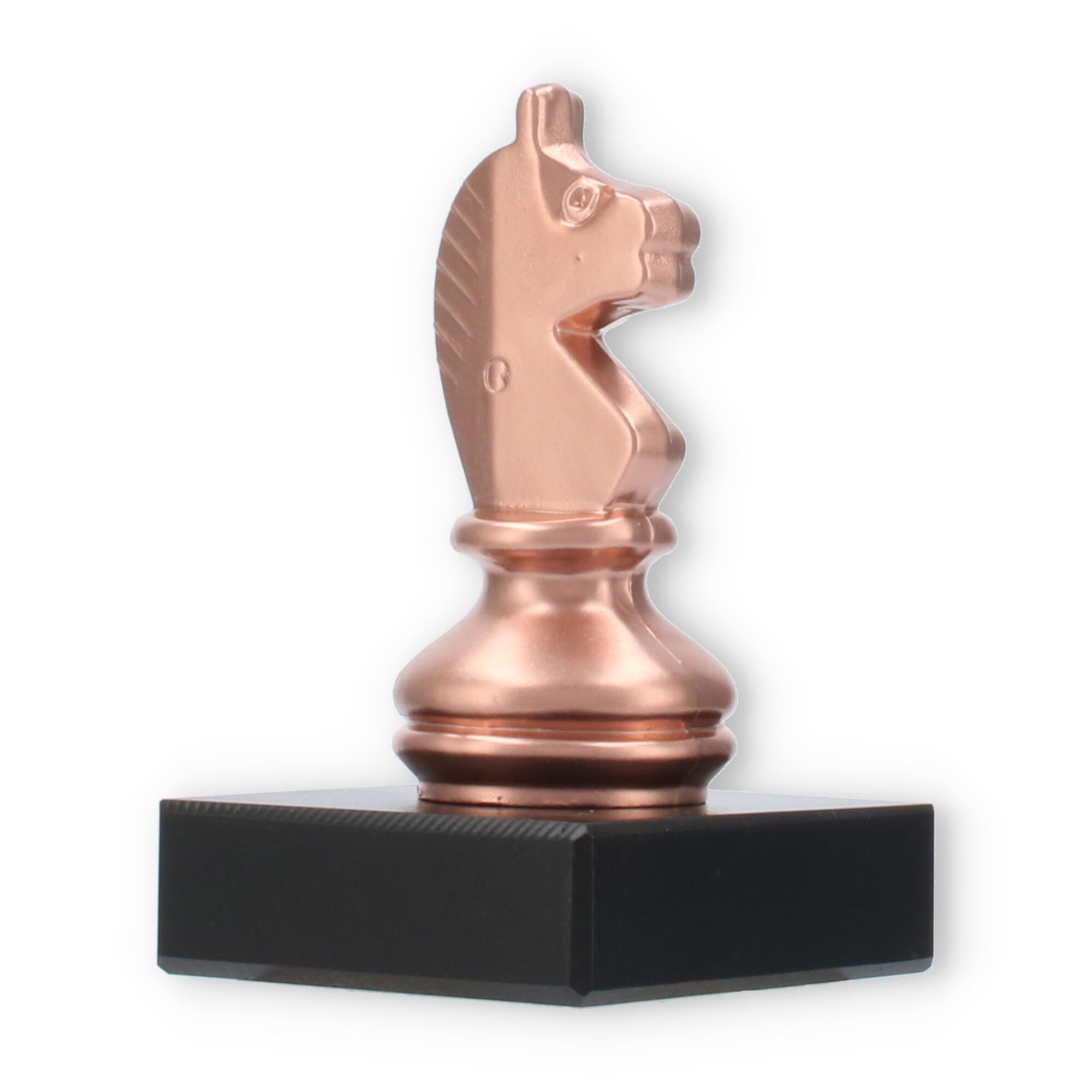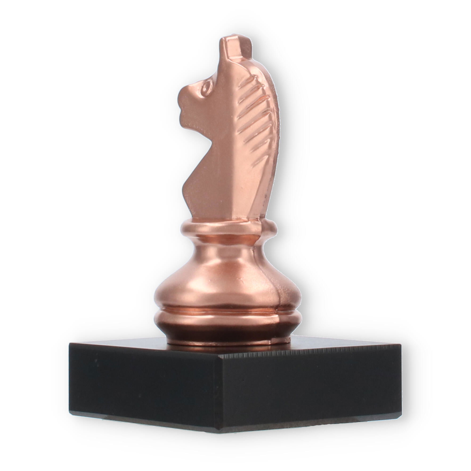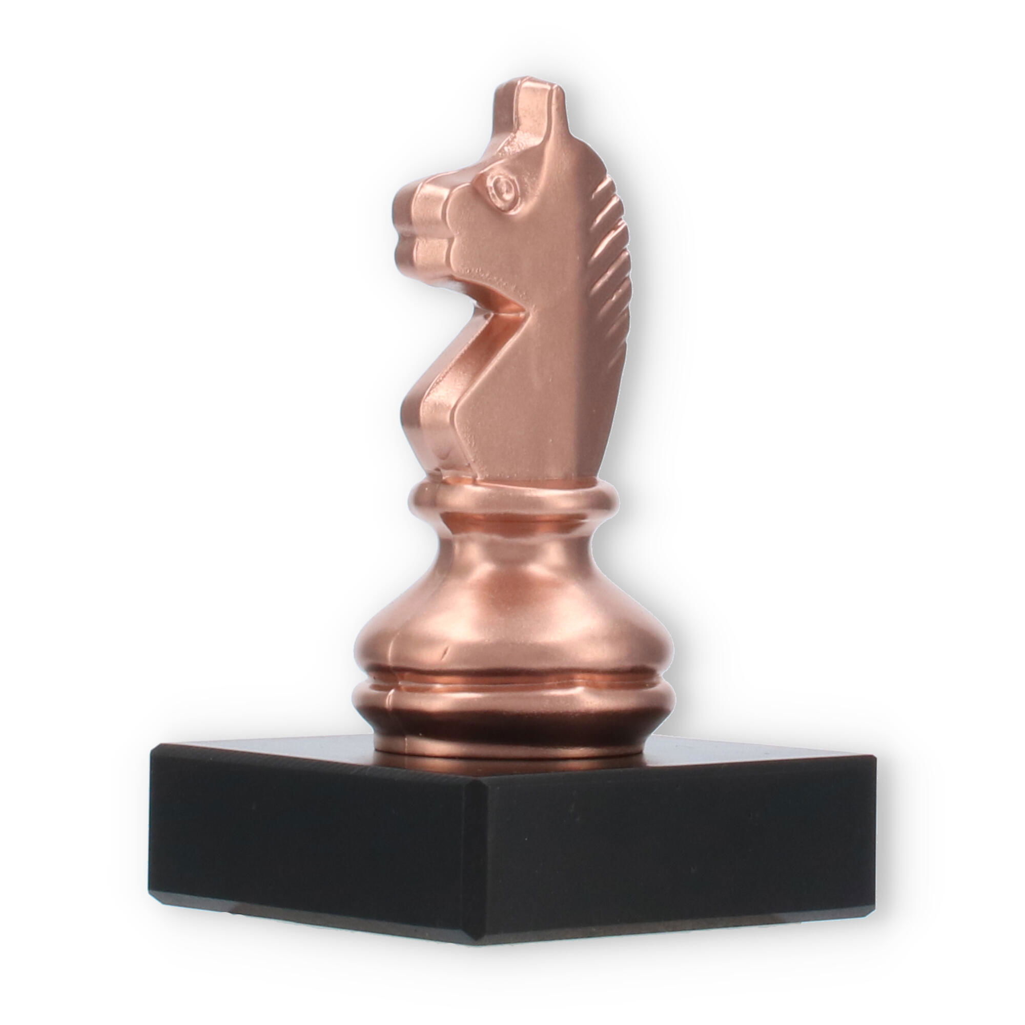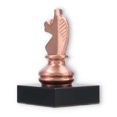 El Trofeo Caballero de ajedrez en color bronce sobre base de mármol negro representa la excelencia en el ajedrez. Este galardón de 10 cm es personalizable mediante una placa grabada que inmortaliza logros excepcionales. Perfecto para honrar momentos importantes en cualquier torneo de ajedrez, su detallado diseño y materiales sólidos aseguran que cada entrega sea emotiva y memorable.