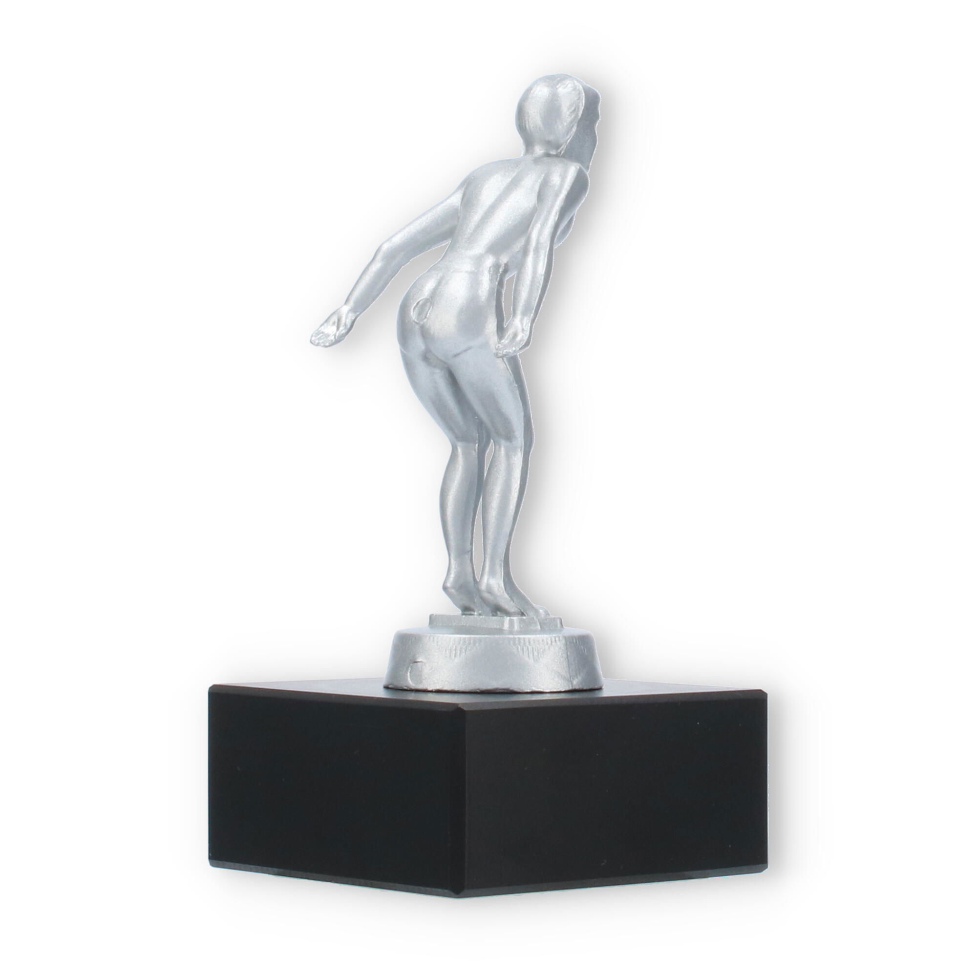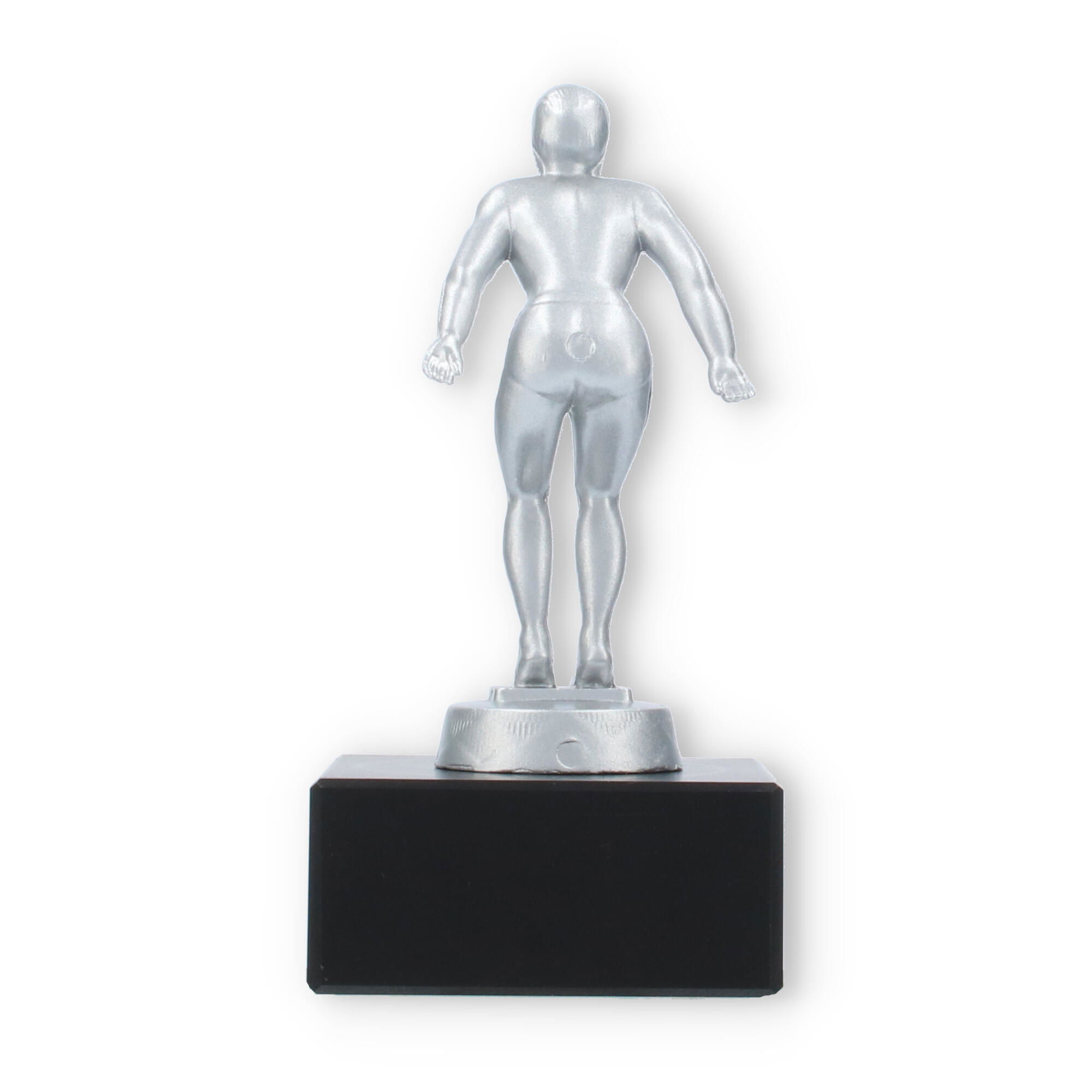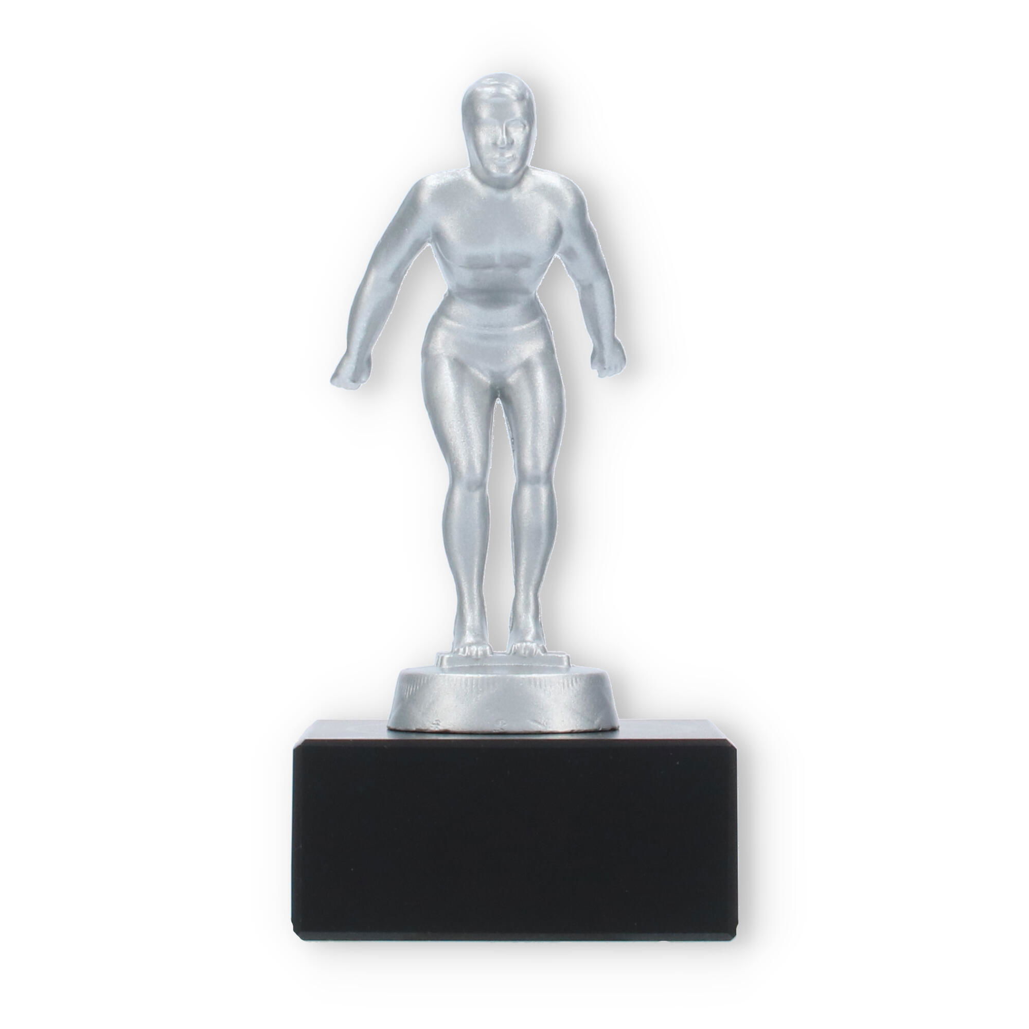 A figura é feita de material metal prateado, com uma altura geral de 12,8 cm, garantindo uma presença marcante. As superfícies sutis refletem luz, adicionando beleza e distinção ao evento. Esta peça é um exemplo de design bem pensado e qualidade sólida.
